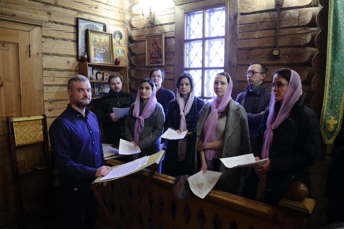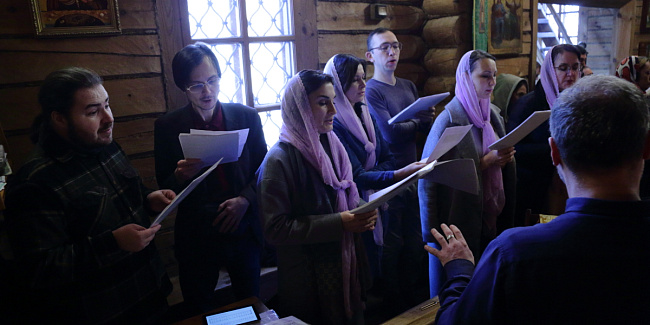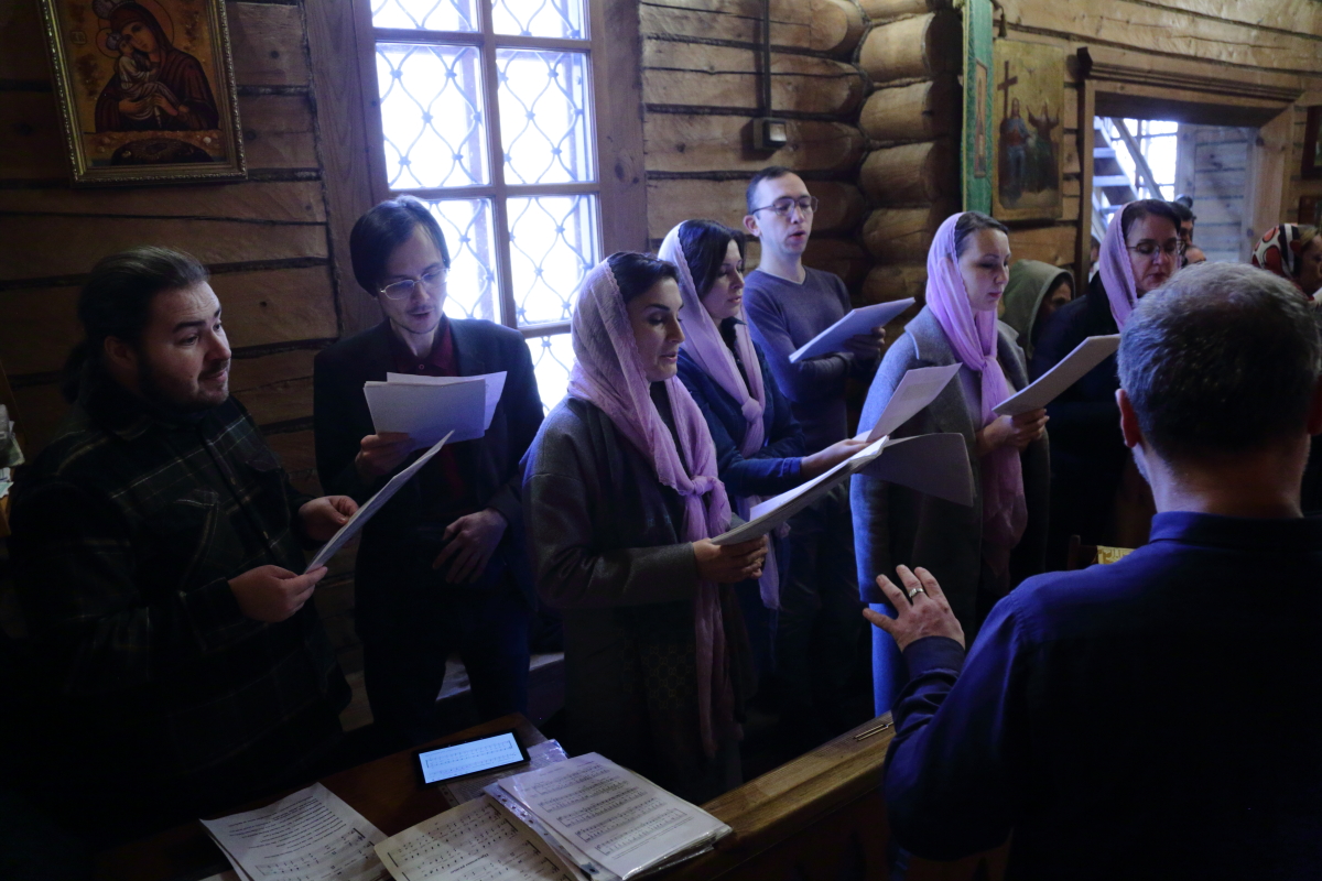 Богослужебные песнопения исполнил Камерный хор Храма Христа Спасителя под управлением Дмитрия Попова.