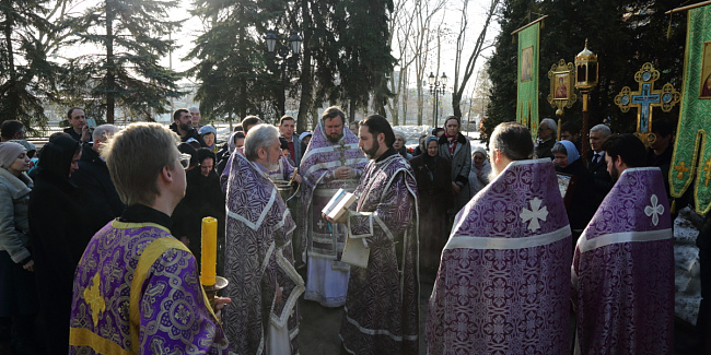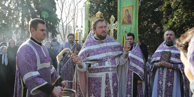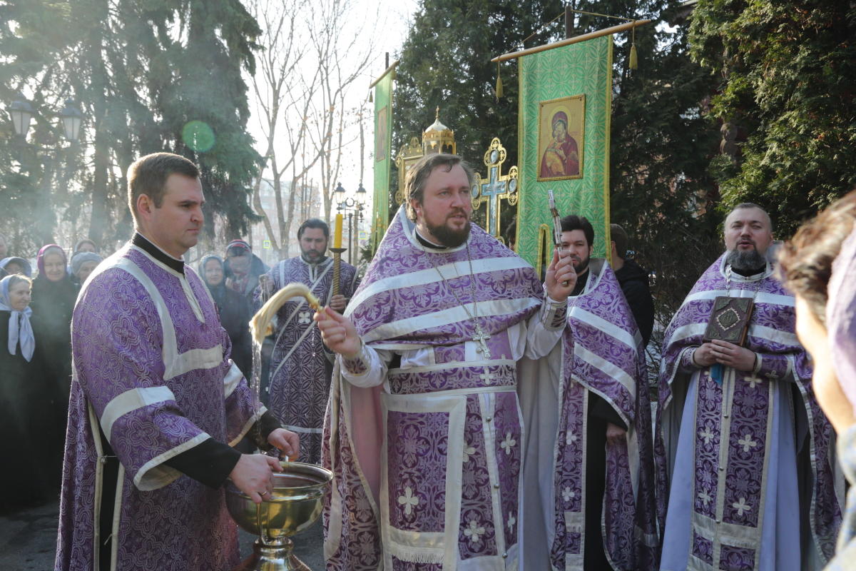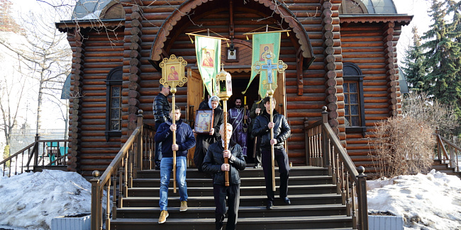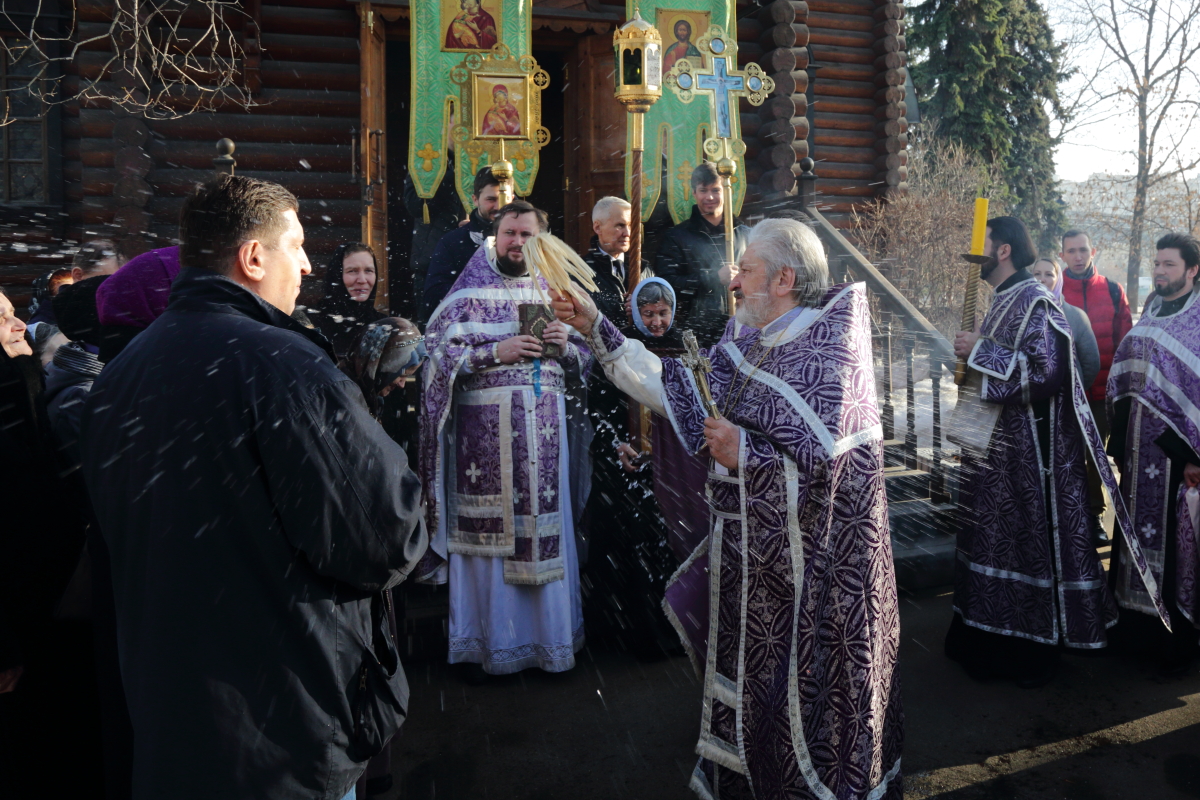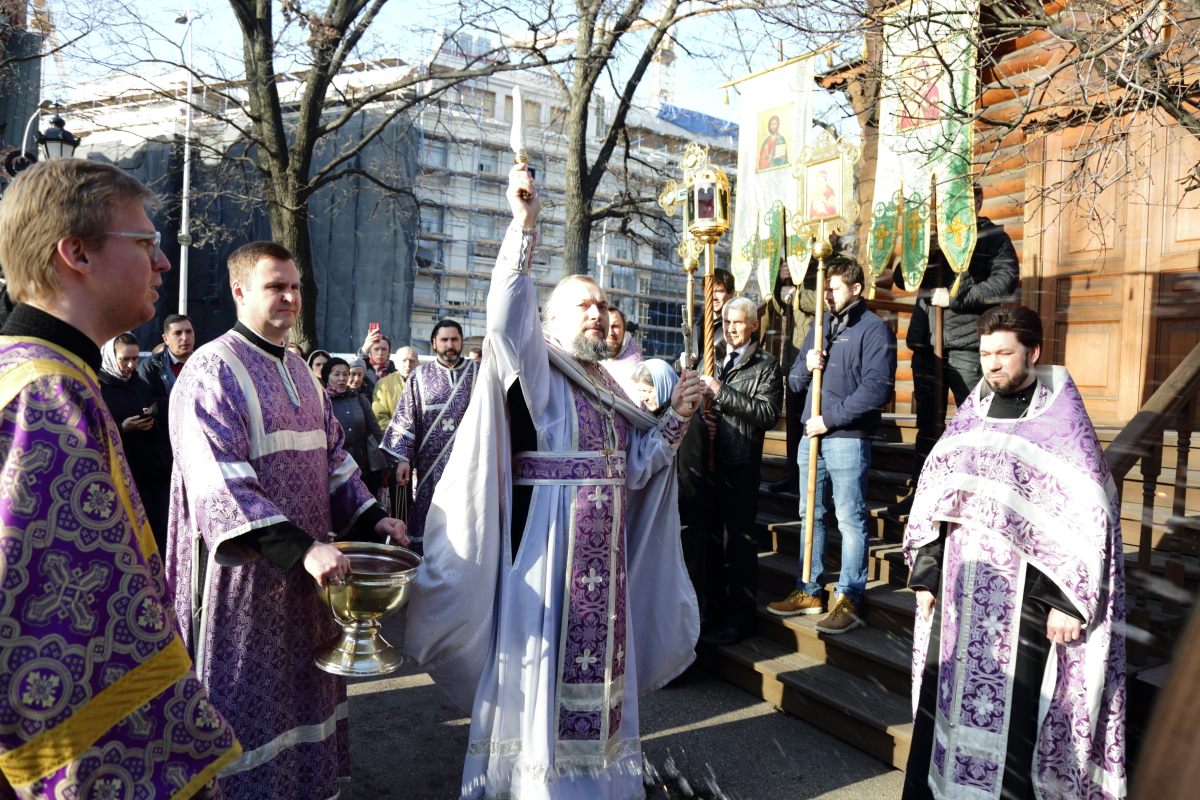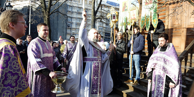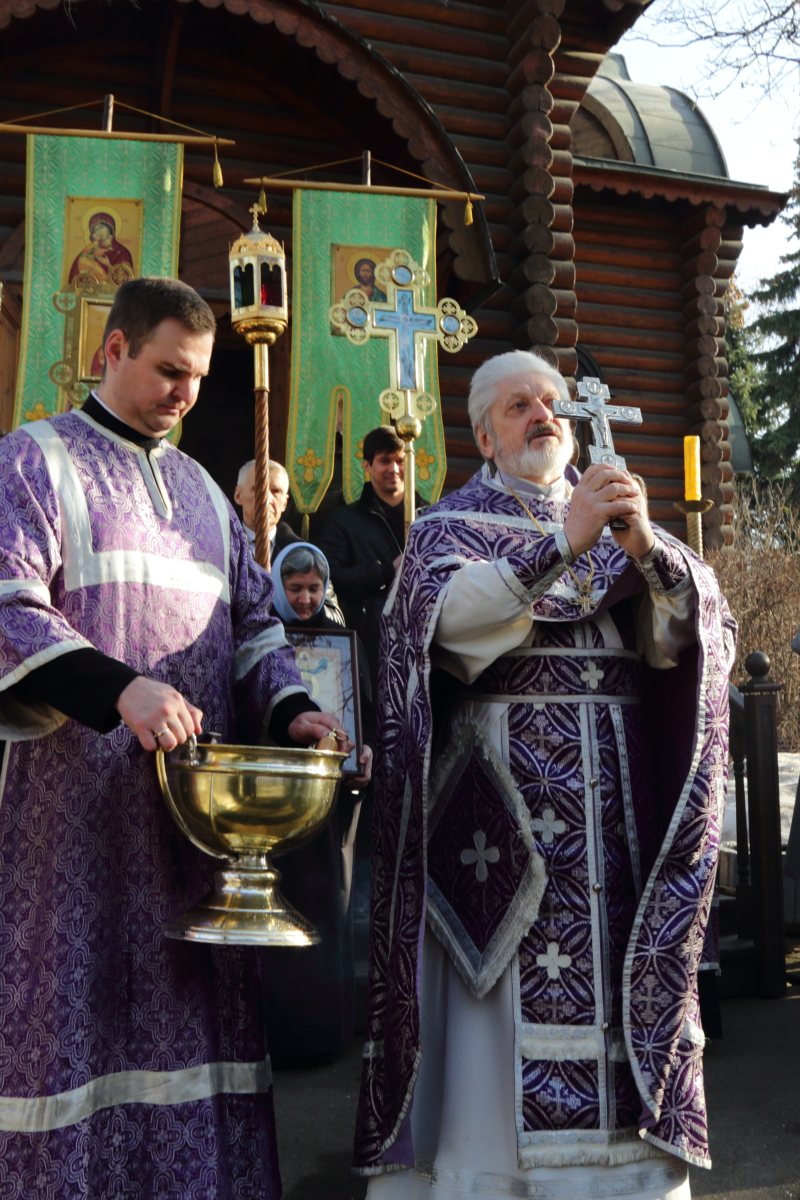 После молебна перед храмовым образом Божией Матери «Державная» состоялся крестный ход вокруг храма. После крестного хода отец Настоятель обратился к собравшимся со словами проповеди.