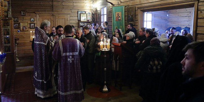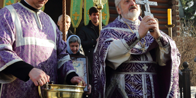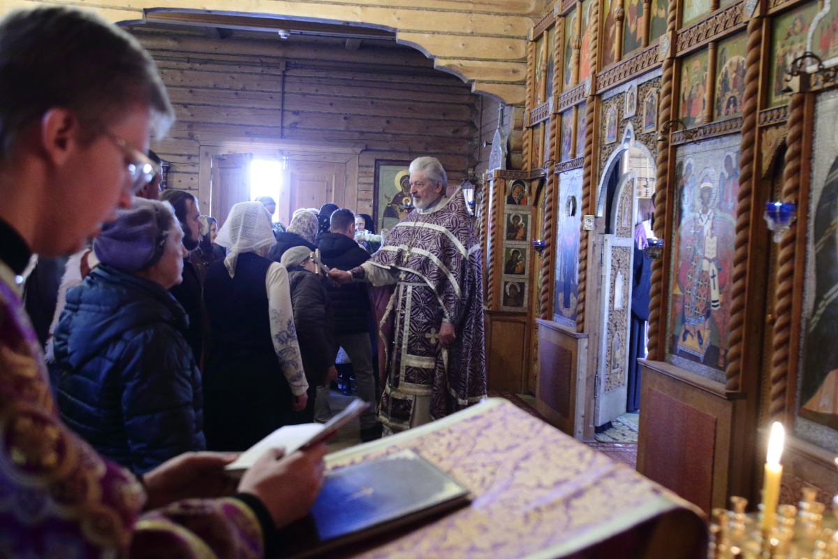 После, подходя ко кресту, все молящиеся поздравили отца Михаила с 45-й годовщиной диаконской хиротонии и престольным праздником.