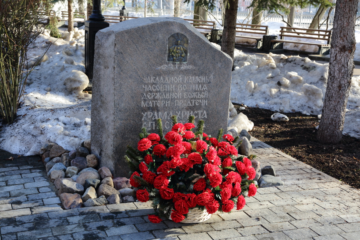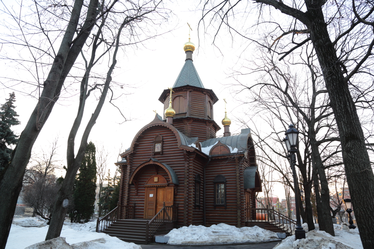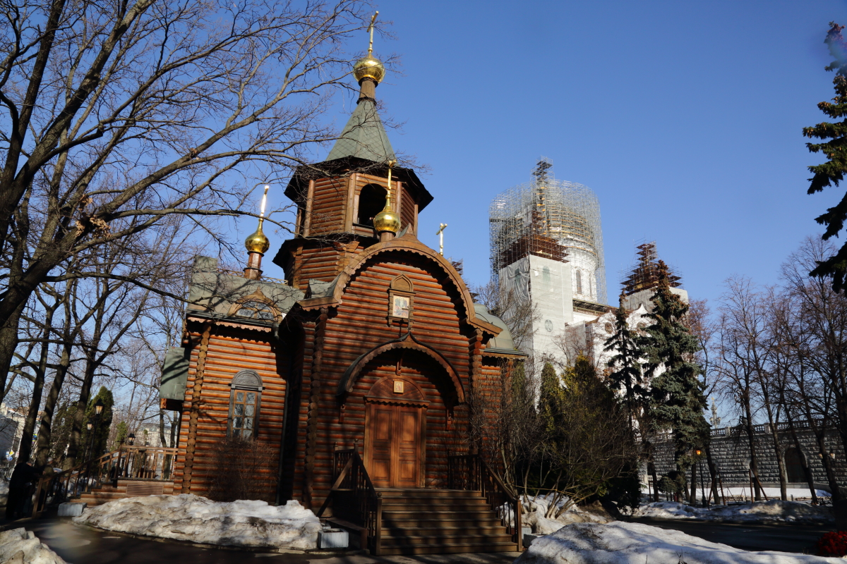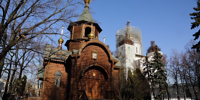 В 1995 г. возрождение взорванного 5 декабря 1931 г. Храма Христа Спасителя началось со строительства деревянного храма-часовни в честь «Державной» иконы Божией Матери, в которой служились первые Божественные Литургии. Именно по молитвам Пресвятой Богородицы величественный Храм был восстановлен в кратчайшие сроки.