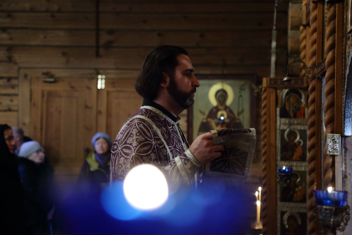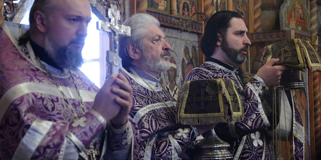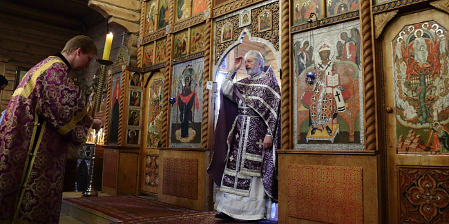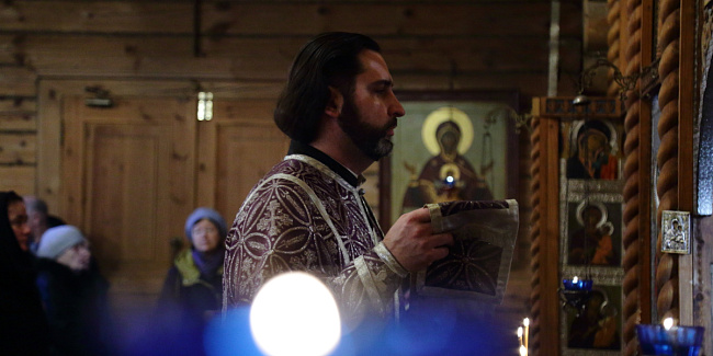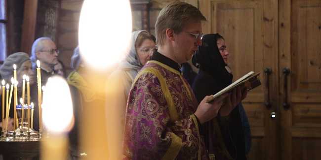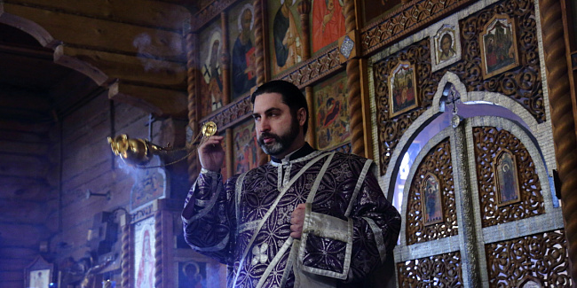 Накануне вечером, в Преображенской церкви Храма Христа Спасителя, отец Ключарь возглавил Полиелейное богослужение.