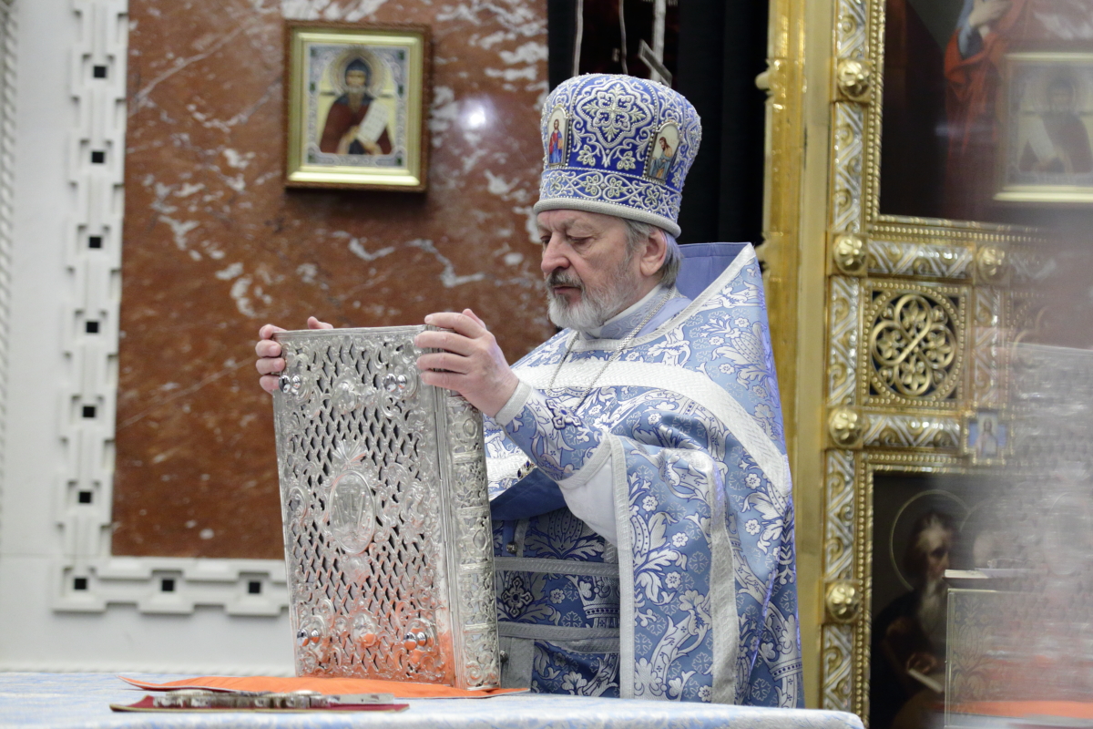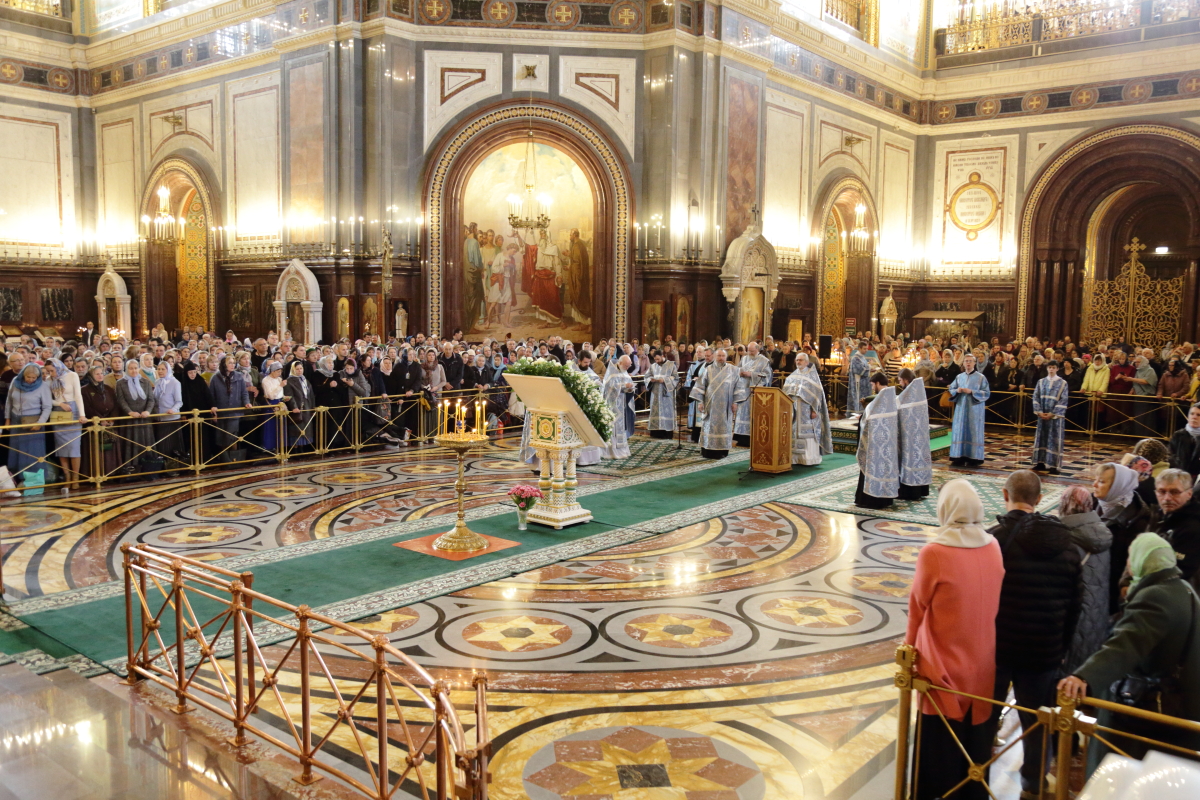 28 марта 2026 года, в субботу 5-ой седмицы Великого Поста — праздник Похвалы Божией Матери, в Храме Христа Спасителя была отслужена Божественная литургия и чин молебного пения, которые возглавил Ключарь Храма Христа Спасителя протоиерей Михаил Рязанцев.