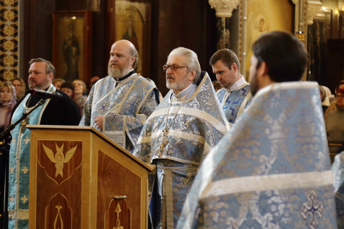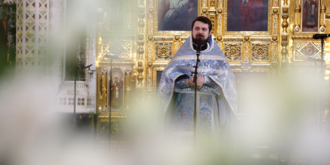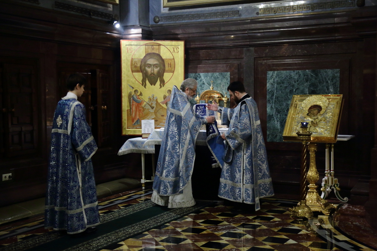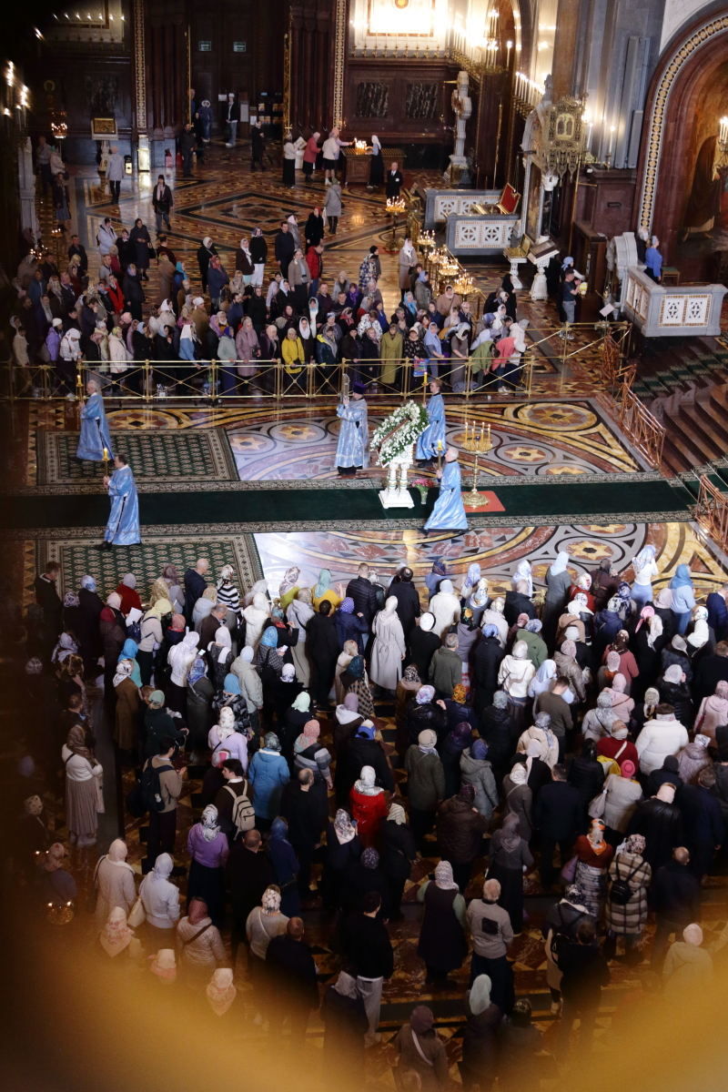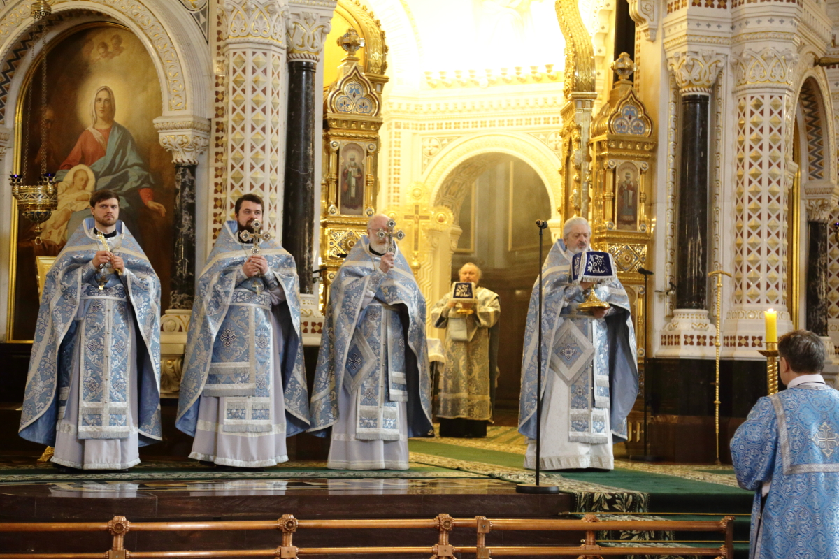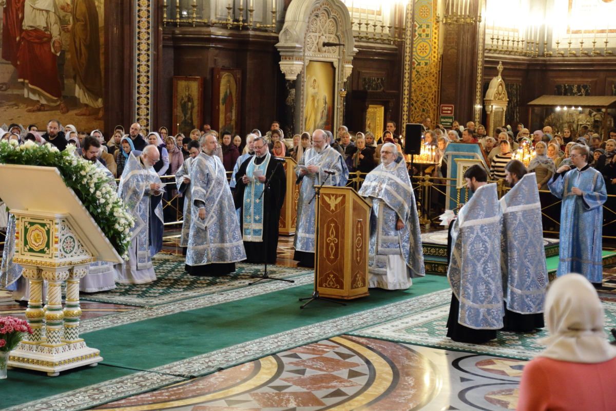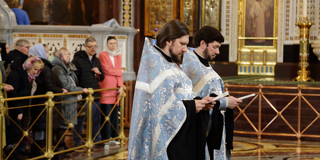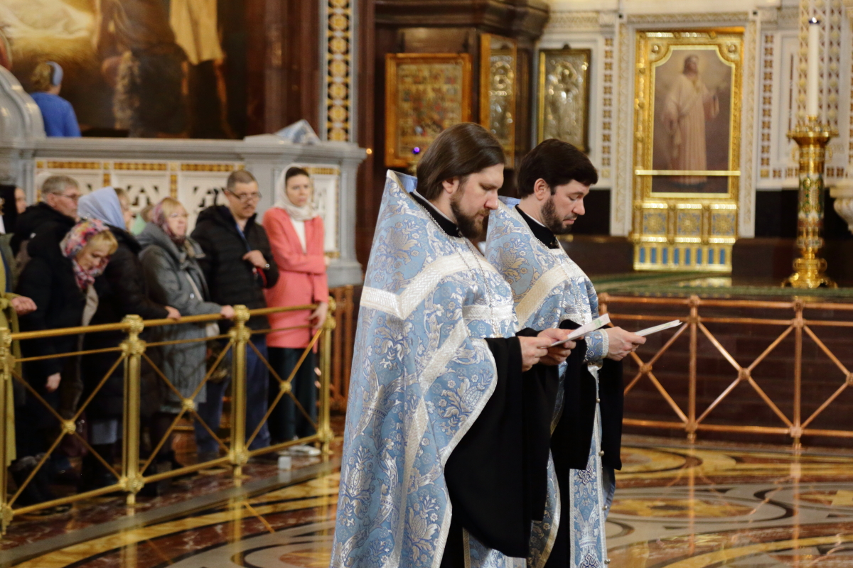 28 марта 2026 года, в субботу 5-ой седмицы Великого Поста — праздник Похвалы Божией Матери (Субботу Акафиста), в Храме Христа Спасителя была отслужена Божественная литургия и чин молебного пения, которые возглавил Ключарь Храма Христа Спасителя протоиерей Михаил Рязанцев.