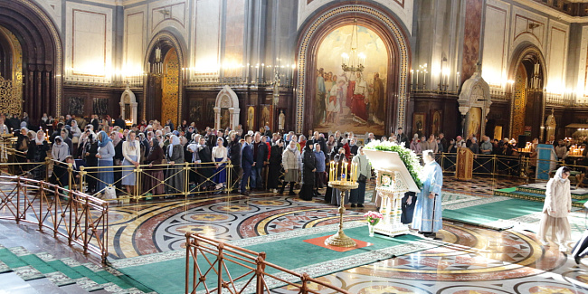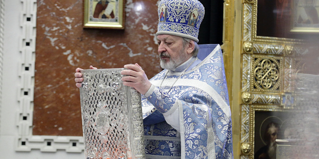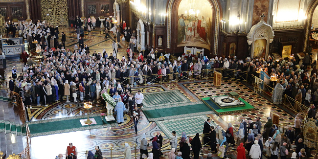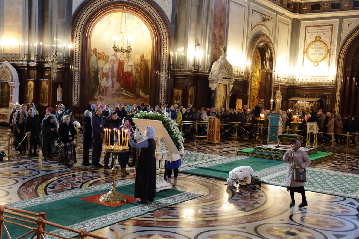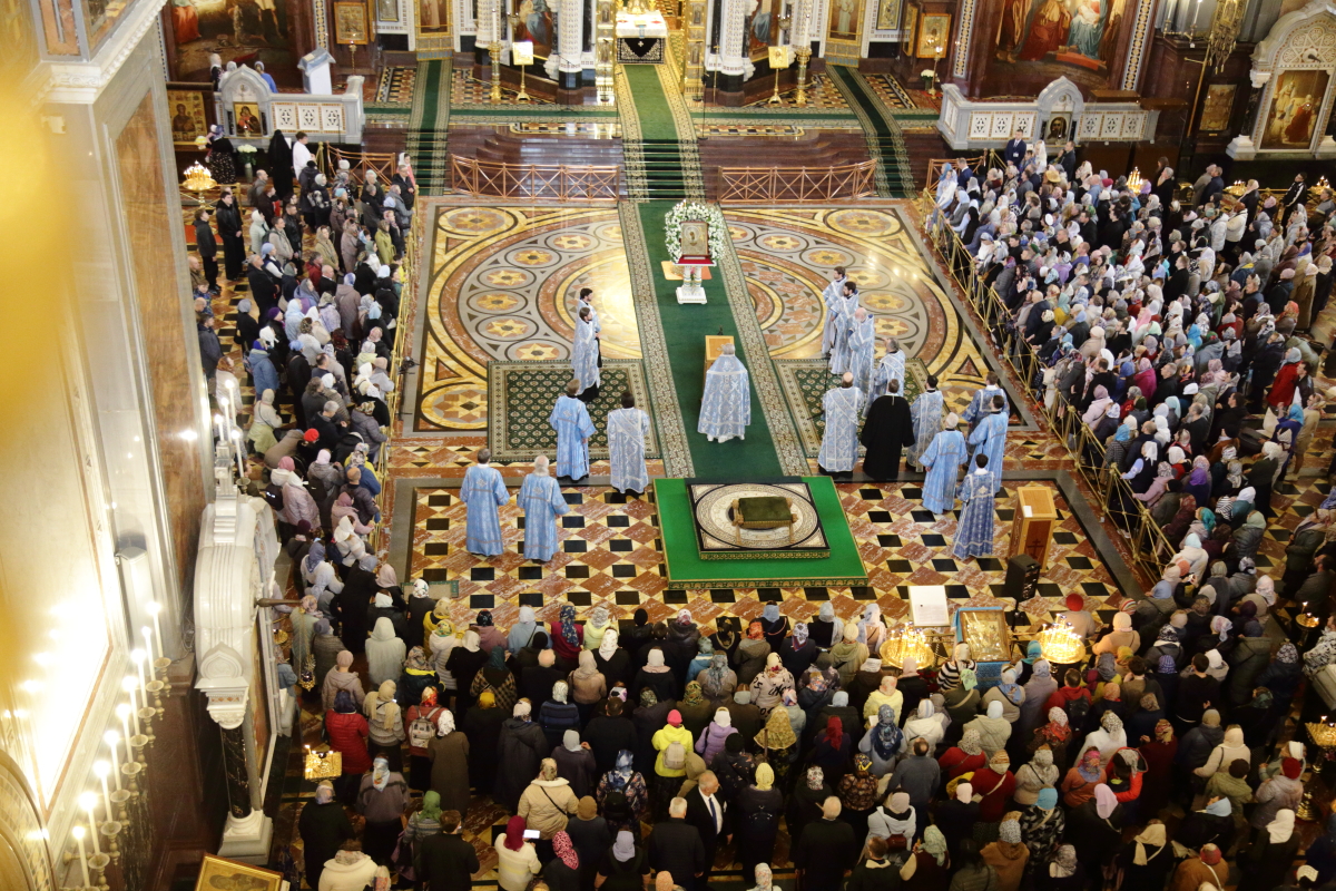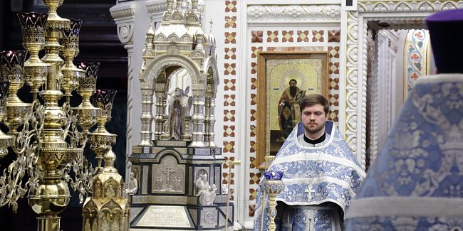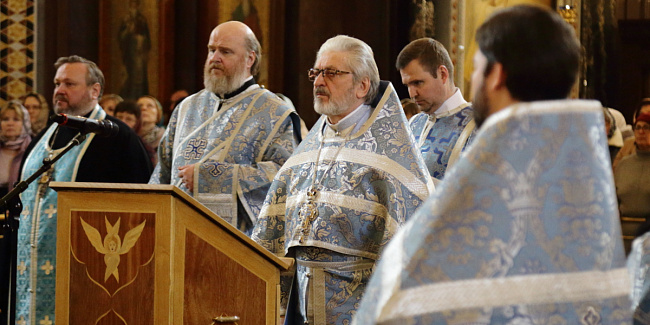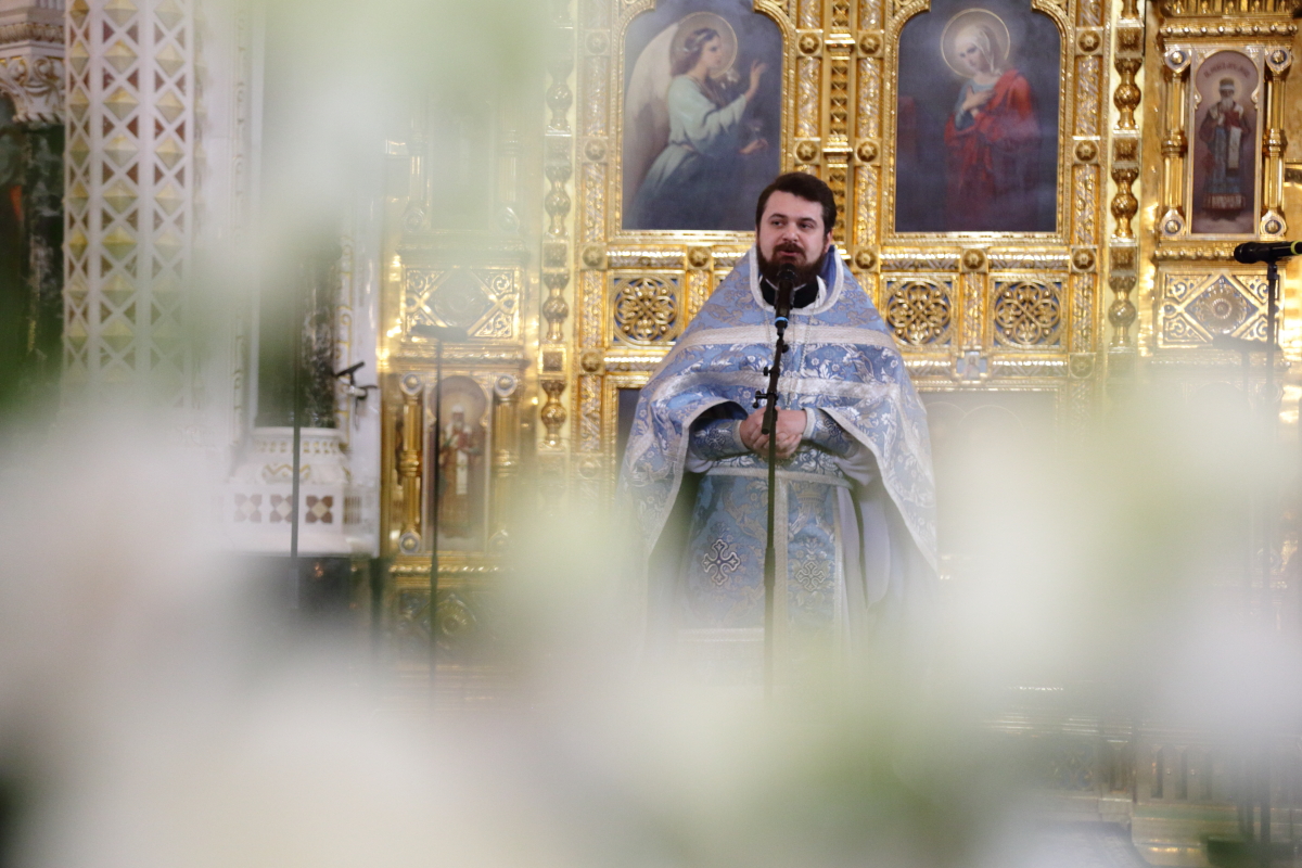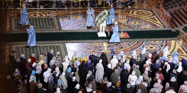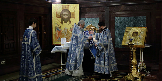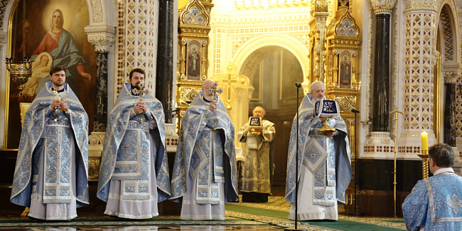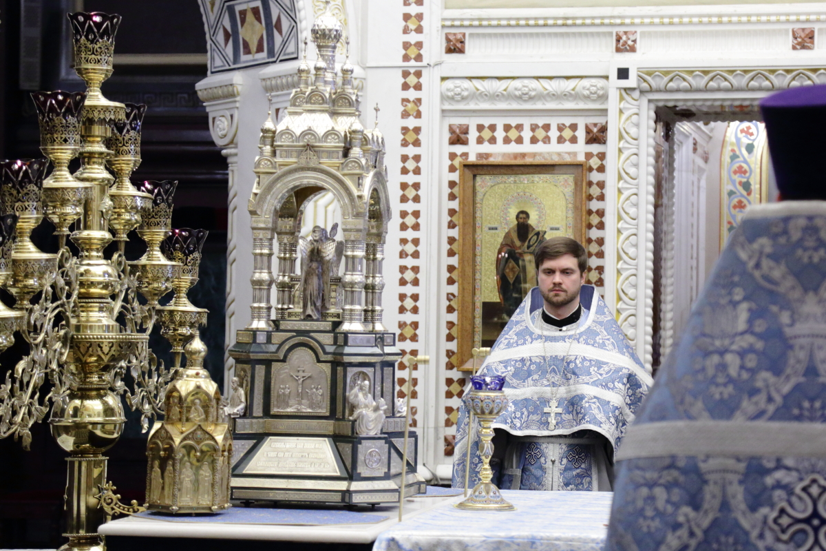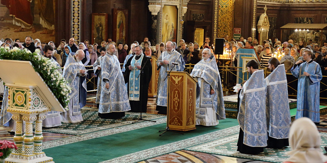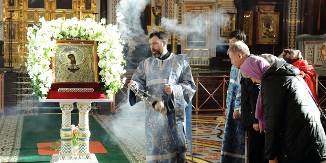 28 марта 2026 года, в субботу 5-ой седмицы Великого Поста — праздник Похвалы Божией Матери (Субботу Акафиста), в Храме Христа Спасителя была отслужена Божественная литургия и чин молебного пения, которые возглавил Ключарь Храма Христа Спасителя протоиерей Михаил Рязанцев.