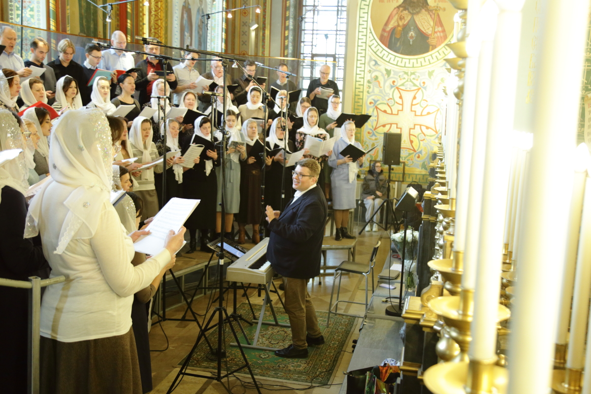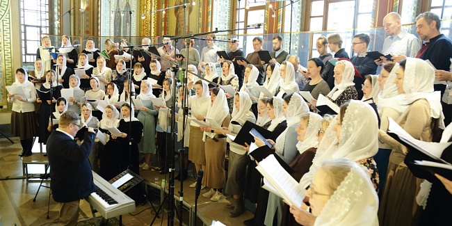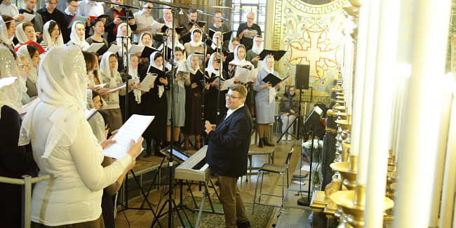 Богослужебные песнопения исполнил Преображенский хор Храма Христа Спасителя под управлением регента Сергея Сидоренко.