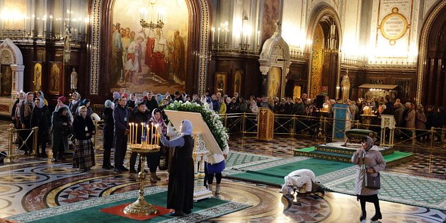 По благословению Святейшего Патриарха Кирилла Серафимо-Дивеевская икона Божией Матери «Умиление» пребывала в Храме Христа Спасителя до 15:00 28 марта 2026 года.