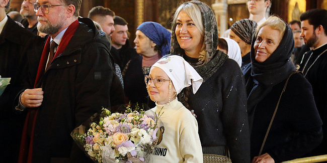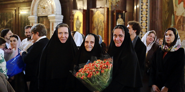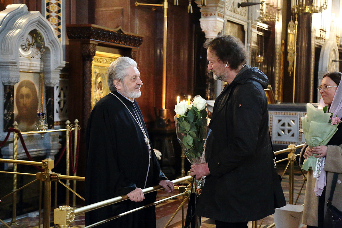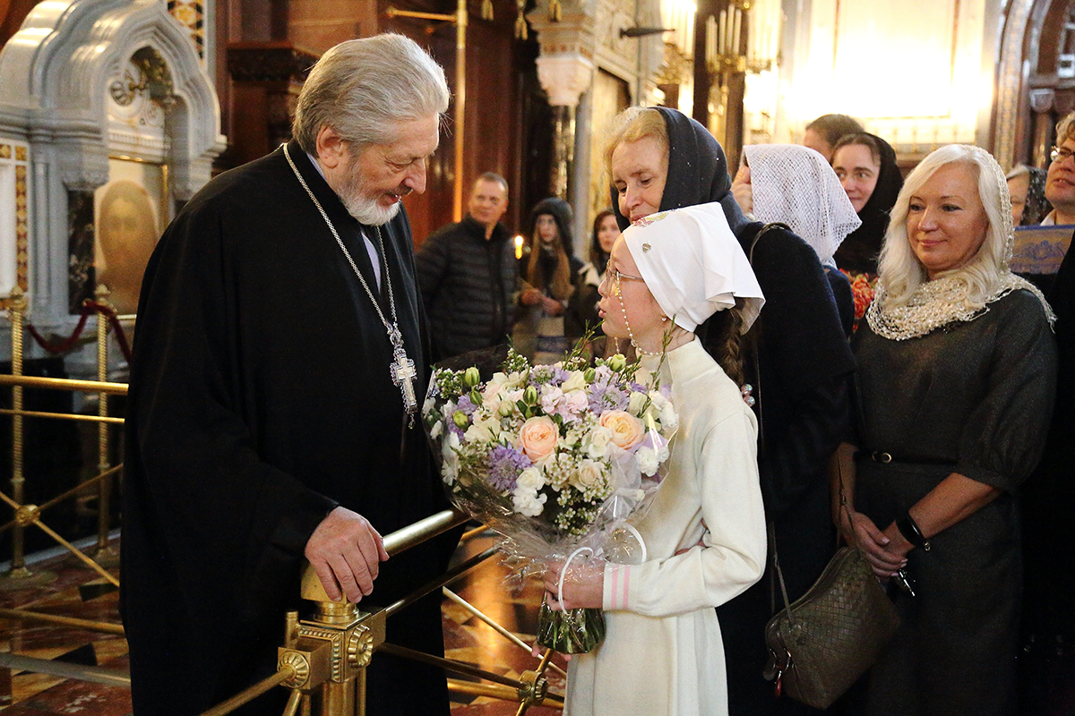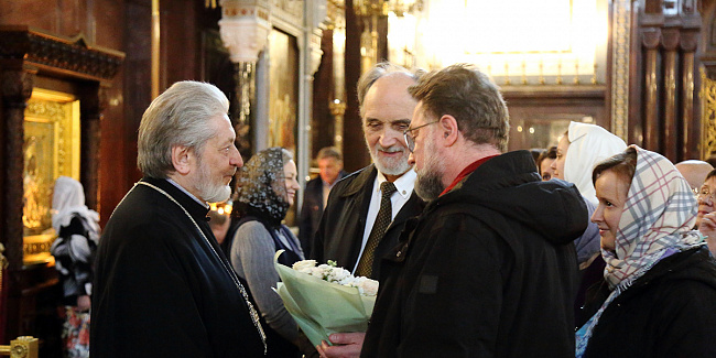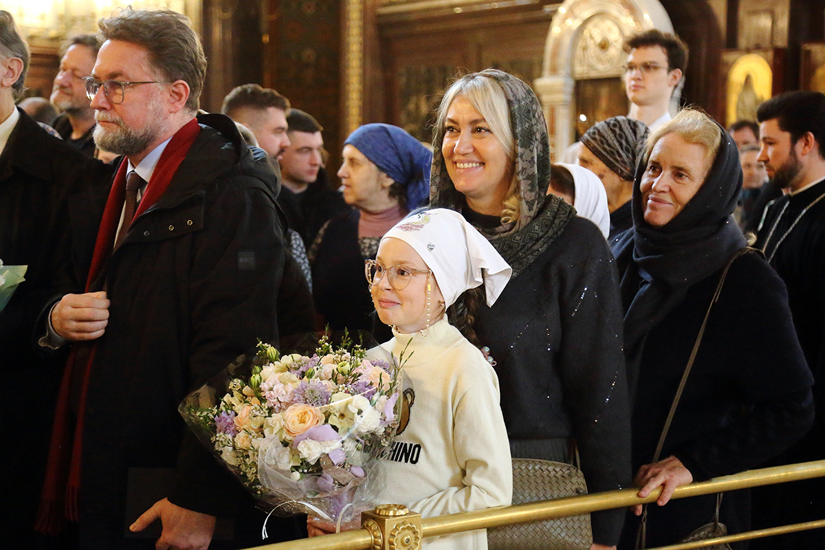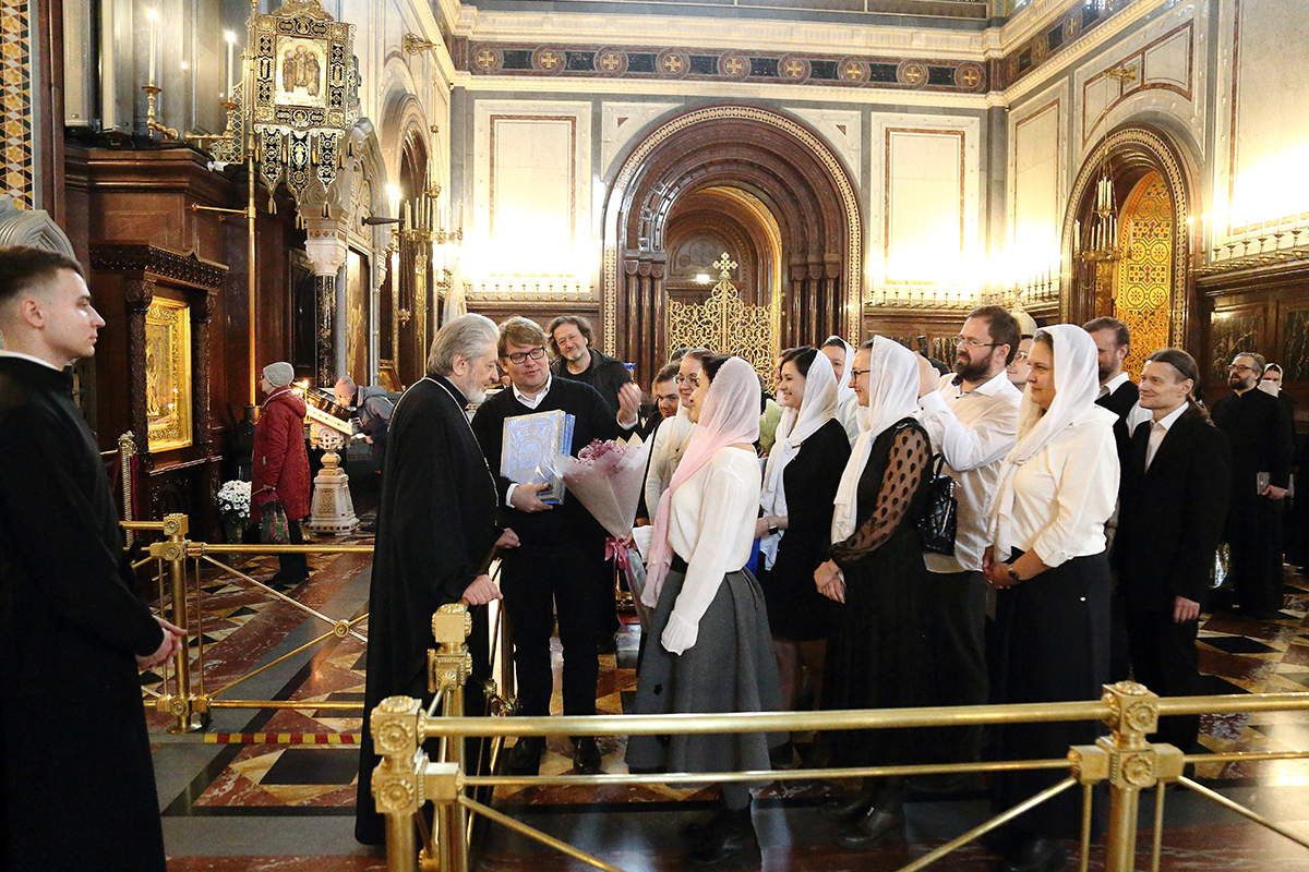 За Богослужением пел Камерный хор Храма Христа Спасителя под управлением Сергея Сидоренко.