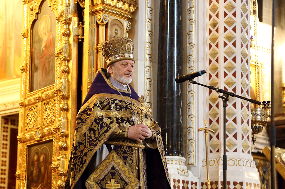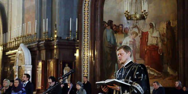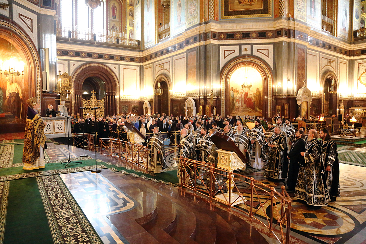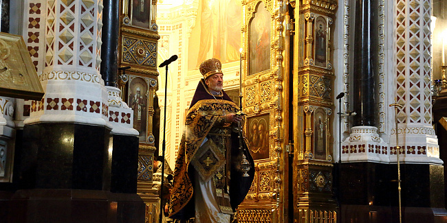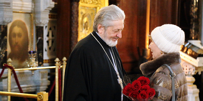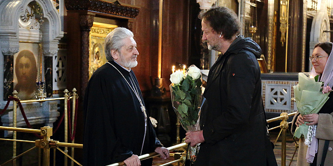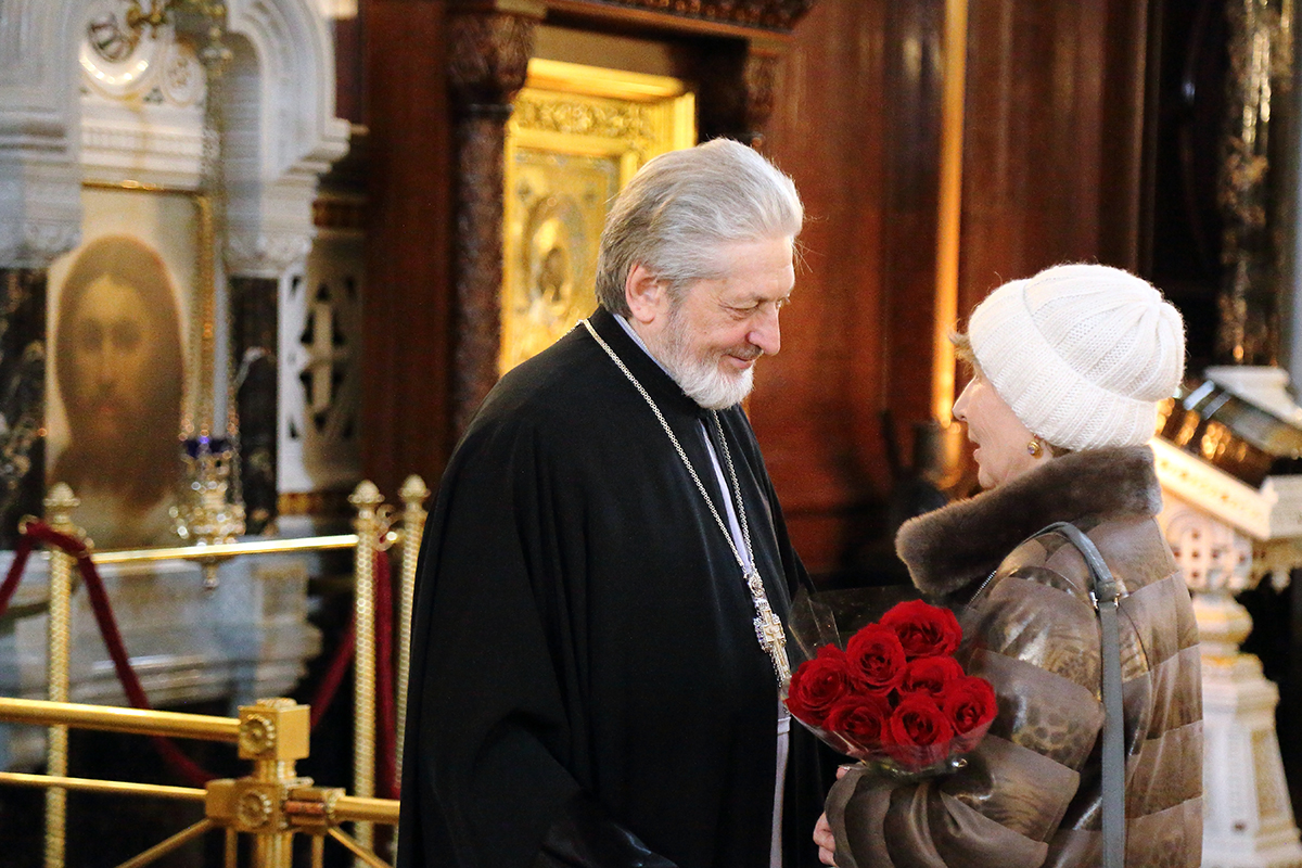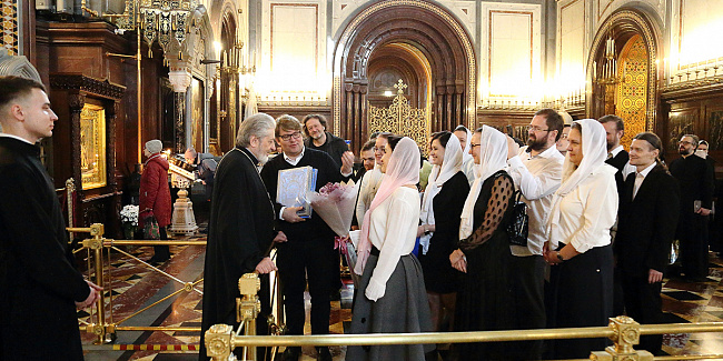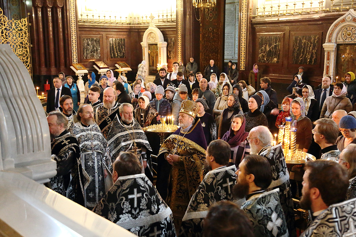 За Богослужением пел Камерный хор Храма Христа Спасителя под управлением Сергея Сидоренко.