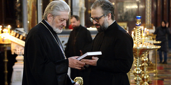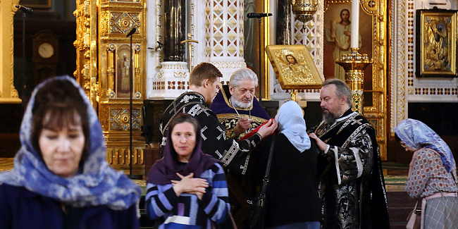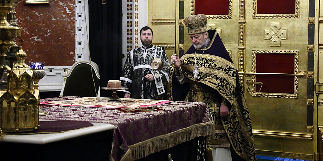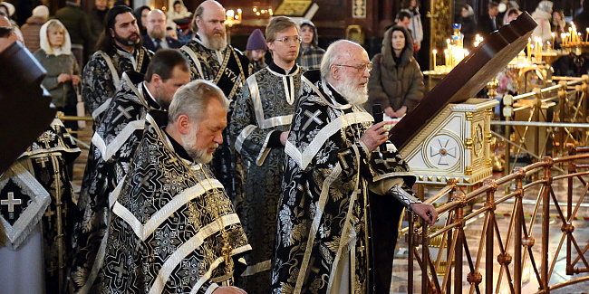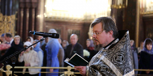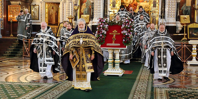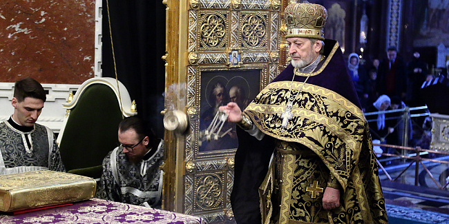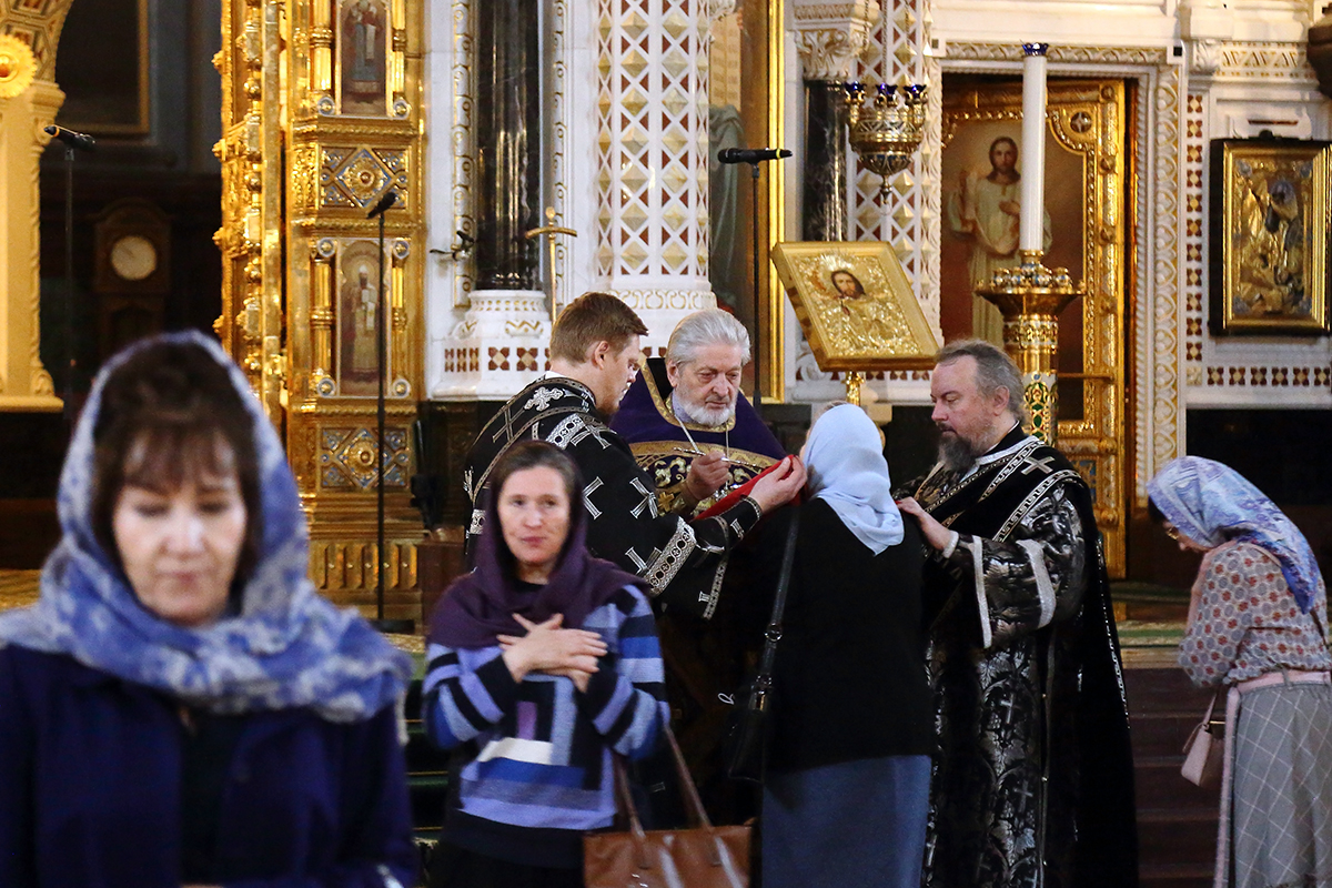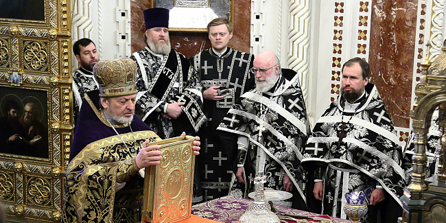27 марта 2025 года, праздник иконы Божией Матери "Феодоровская", Благоверного великого князя Ростислава-Михаила, в Кафедральном соборном Храме Христа Спасителя была отслужена Литургия Преждеосвященных Даров которую возглавил Ключарь Храма Христа Спасителя протоиерей Михаил Рязанцев.