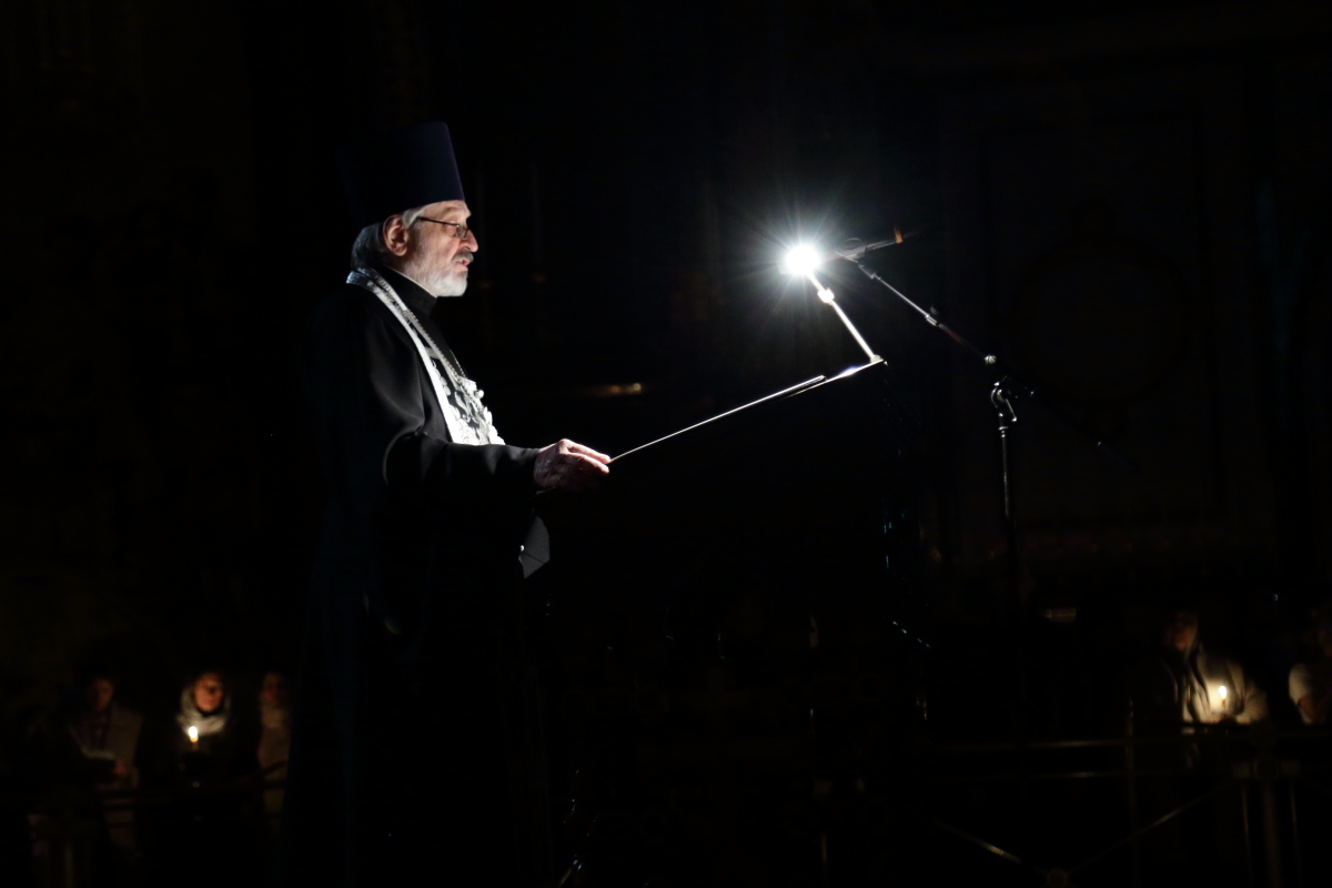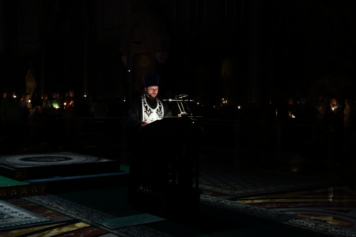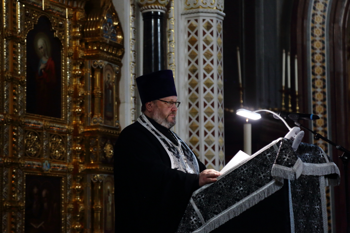 Богослужебные песнопения исполнил Патриарший хор Храма Христа Спасителя (регент — Илья Толкачев).