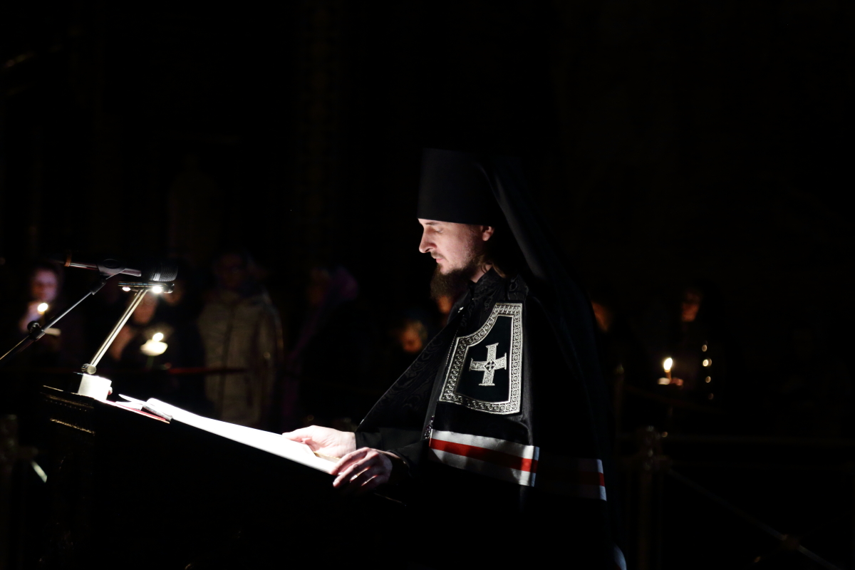 Первые три песни Великого покаянного канона читал Святейший Патриарх Кирилл. Далее канон читали митрополит Воскресенский Григорий, епископ Раменский Алексий, протоиерей Михаил Рязанцев, протоиерей Андрей Марущак и иерей Михаил Нараевский, насельник Свято-Троицкой Сергиевой лавры иеромонах Александр (Серпенинов).