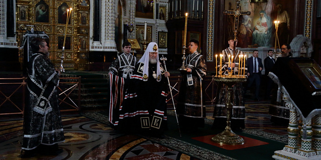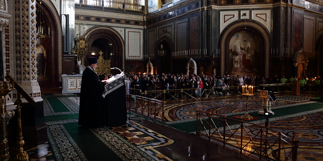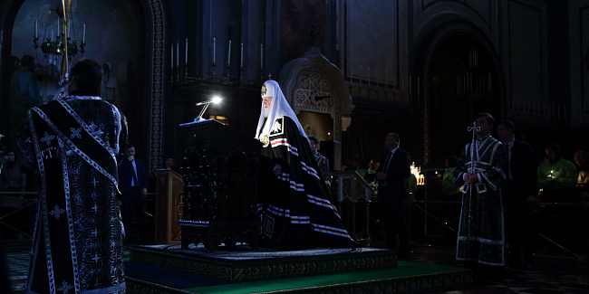 Святейший Патриарх Кирилл совершил утреню с чтением Великого канона преподобного Андрея Критского в Храме Христа Спасителя