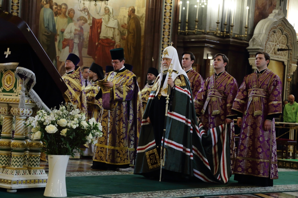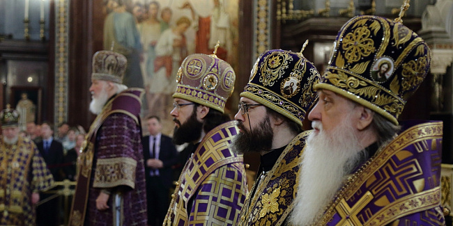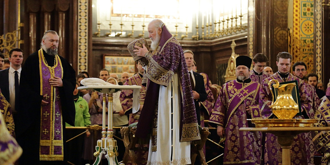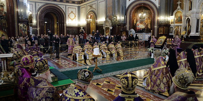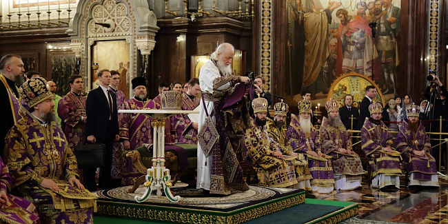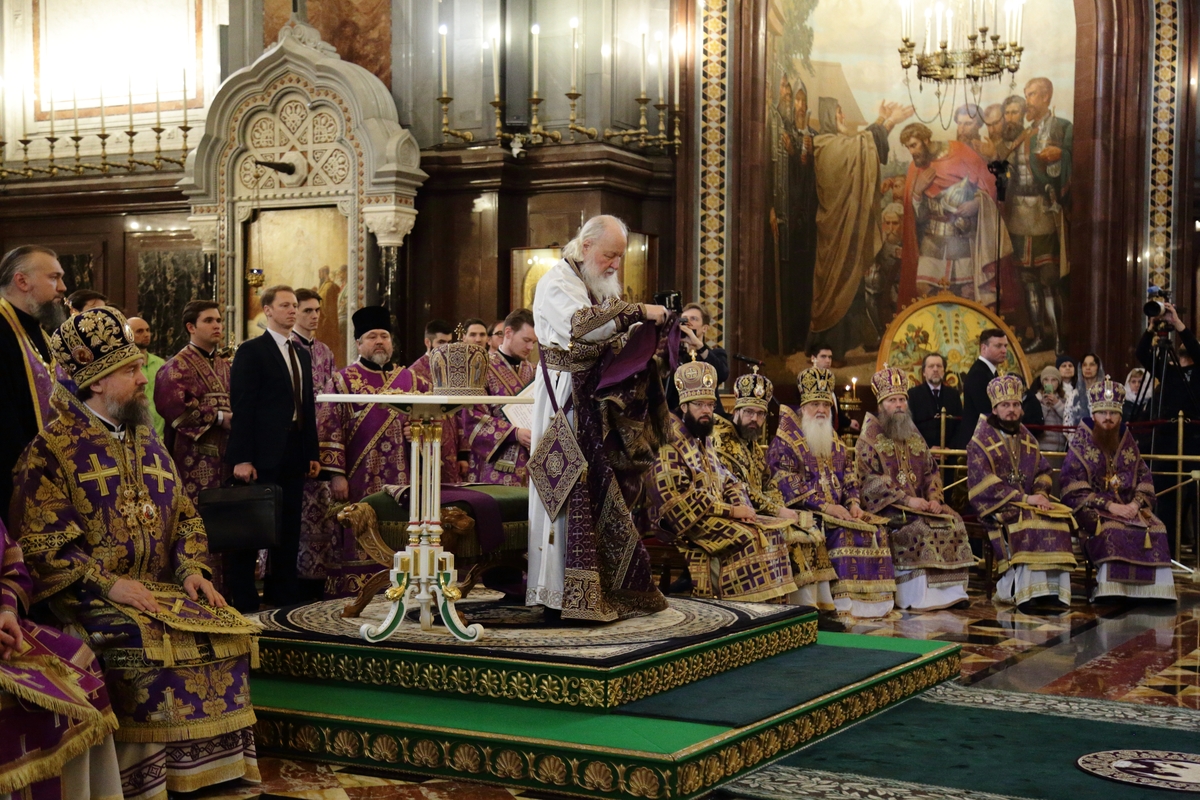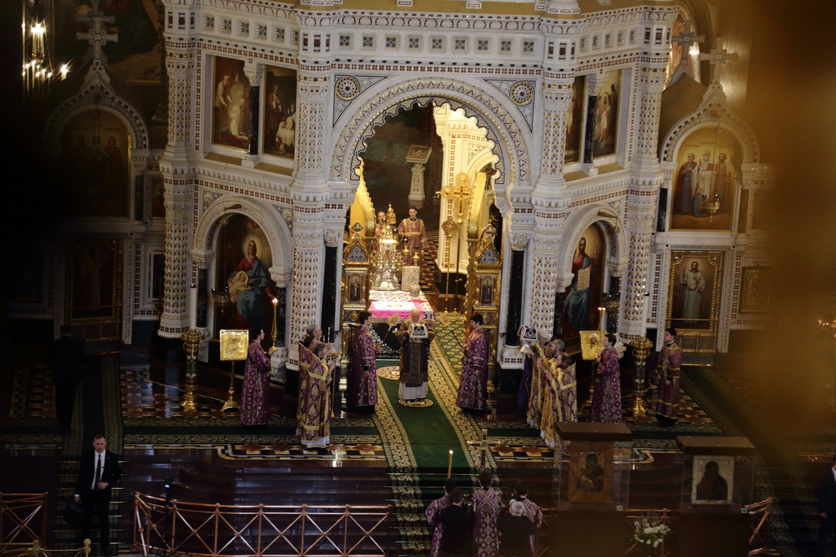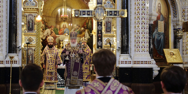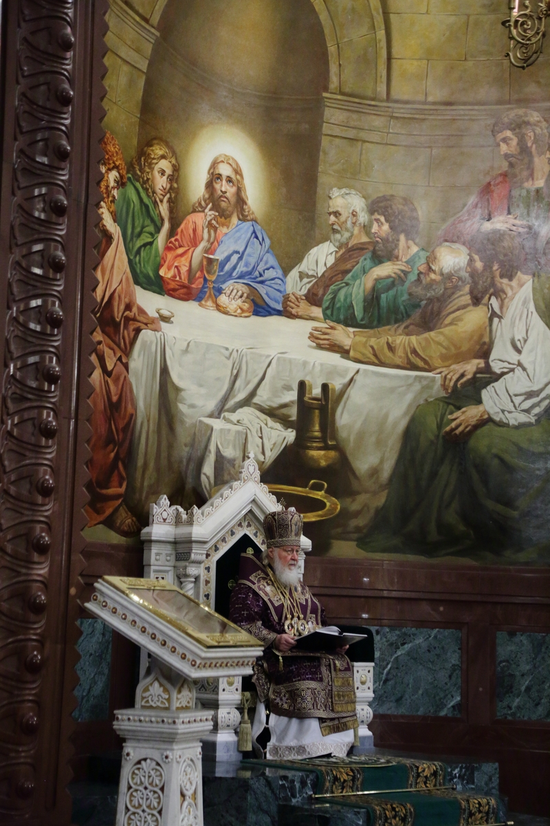В четверг Страстной седмицы Предстоятель Русской Церкви совершил Литургию в Храме Христа Спасителя