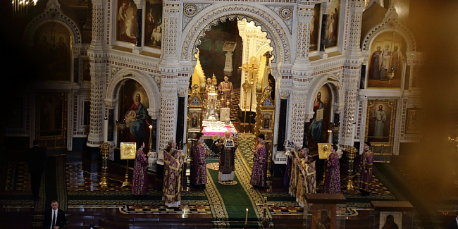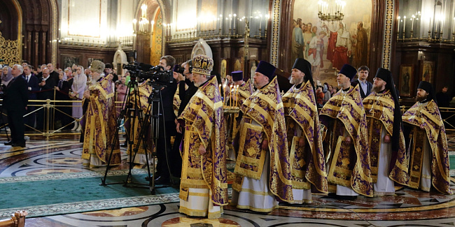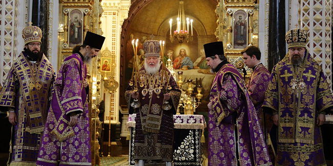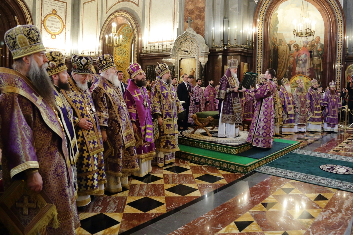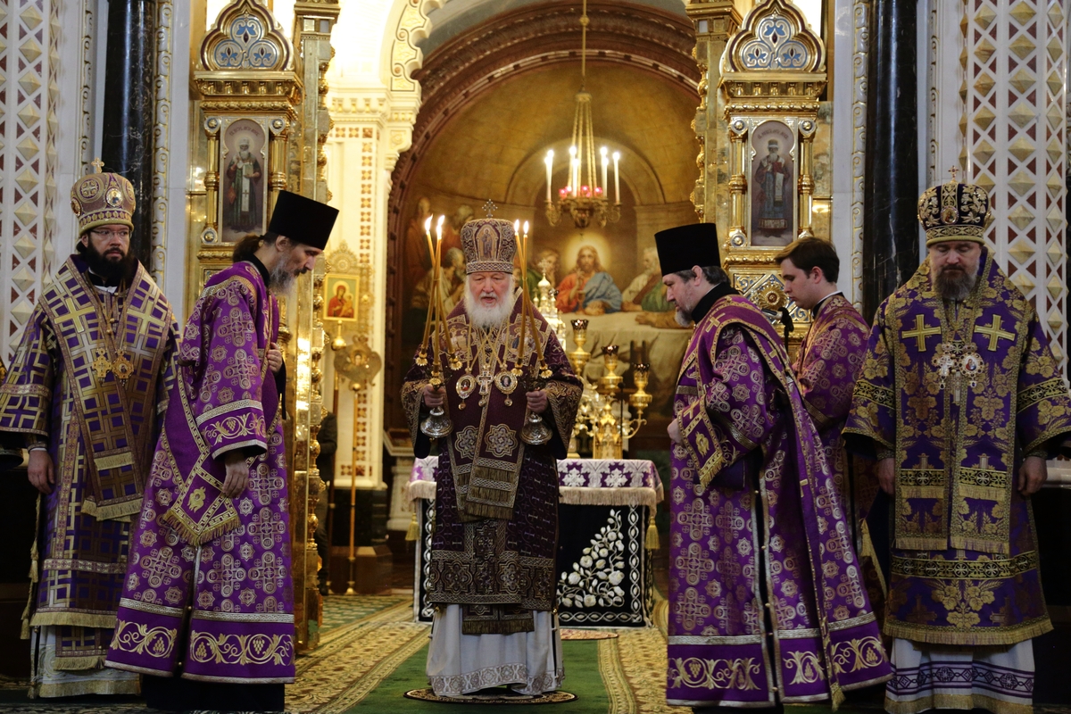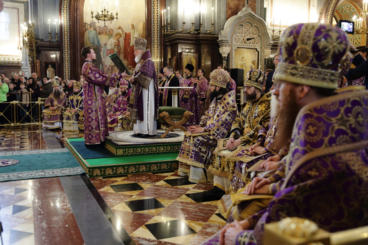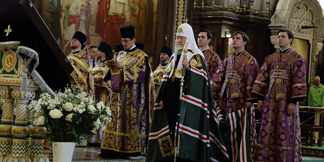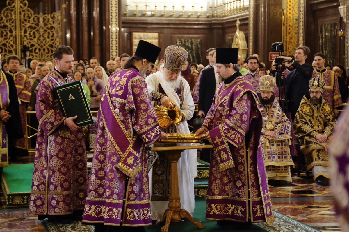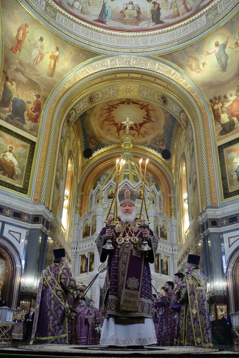 В четверг Страстной седмицы Предстоятель Русской Церкви совершил Литургию в Храме Христа Спасителя