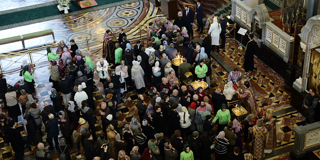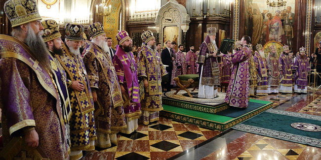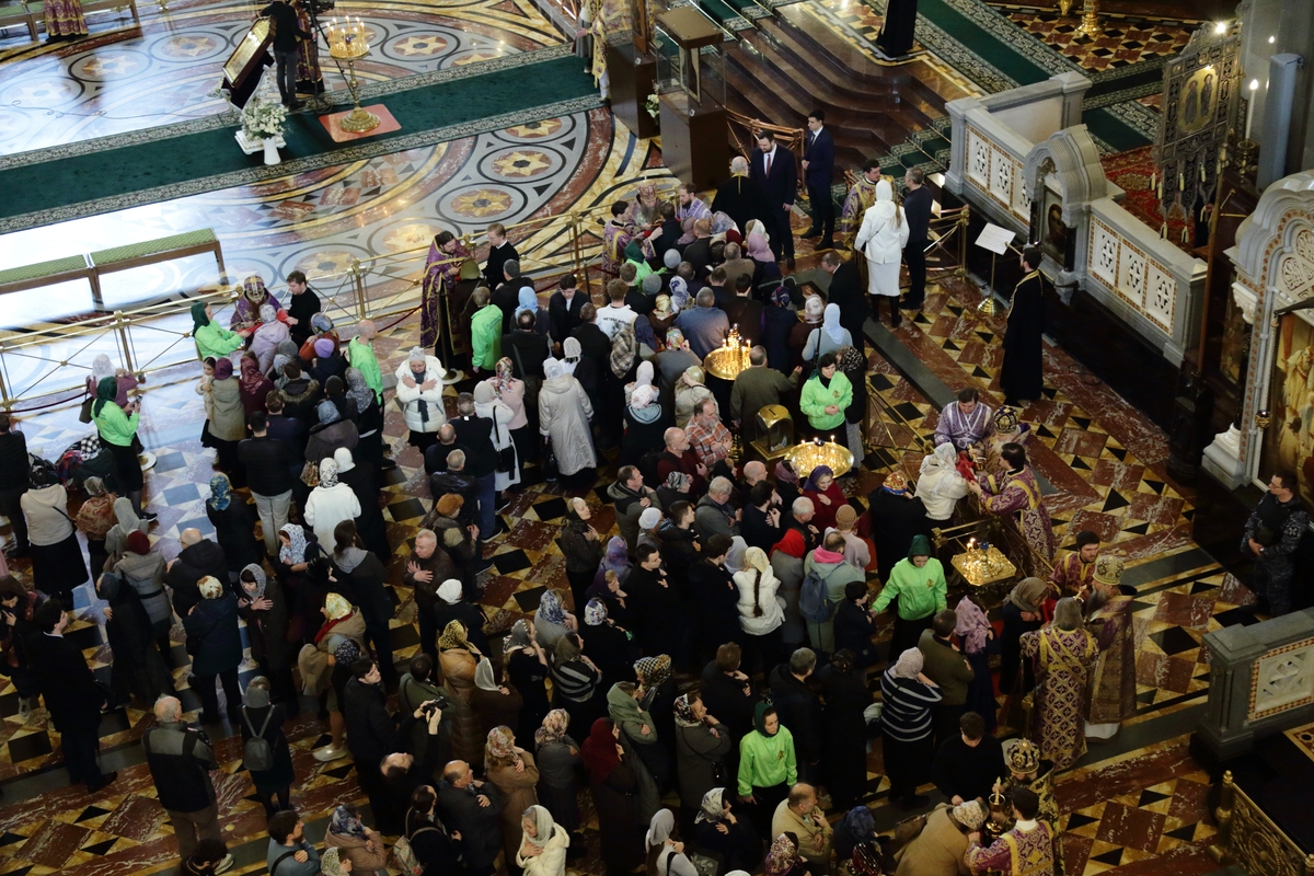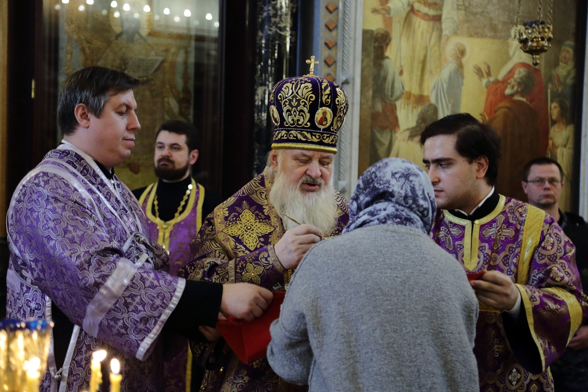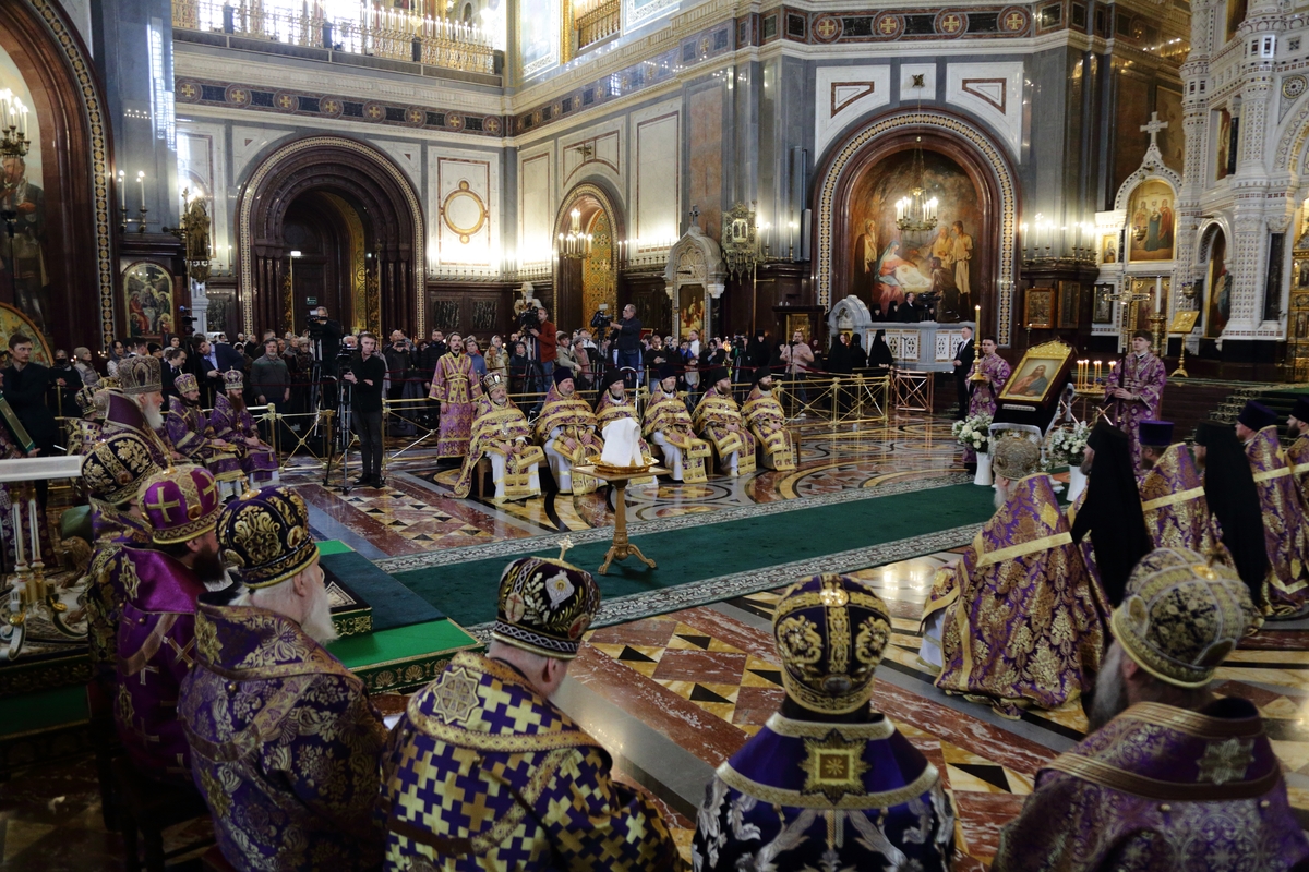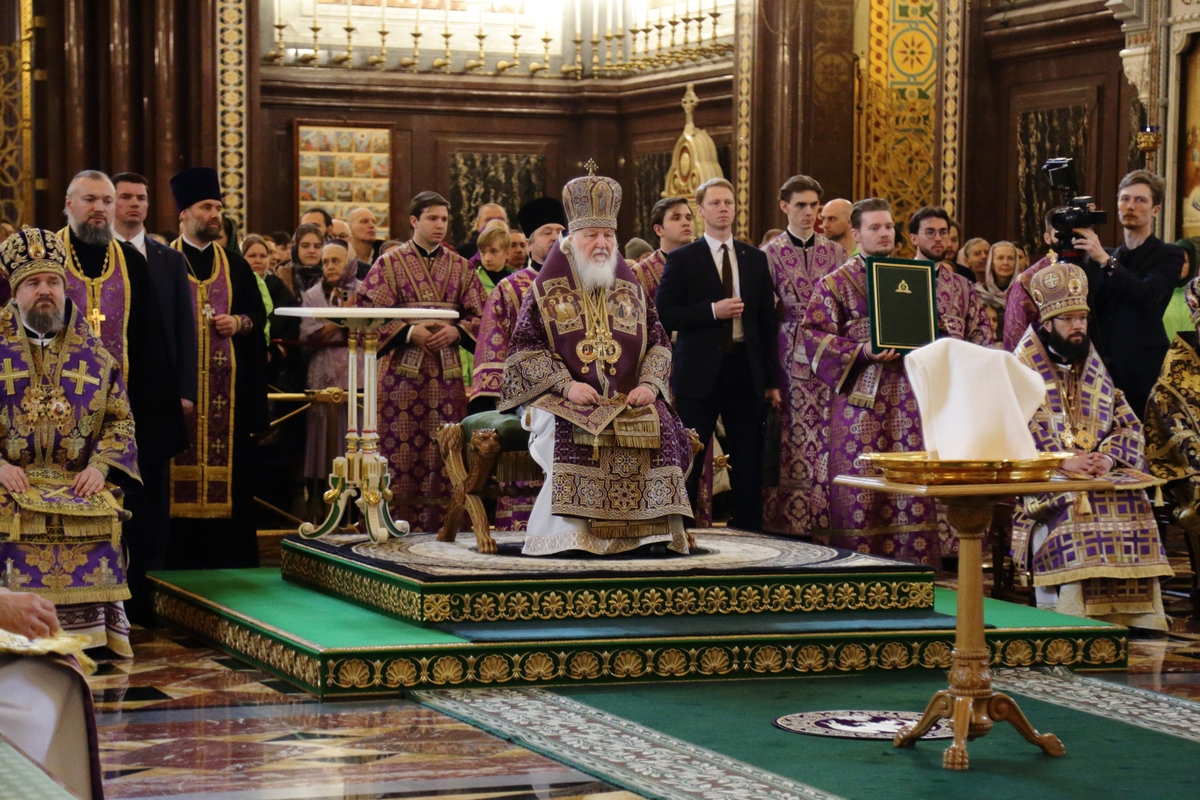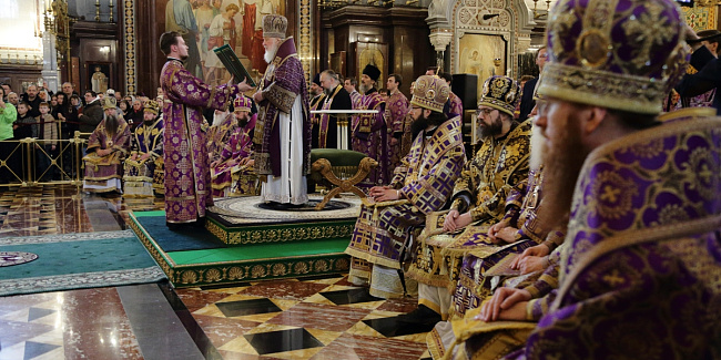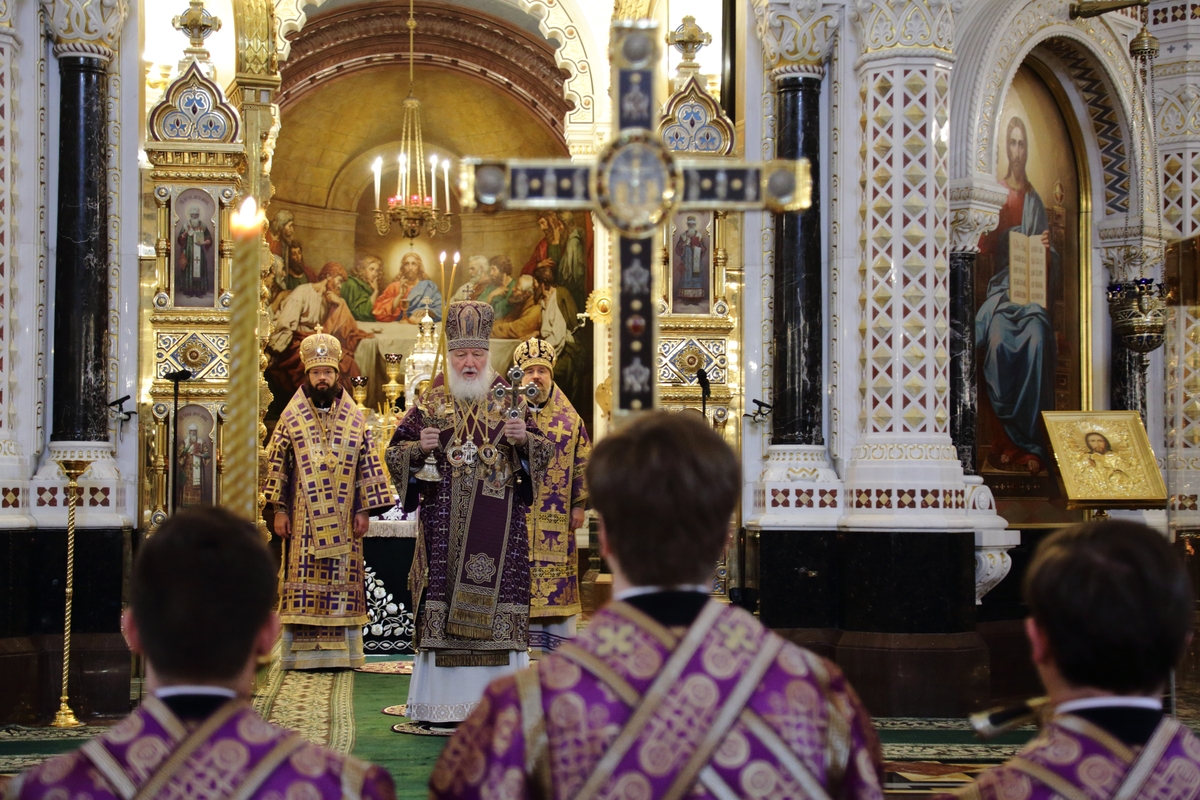 В четверг Страстной седмицы Предстоятель Русской Церкви совершил Литургию в Храме Христа Спасителя
