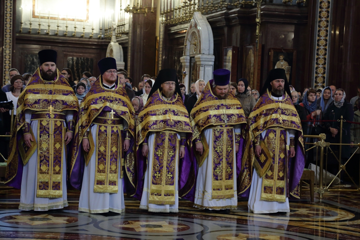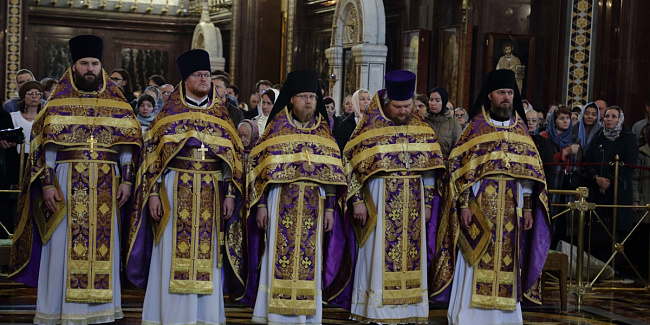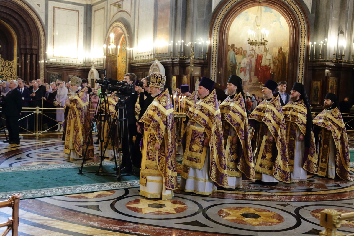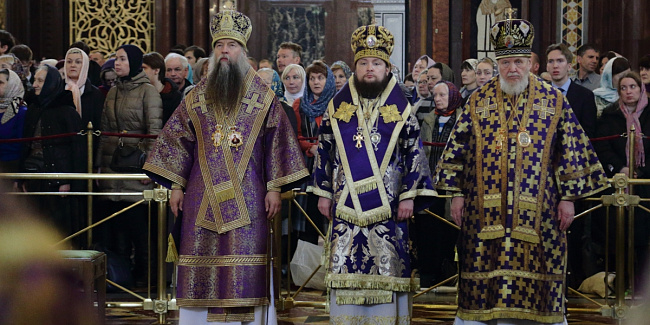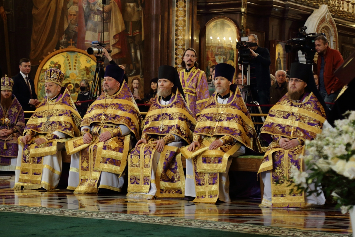 Богослужебные песнопения исполнил Патриарший хор Храма Христа Спасителя (регент — Илья Толкачев).