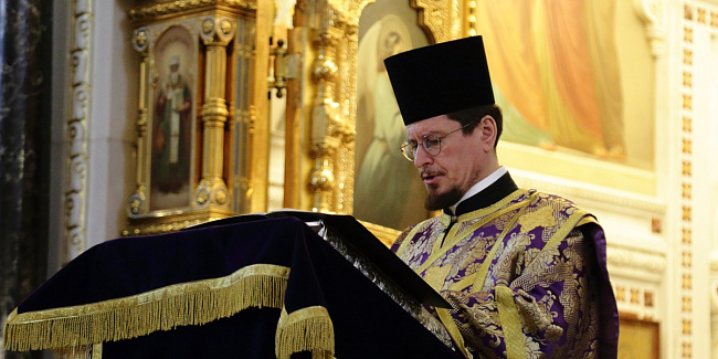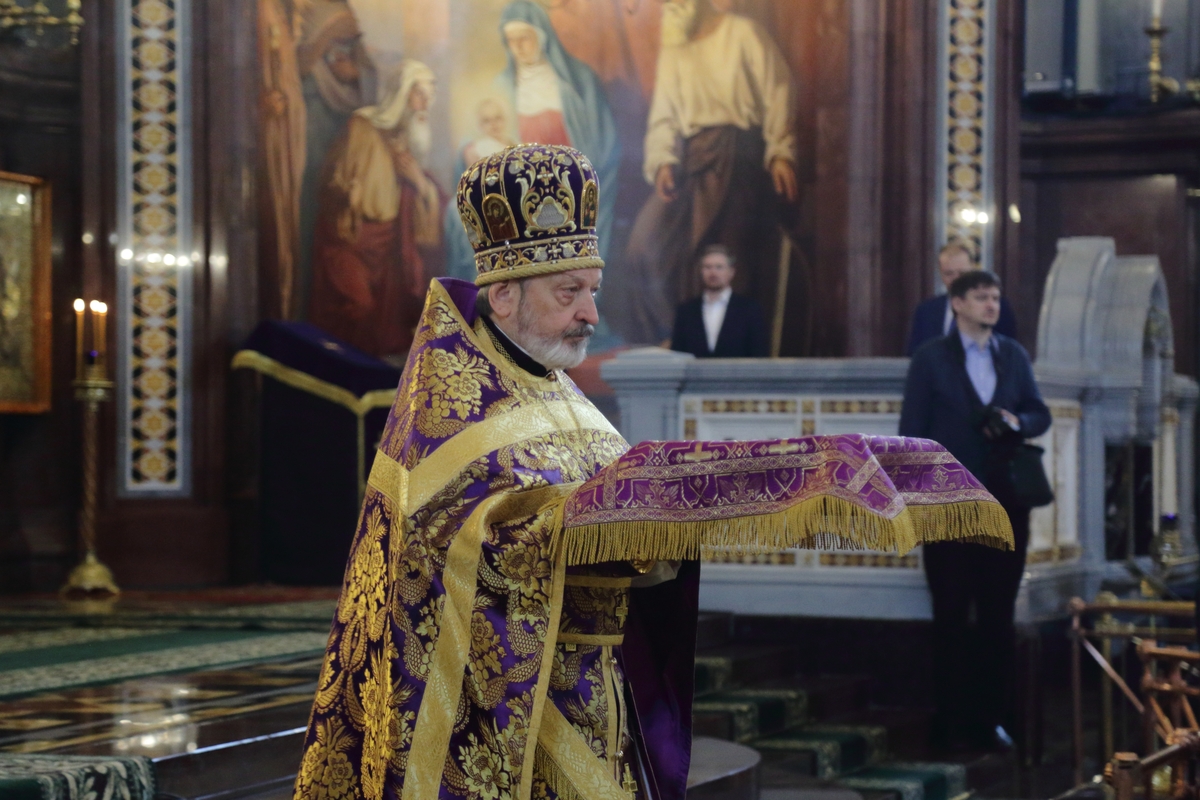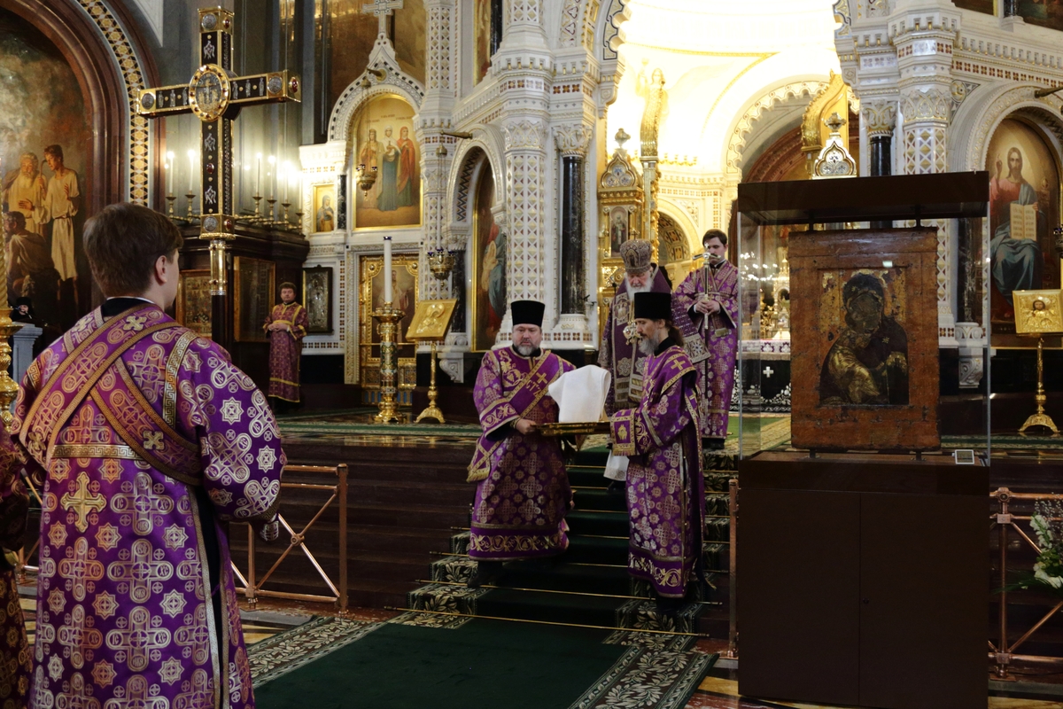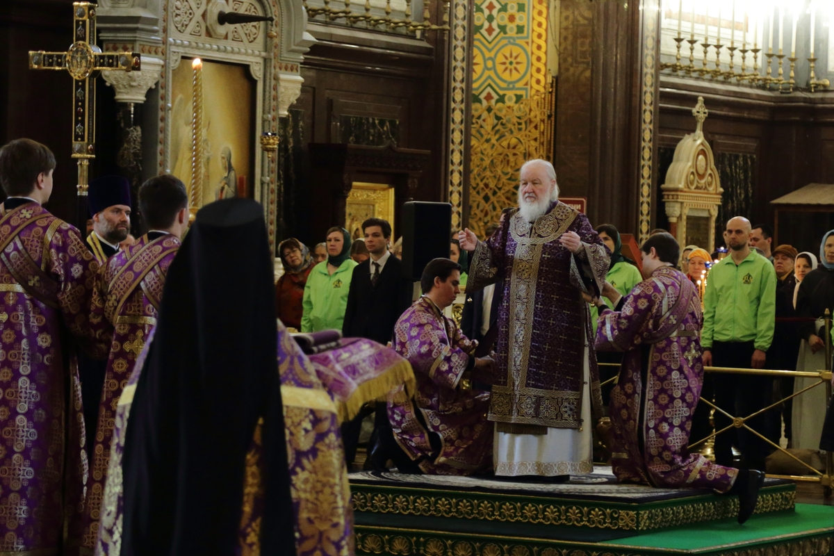 Богослужебные песнопения исполнил Патриарший хор Храма Христа Спасителя (регент — Илья Толкачев).