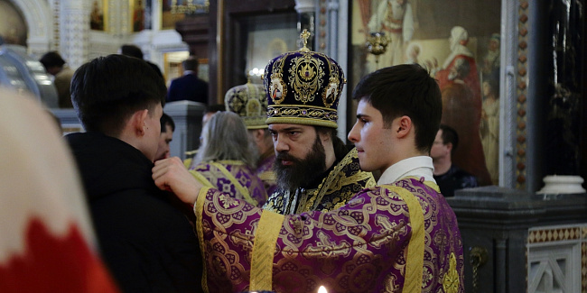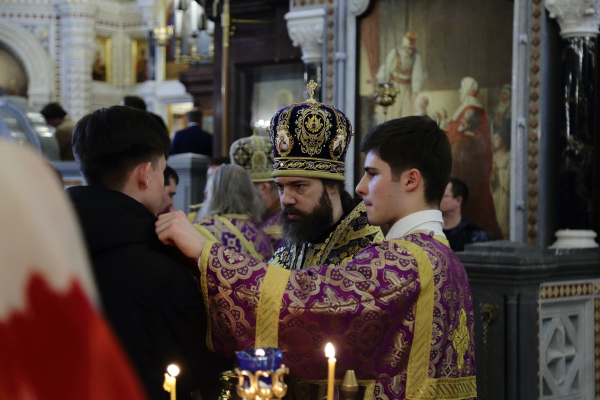 Проповедь перед причастием произнес епископ Истринский Серафим.