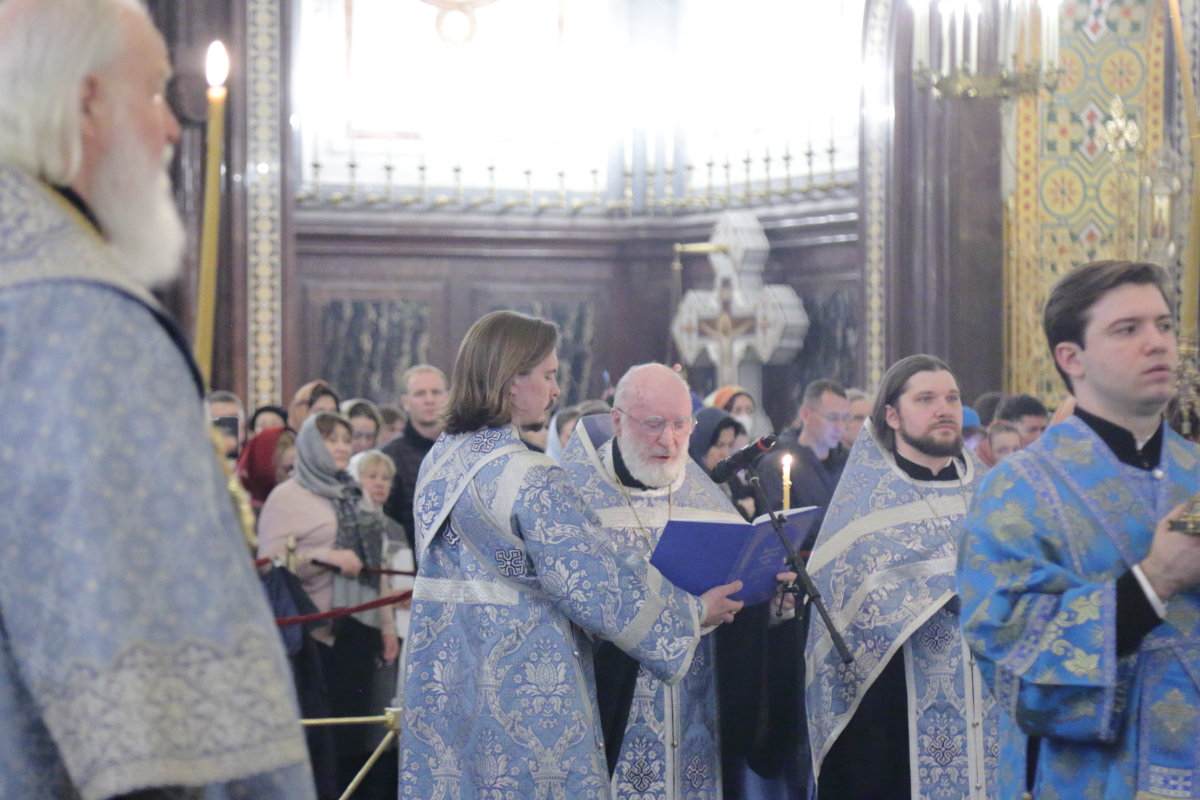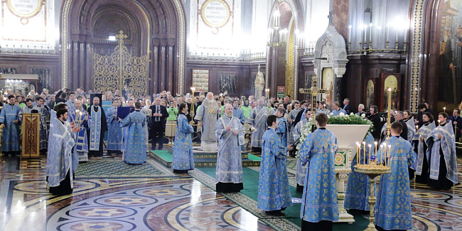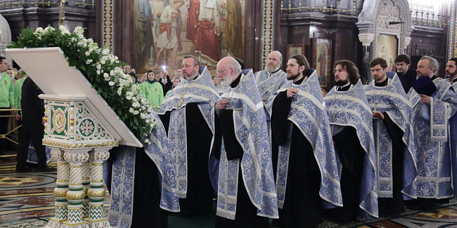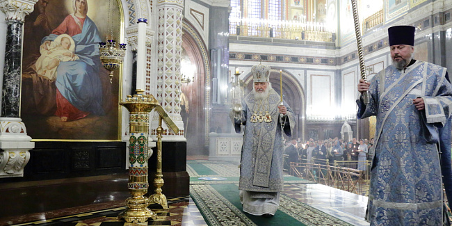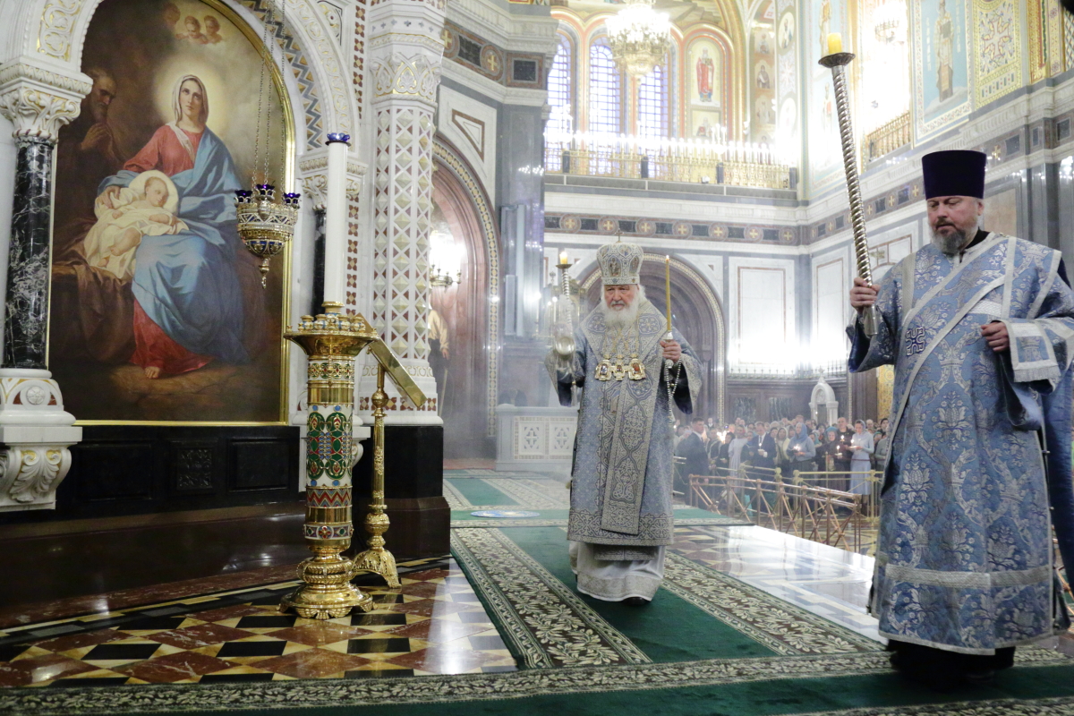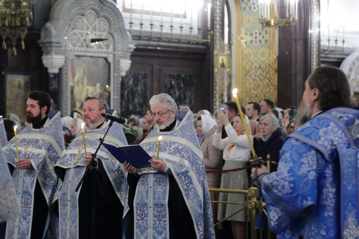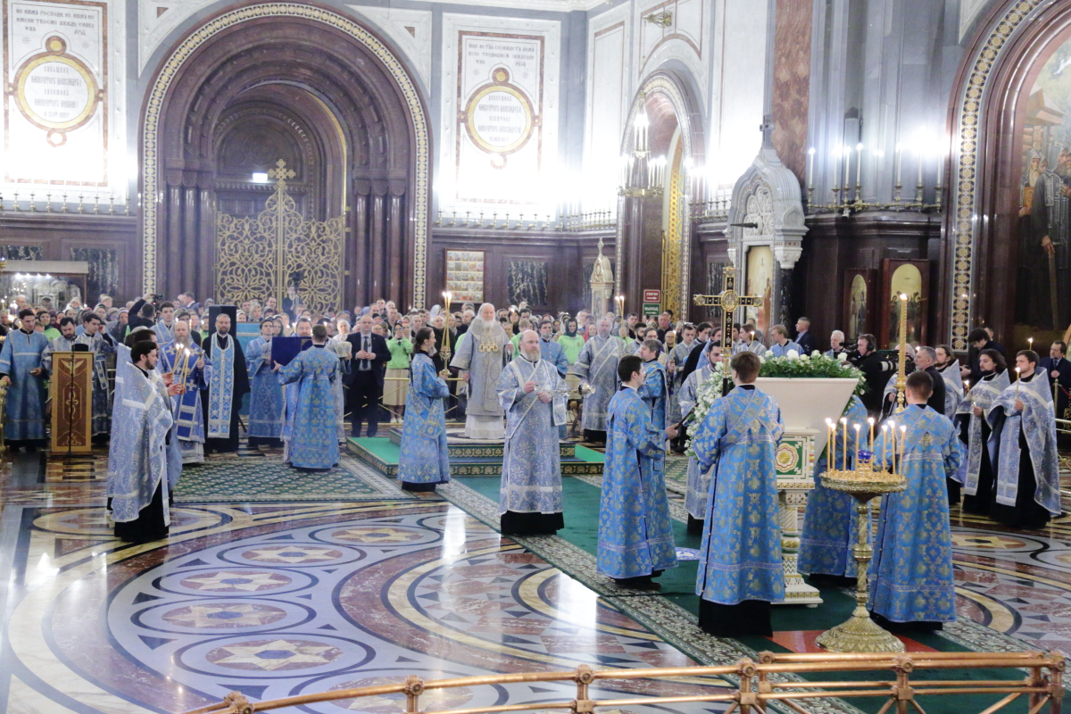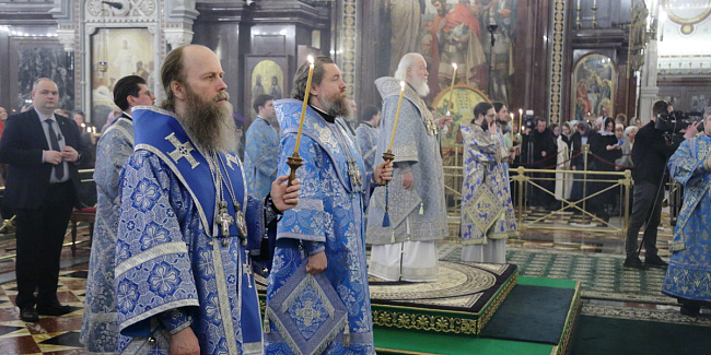 В канун Субботы Акафиста Святейший Патриарх Кирилл совершил утреню с чтением акафиста Пресвятой Богородице в Храме Христа Спасителя