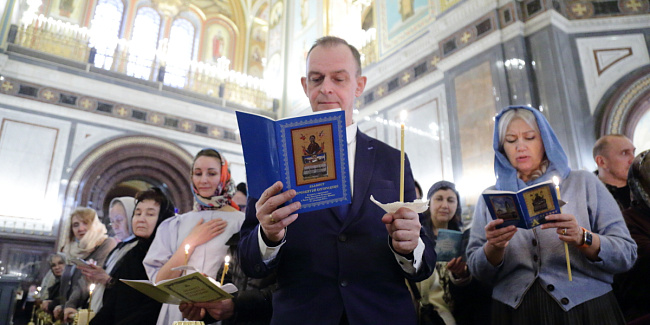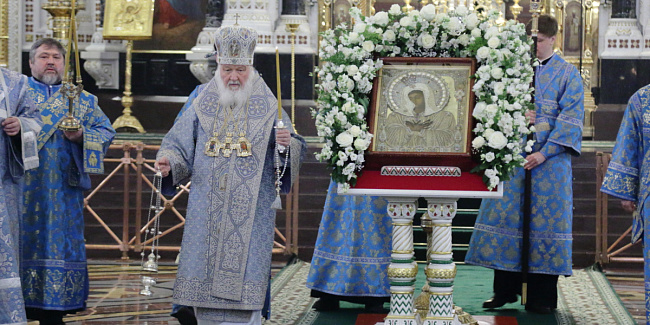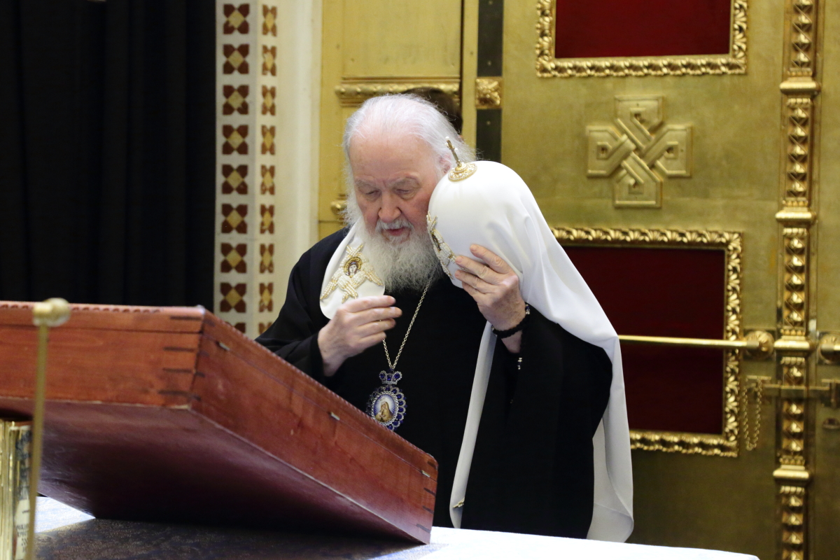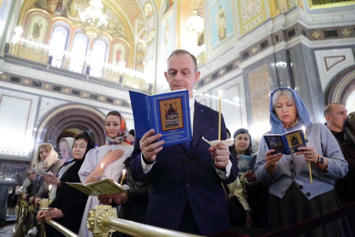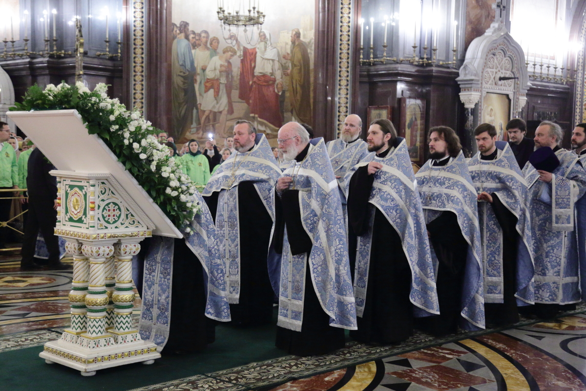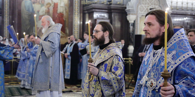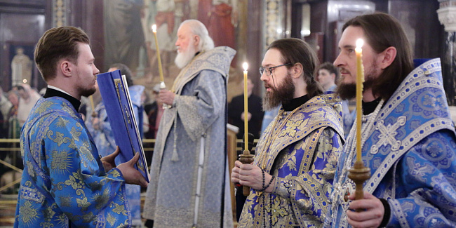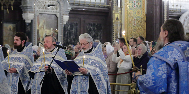 В канун Субботы Акафиста Святейший Патриарх Кирилл совершил утреню с чтением акафиста Пресвятой Богородице в Храме Христа Спасителя