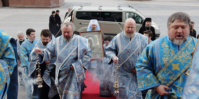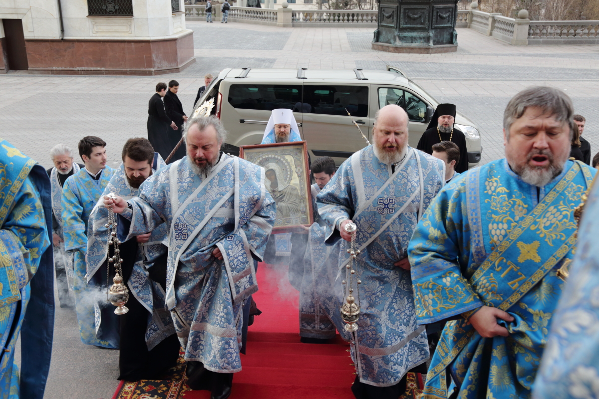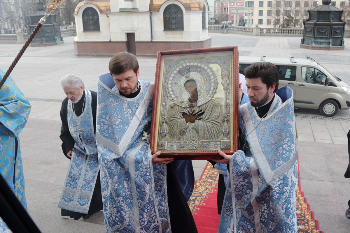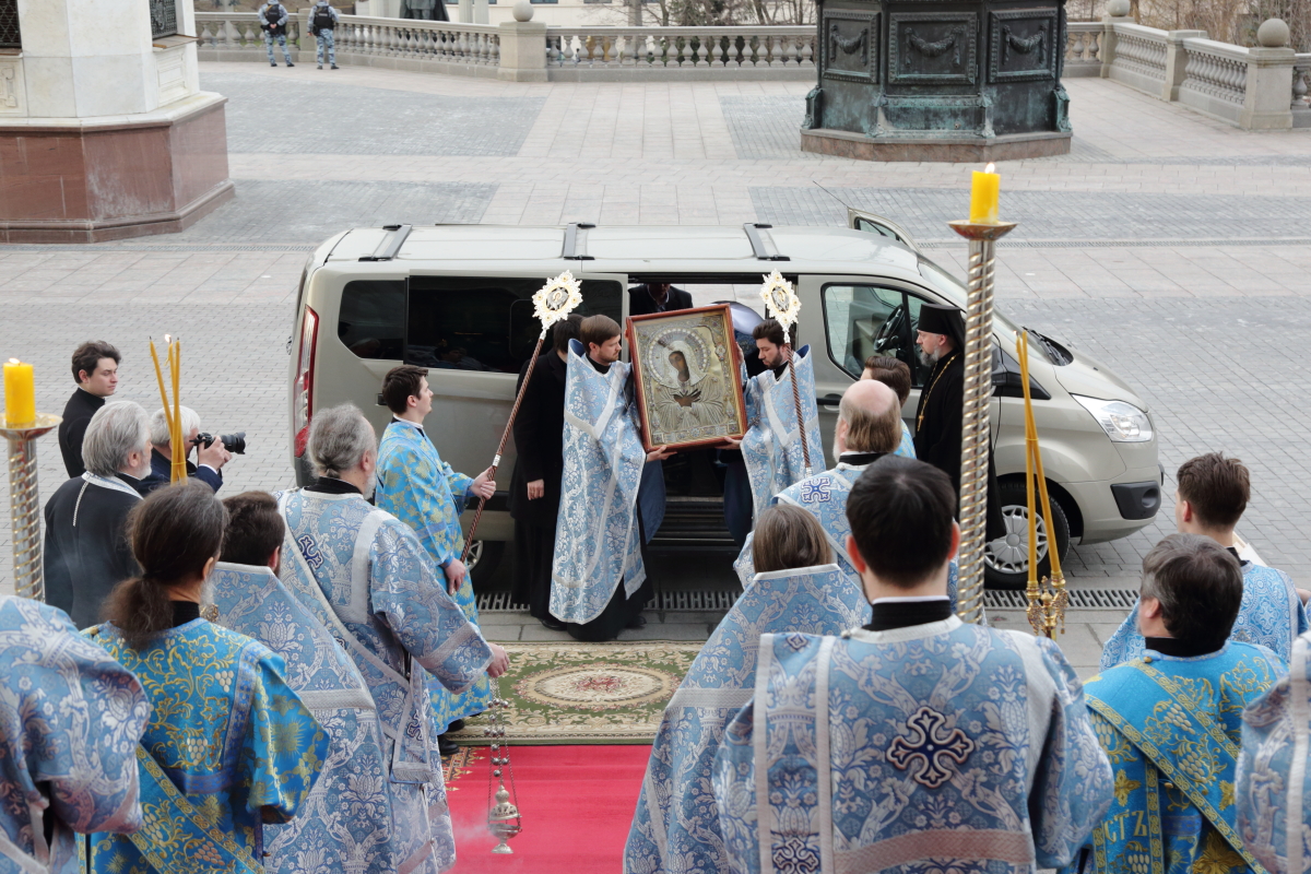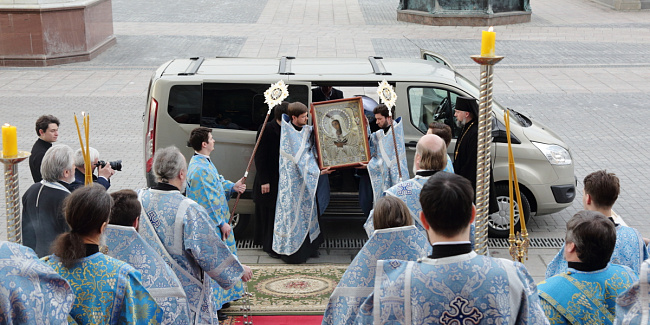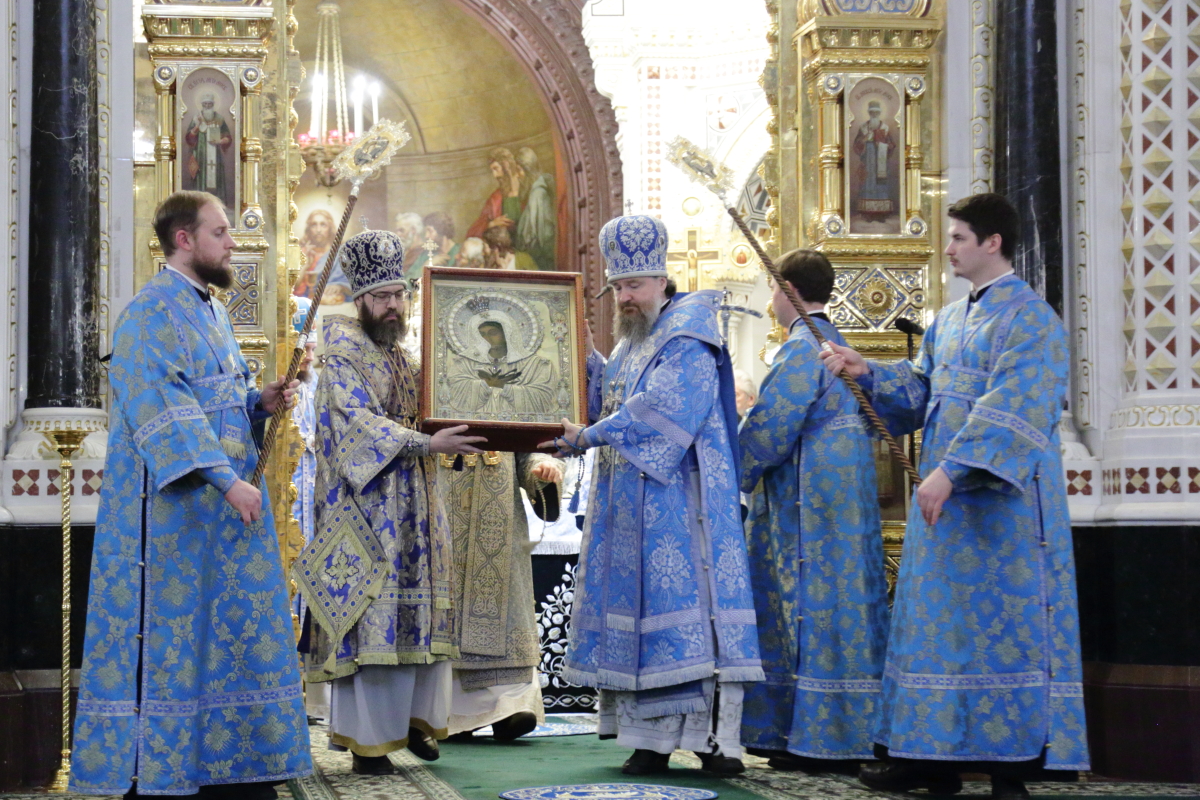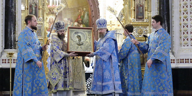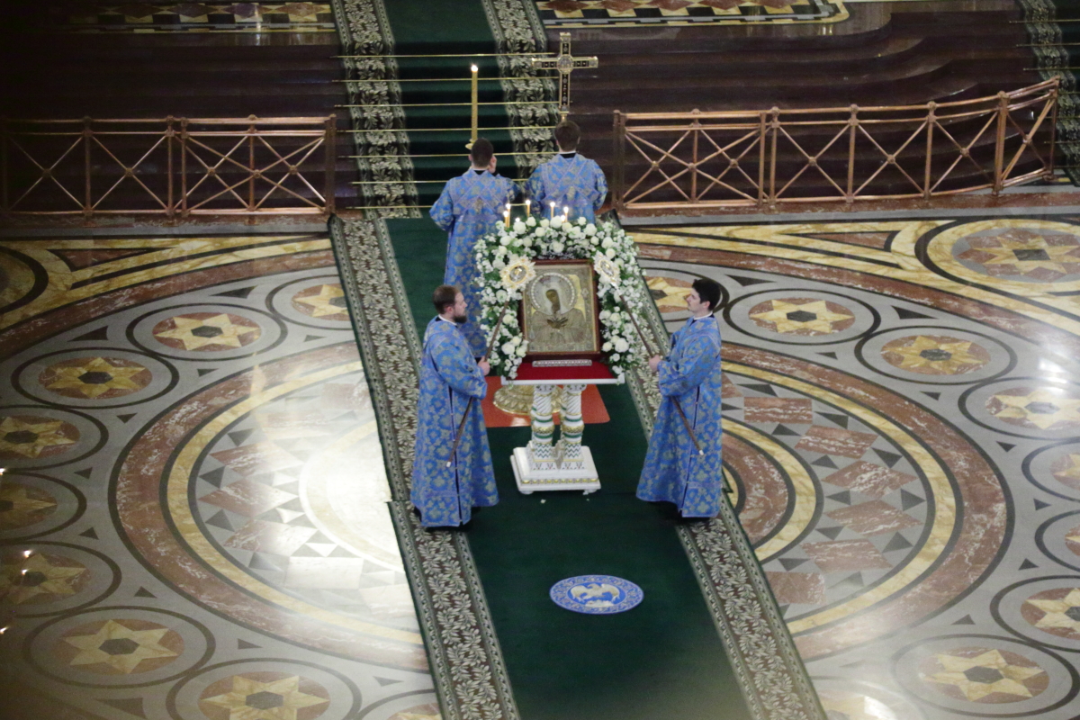 По благословению Святейшего Патриарха Кирилла митрополит Воскресенский Григорий, управляющий делами Московской Патриархии, первый викарий Патриарха Московского и всея Руси по городу Москве, перевез чтимый образ в алтарь Храма Христа Спасителя.