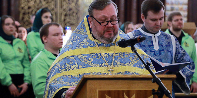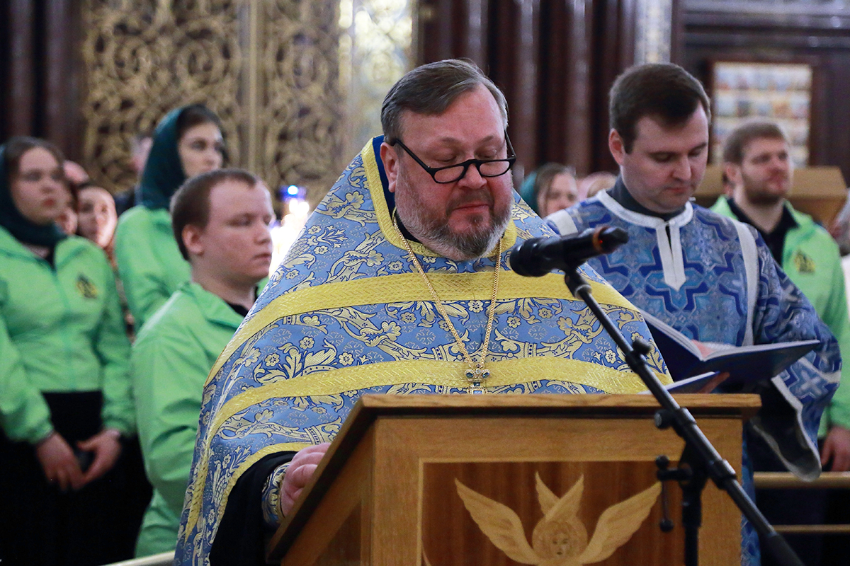 Богослужебные песнопения исполнили Патриарший и Камерный хоры Храма Христа Спасителя (регенты — Илья Толкачев и Сергей Сидоренко).