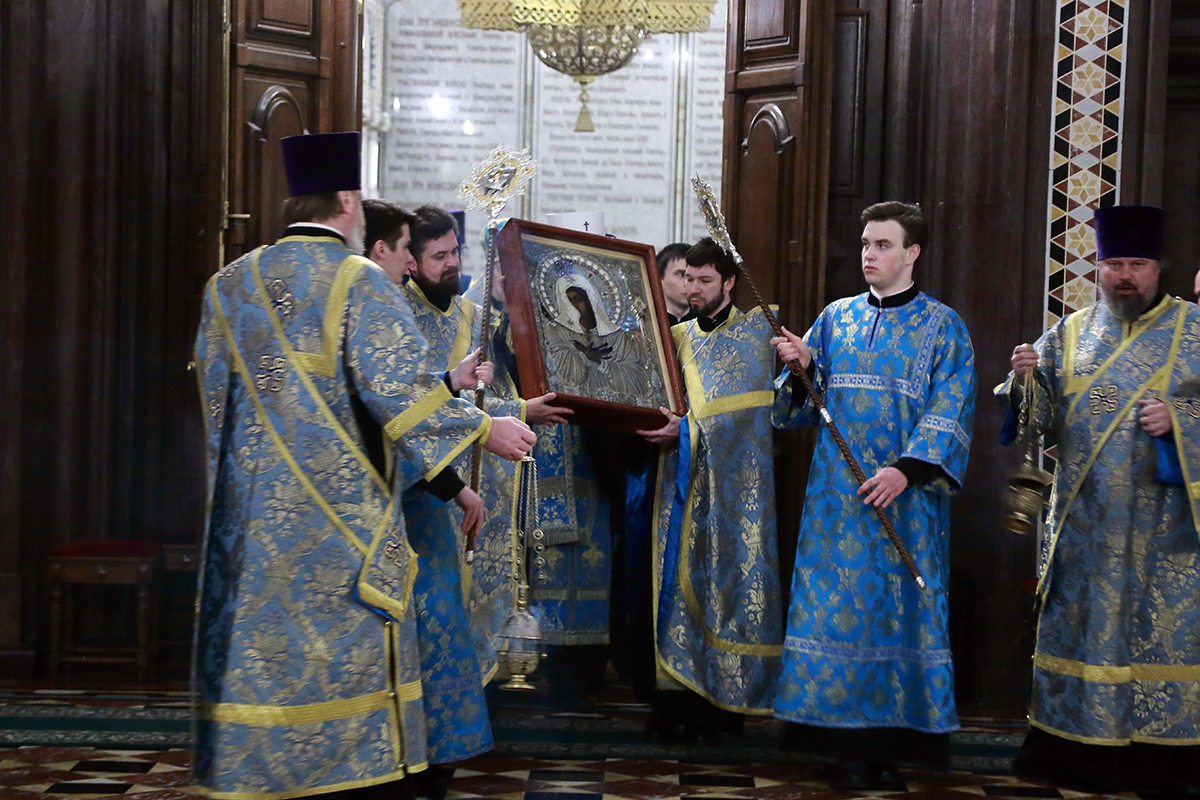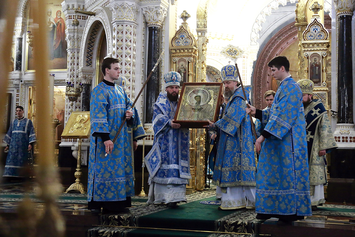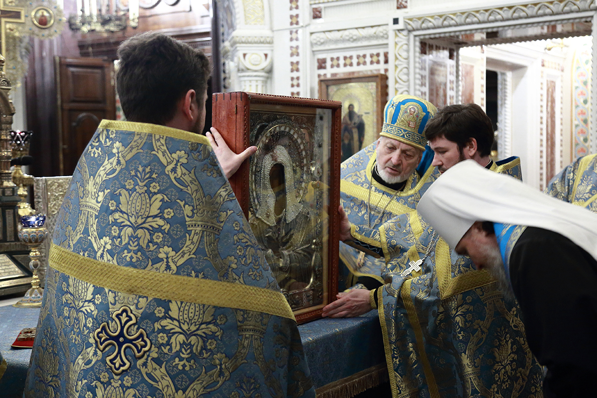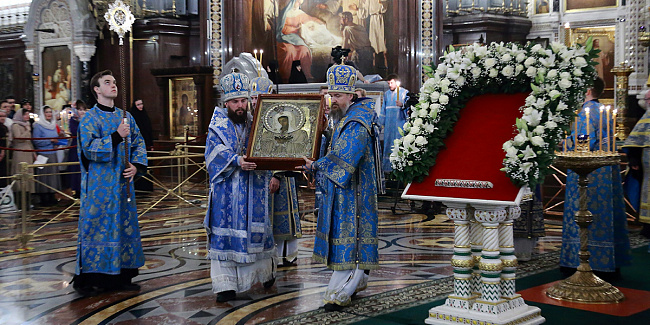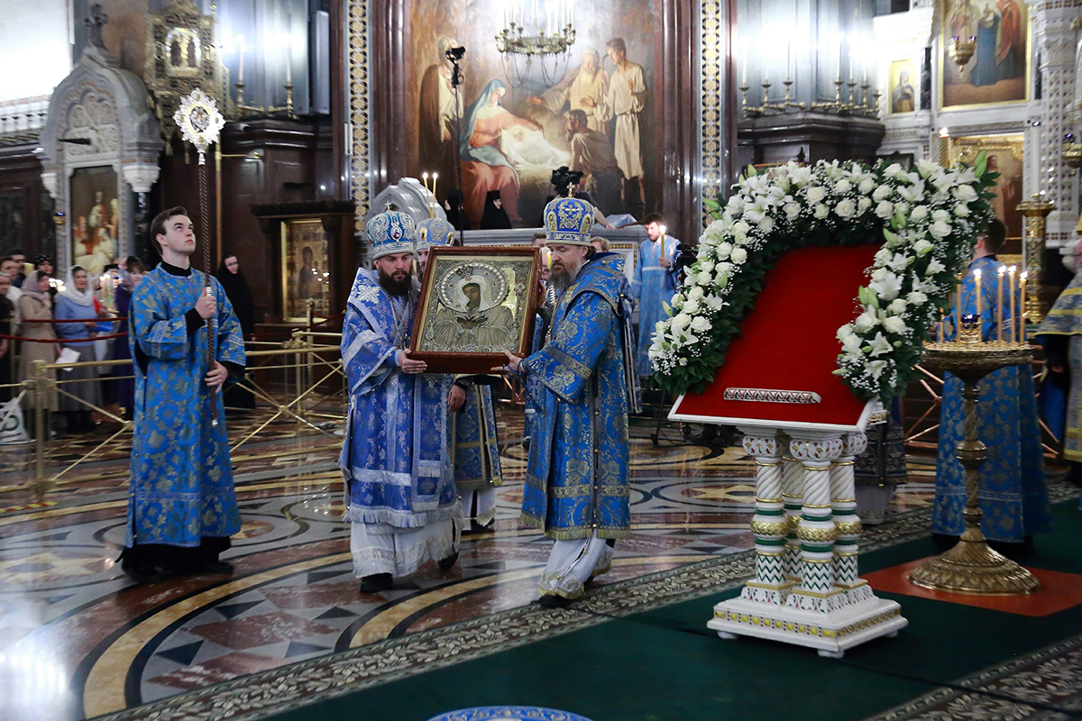По благословению Святейшего Патриарха Кирилла митрополит Воскресенский Григорий, управляющий делами Московской Патриархии, первый викарий Патриарха Московского и всея Руси по городу Москве, перевез чтимый образ в алтарь Храма Христа Спасителя.