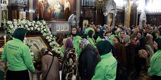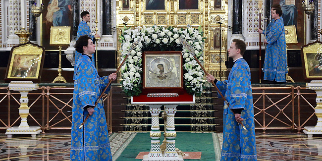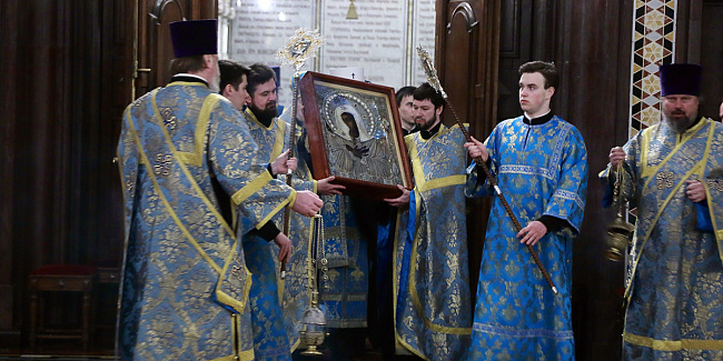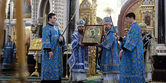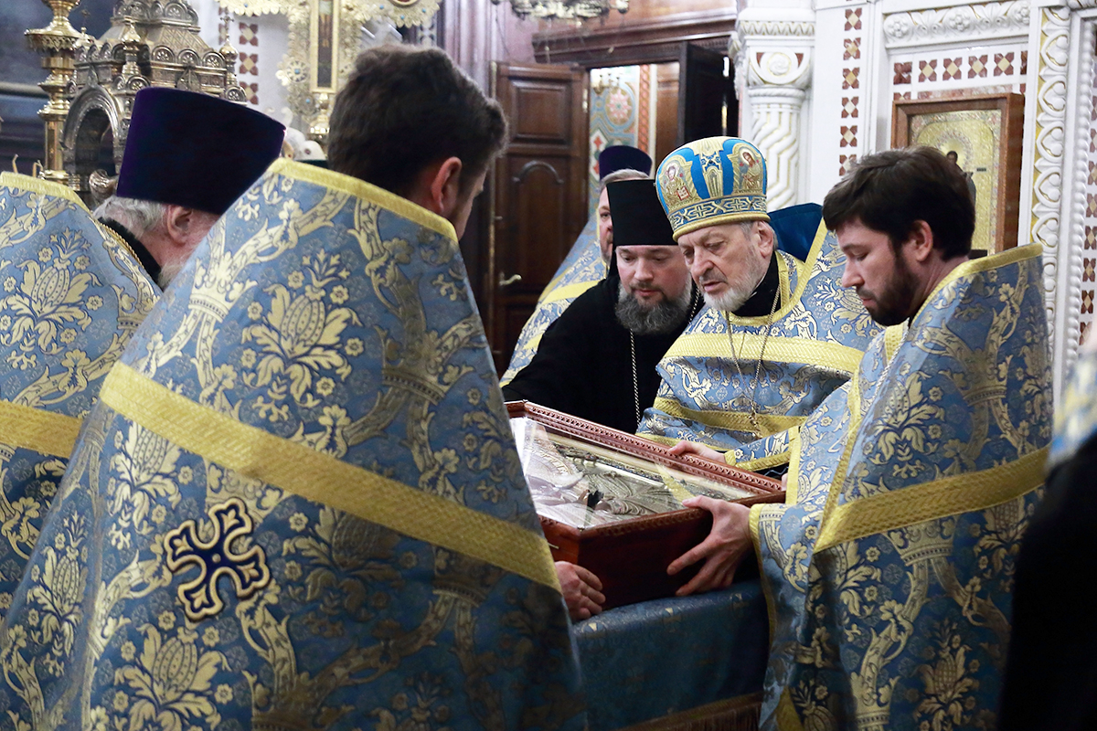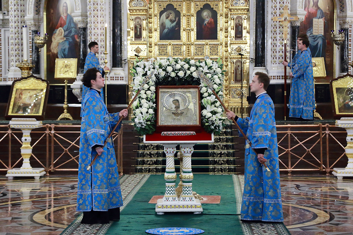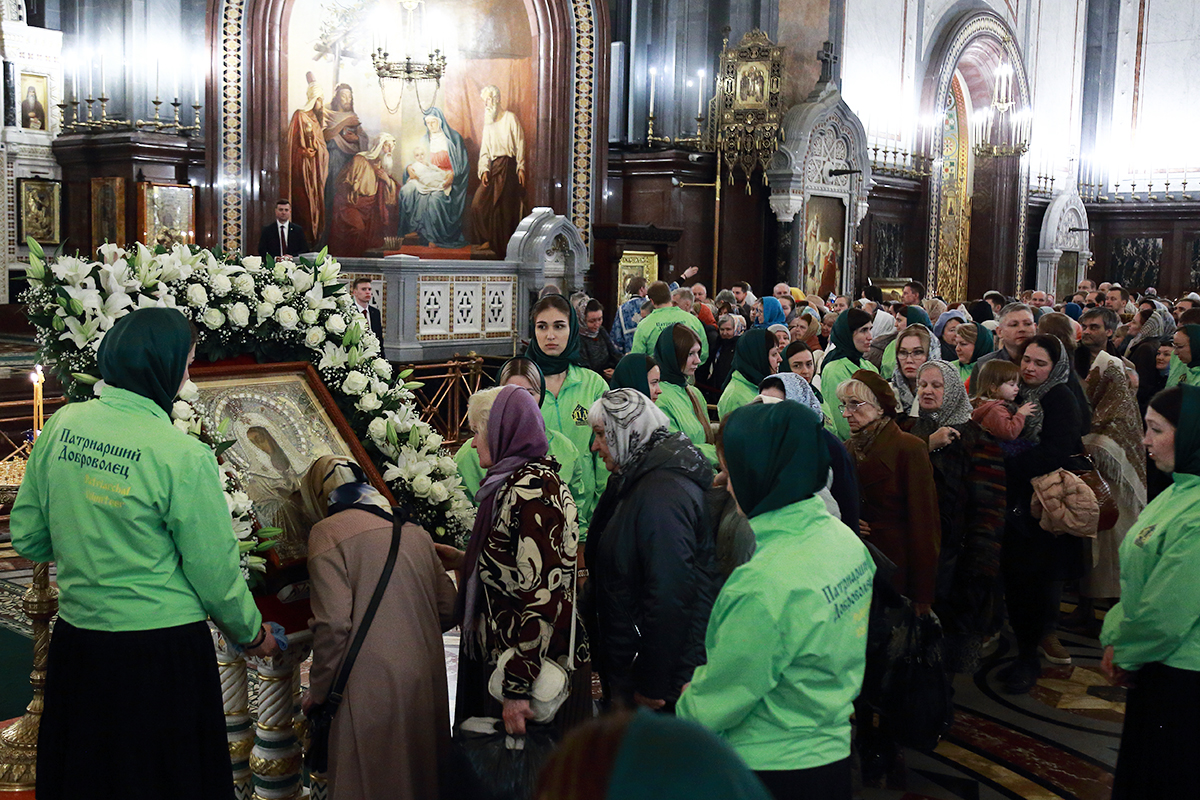 По благословению Святейшего Патриарха Кирилла митрополит Воскресенский Григорий, управляющий делами Московской Патриархии, первый викарий Патриарха Московского и всея Руси по городу Москве, перевез чтимый образ в алтарь Храма Христа Спасителя.