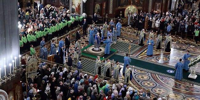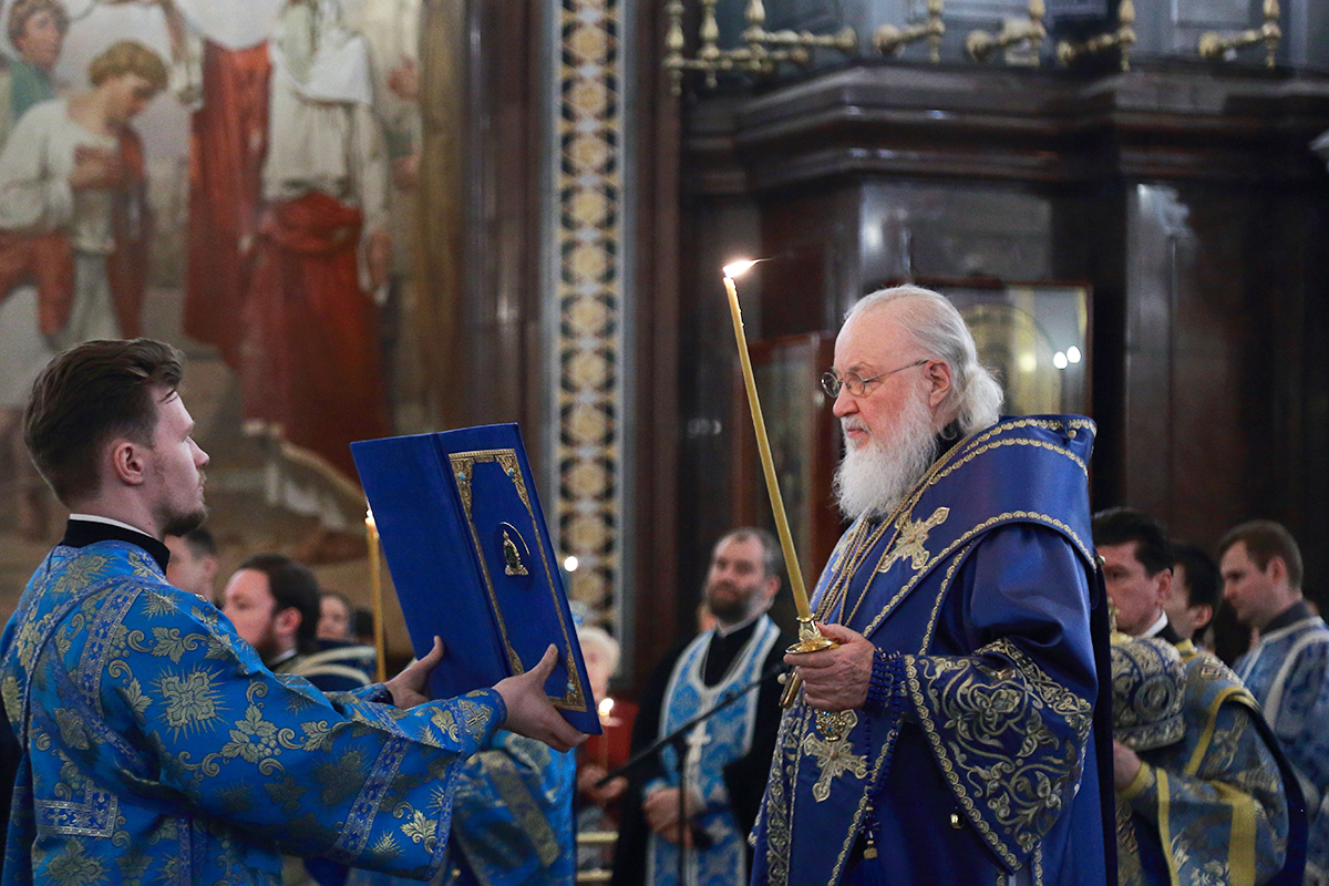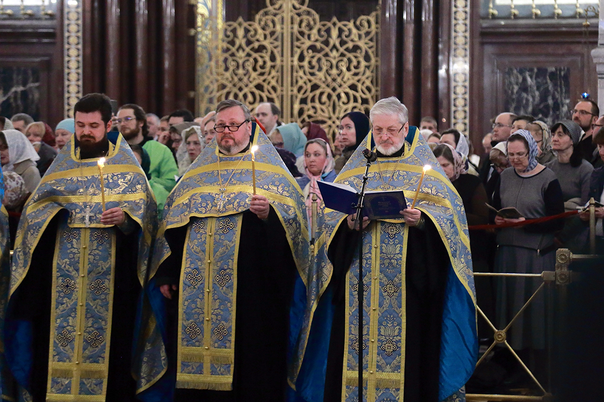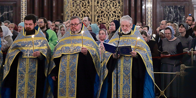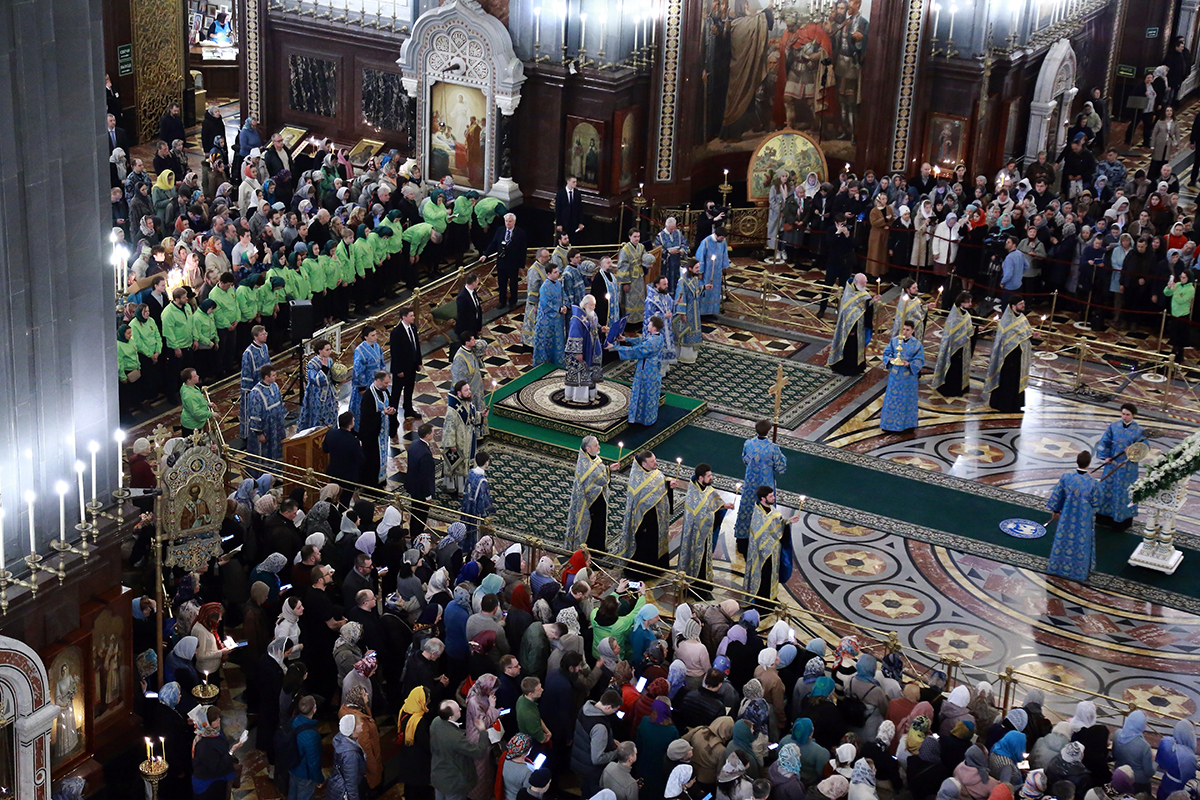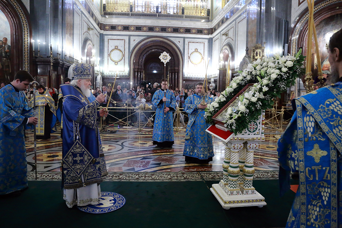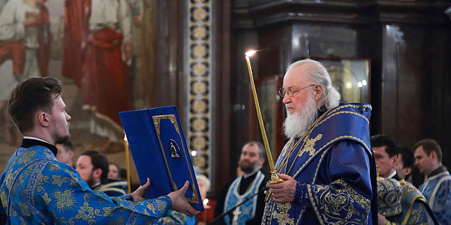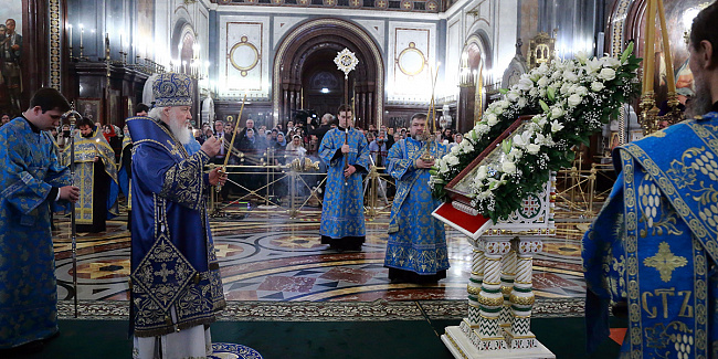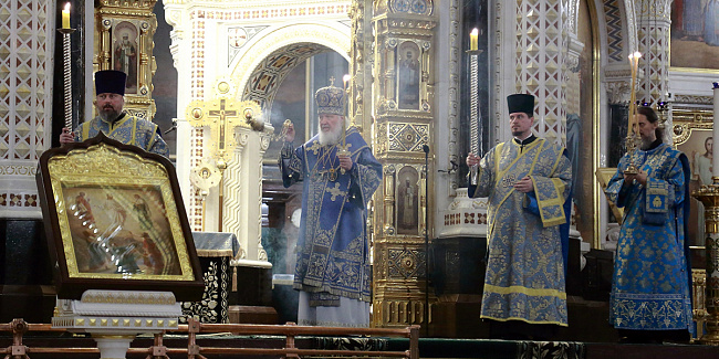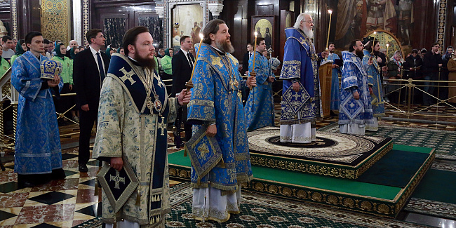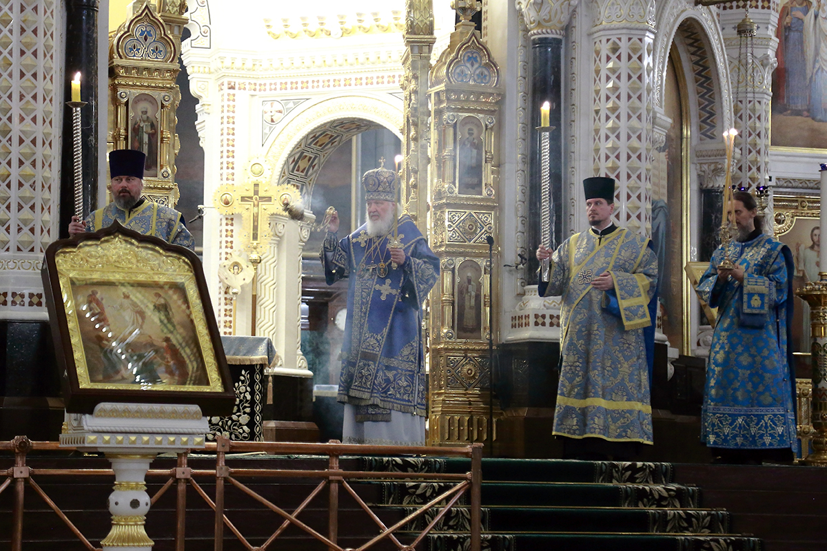 В канун Субботы Акафиста Святейший Патриарх Кирилл совершил утреню с чтением акафиста Пресвятой Богородице в Храме Христа Спасителя