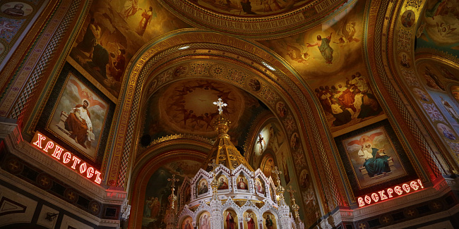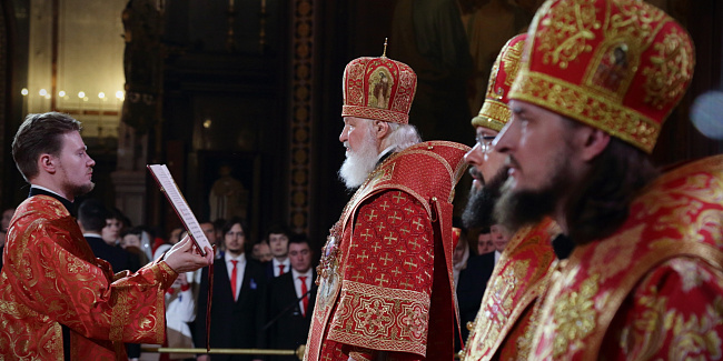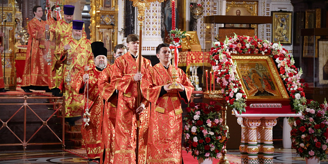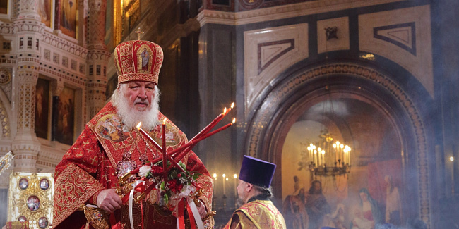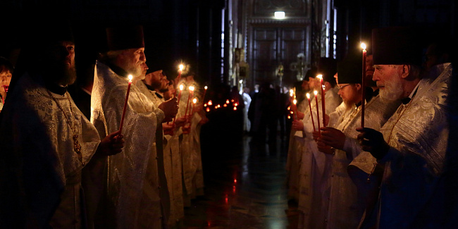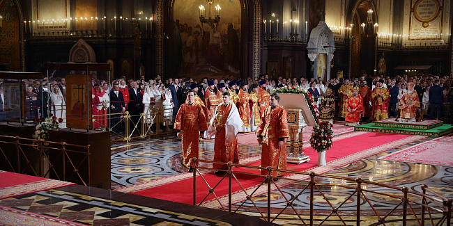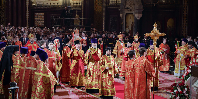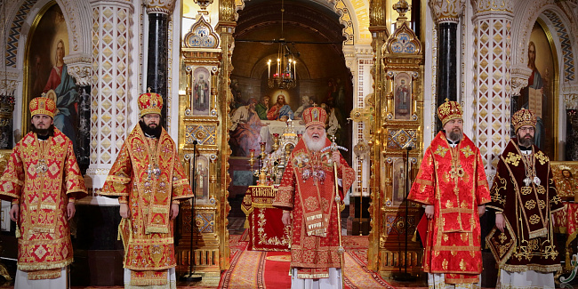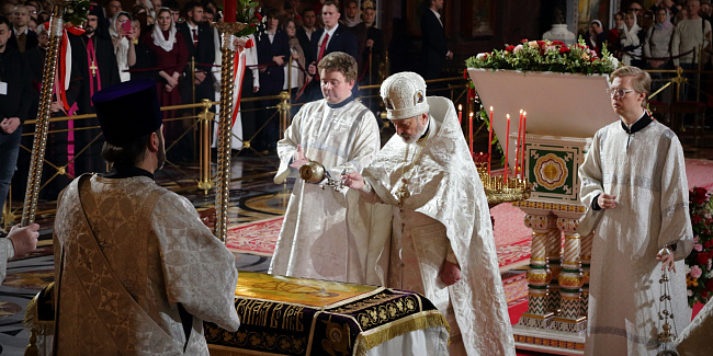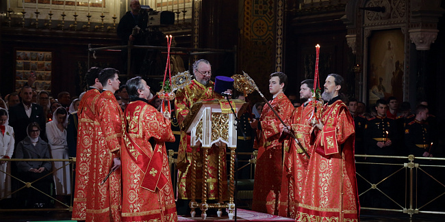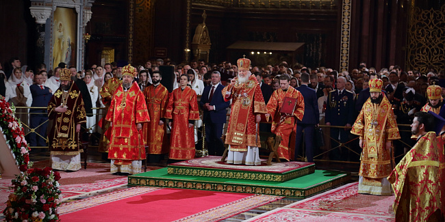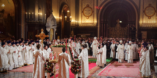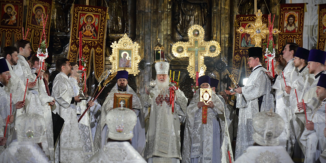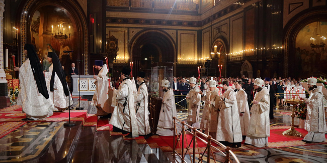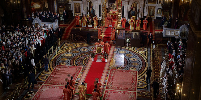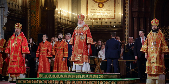 В праздник Светлого Христова Воскресения Предстоятель Русской Церкви возглавил торжественное богослужение в Храме Христа Спасителя