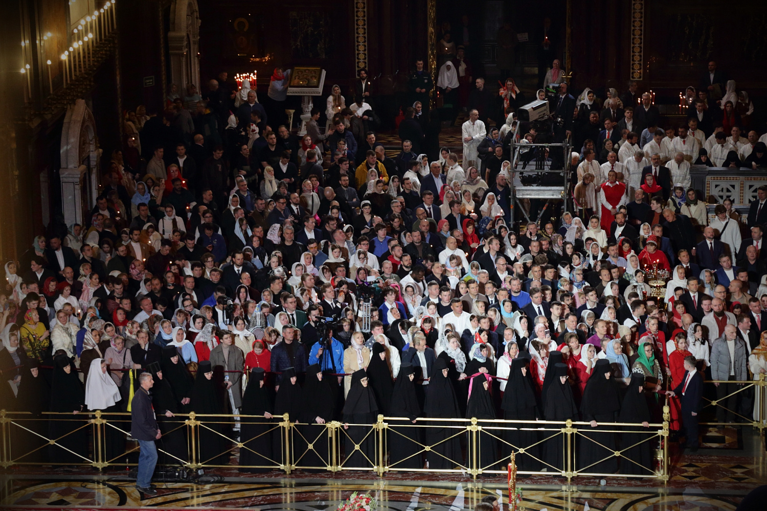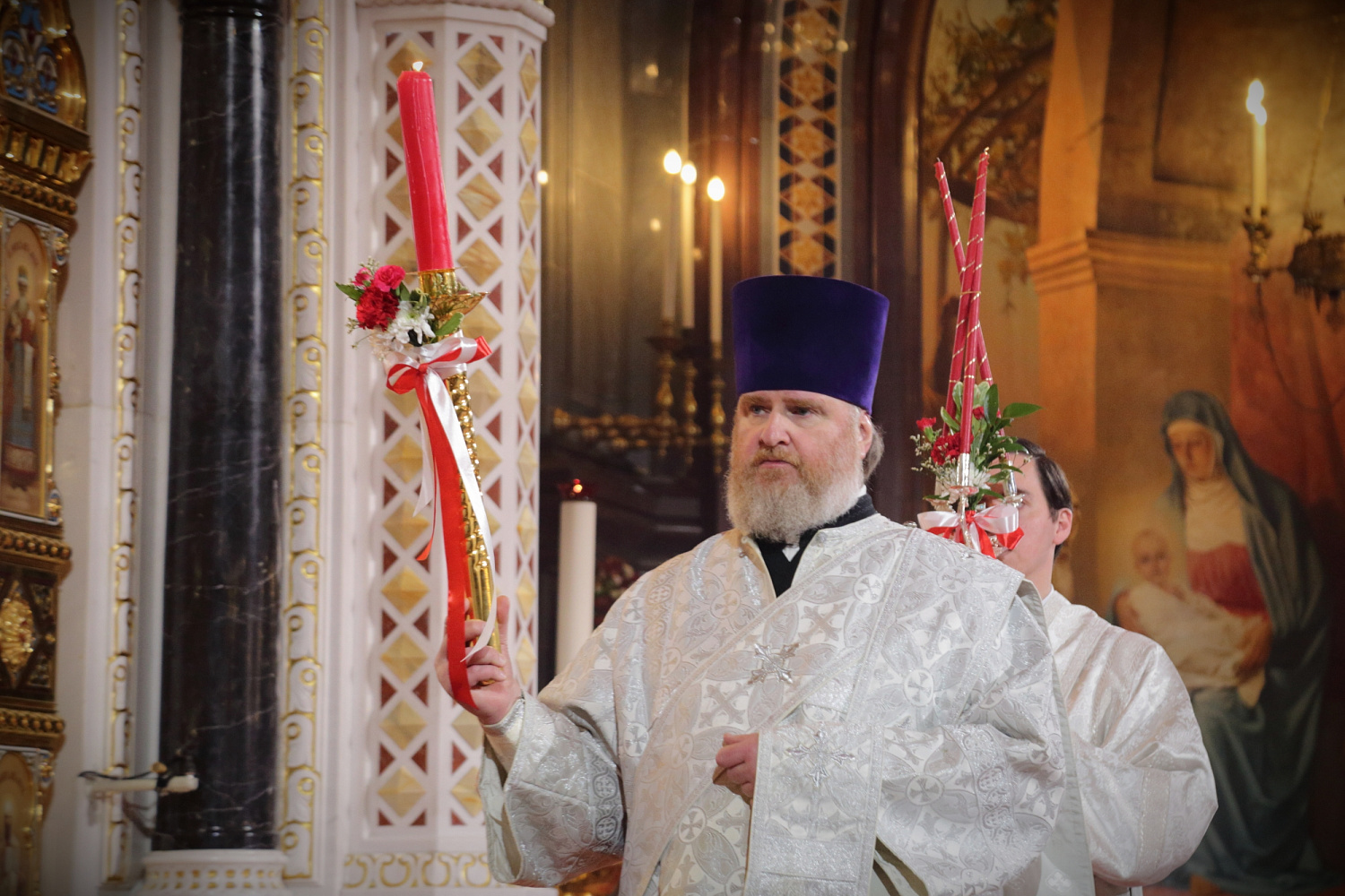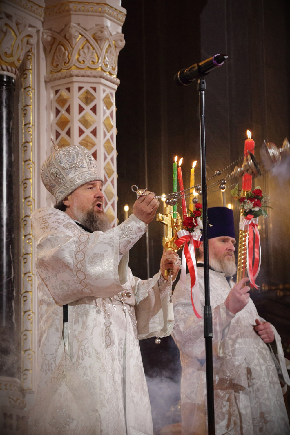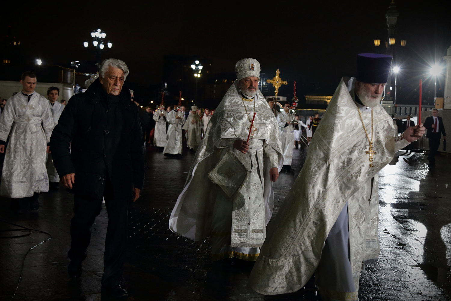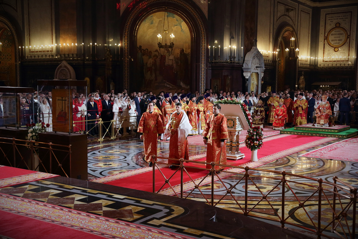 Перед началом крестного хода В.И. Якунин на солее Храма Христа Спасителя передал Благодатный огонь Предстоятелю Русской Православной Церкви.