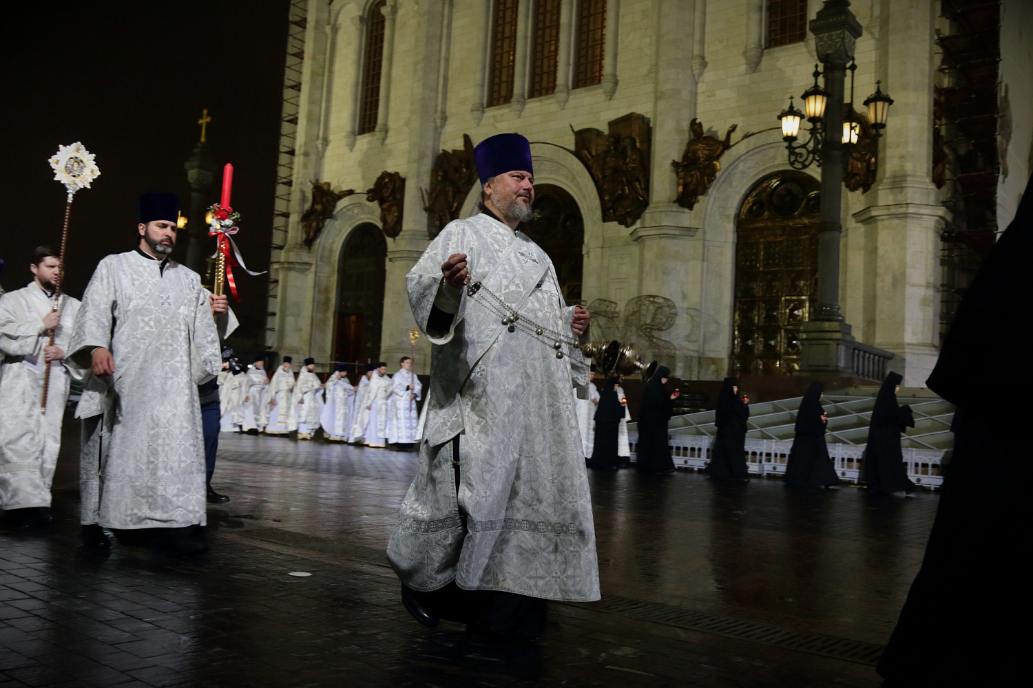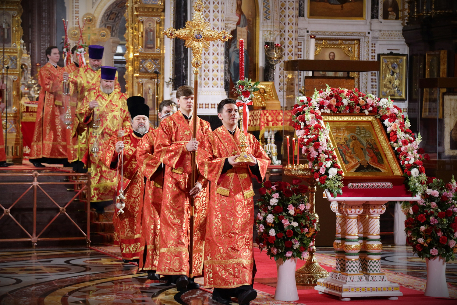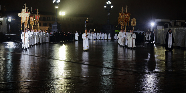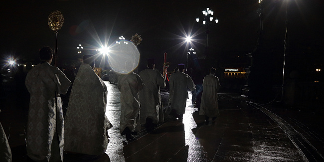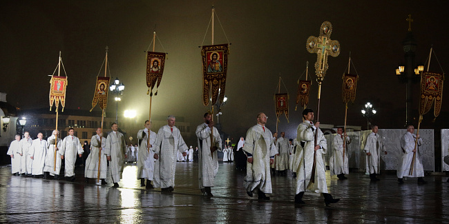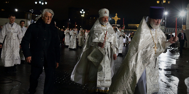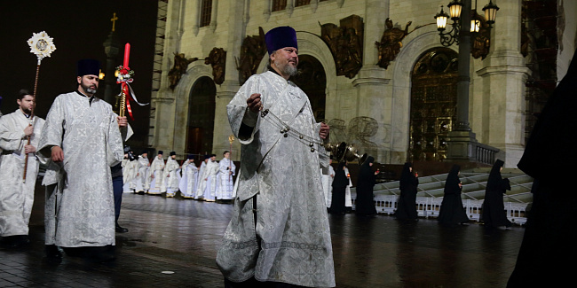 Под пение стихиры «Воскресение Твое, Христе Спасе» был совершен крестный ход вокруг Храма Христа Спасителя.