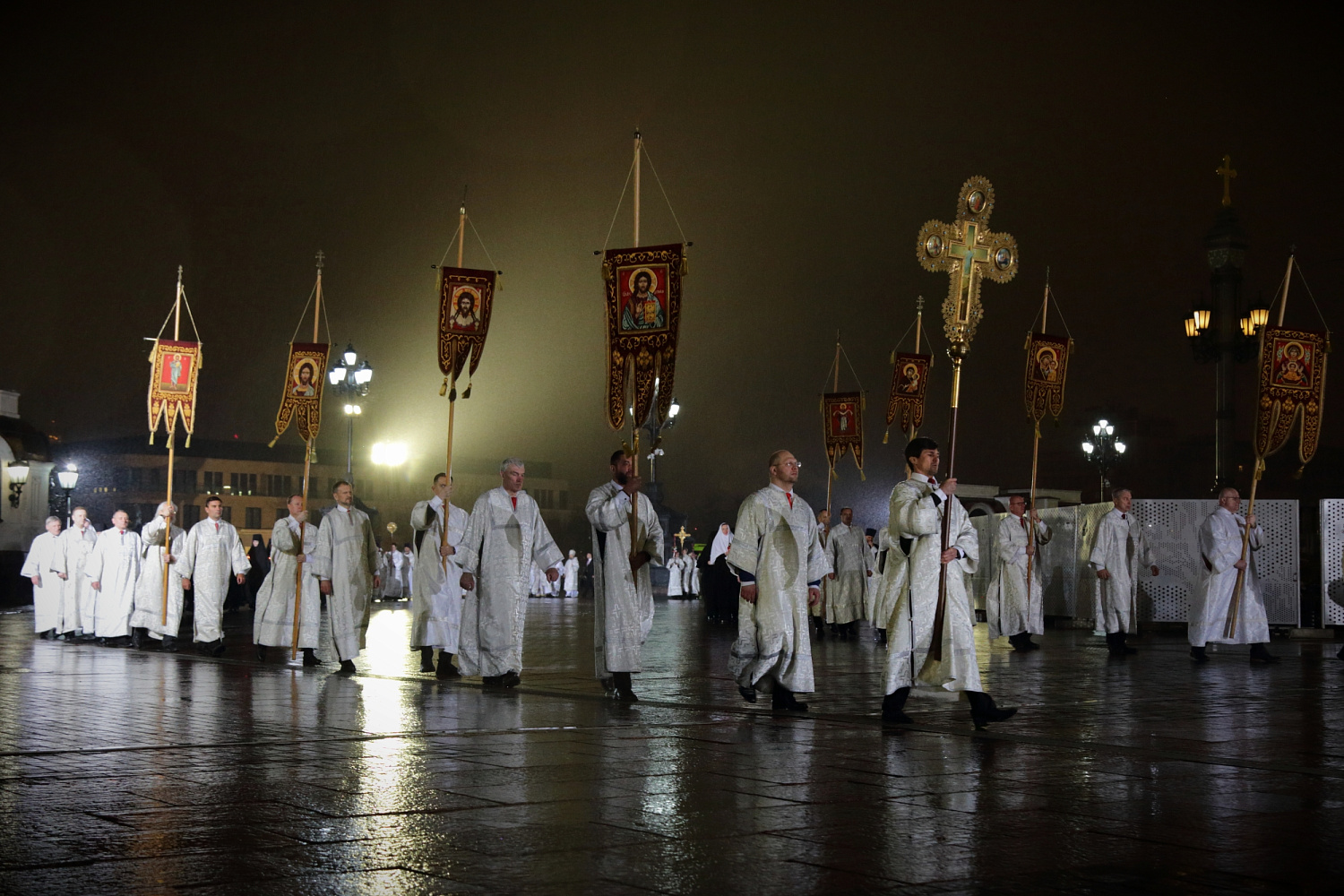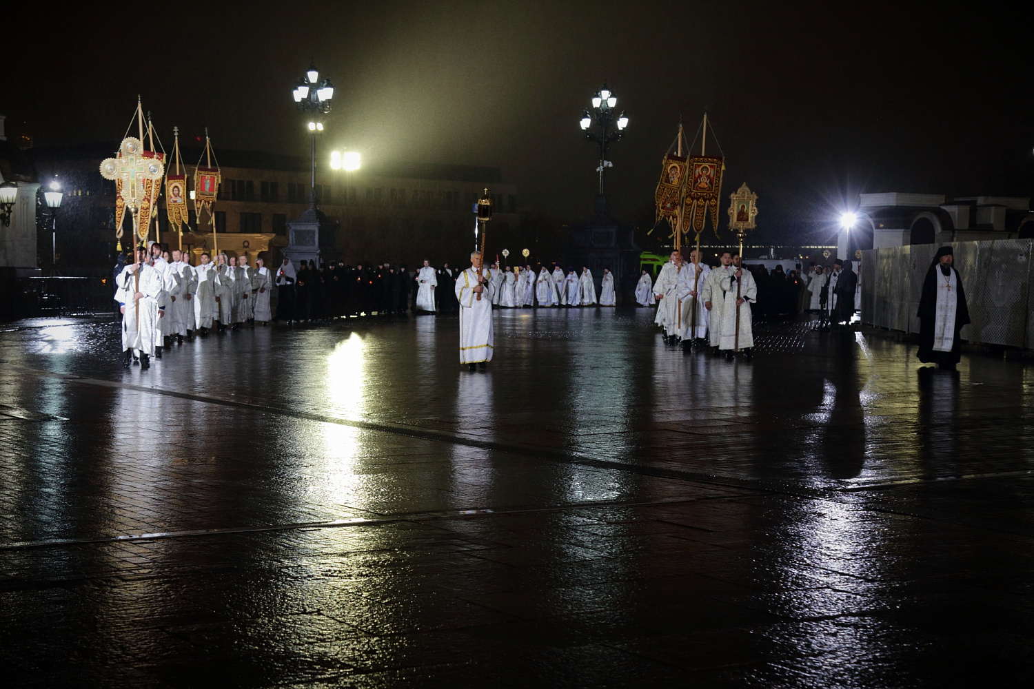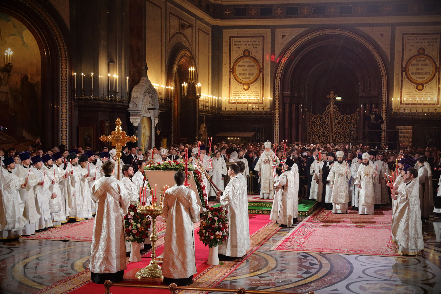 Под пение стихиры «Воскресение Твое, Христе Спасе» был совершен крестный ход вокруг Храма Христа Спасителя.