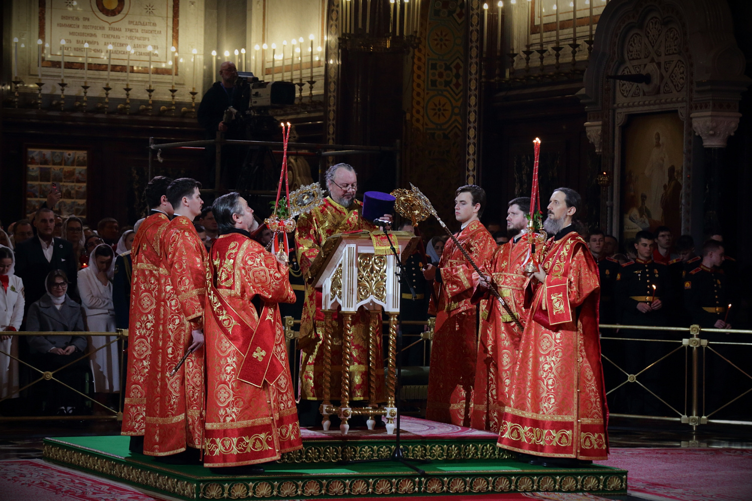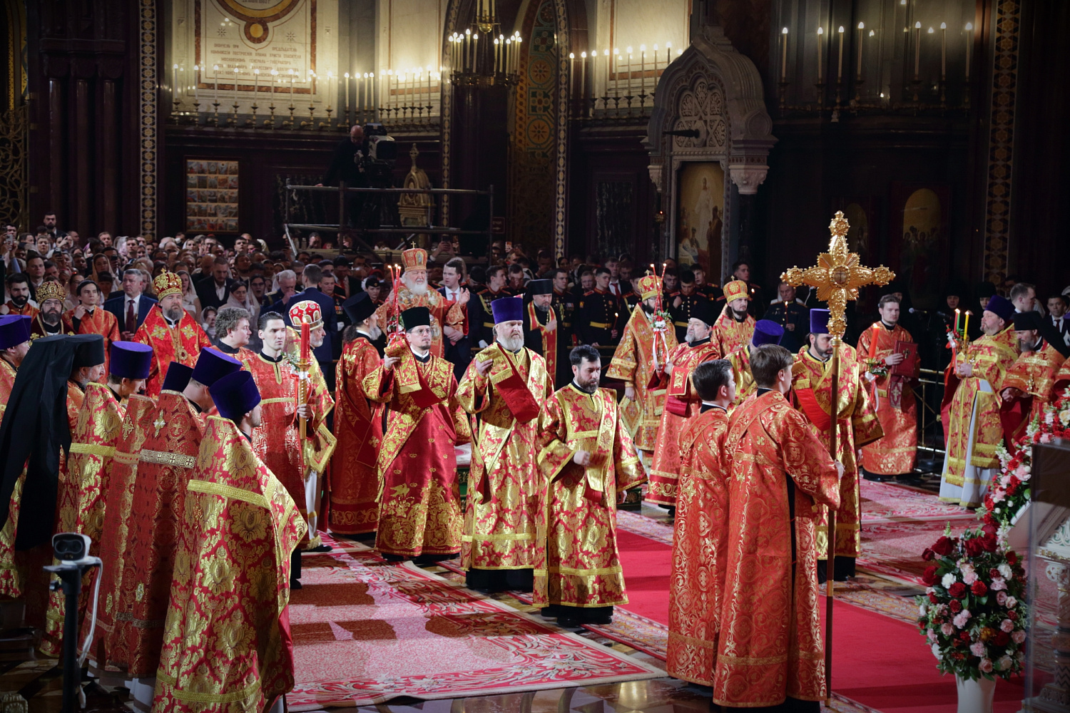 В ночь с 11 на 12 апреля 2026 года в Кафедральном соборном Храме Христа Спасителя Святейший Патриарх Московский и всея Руси Кирилл совершил Пасхальные богослужения — полунощницу, крестный ход, Пасхальную заутреню и Божественную литургию святителя Иоанна Златоуста.