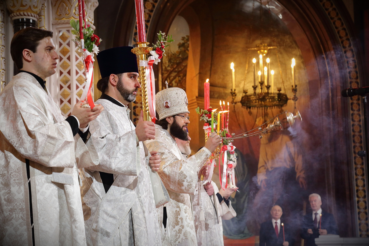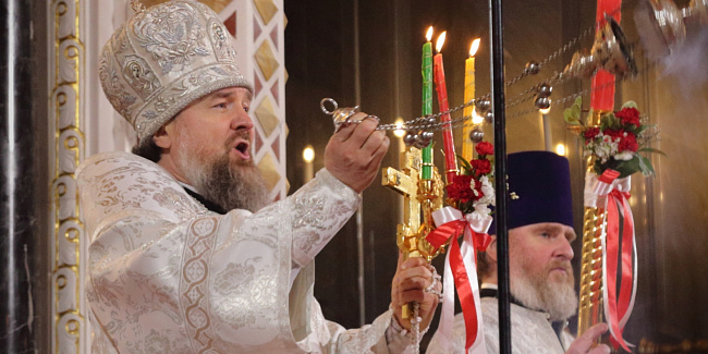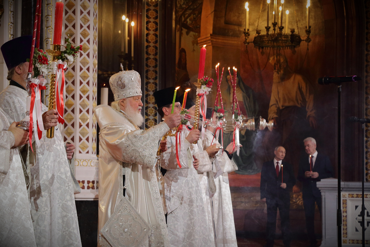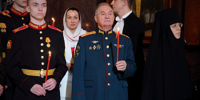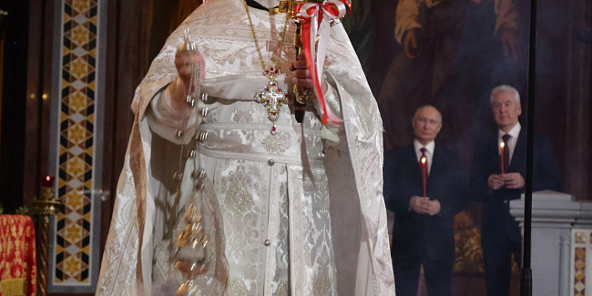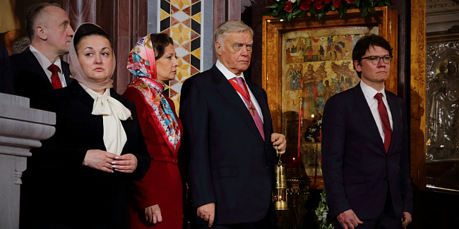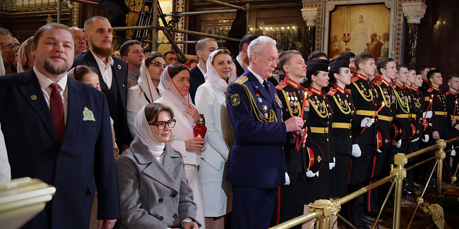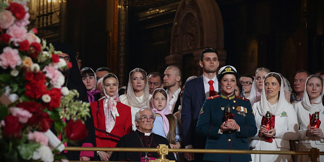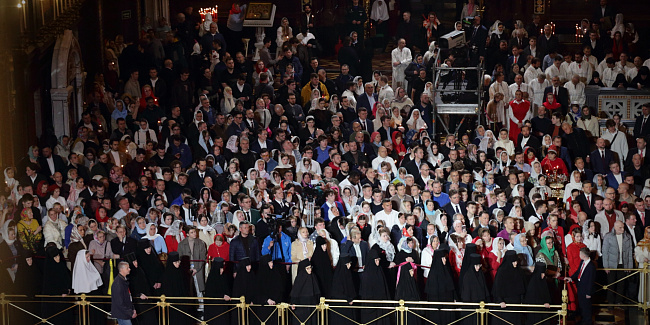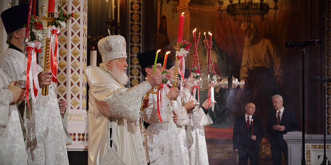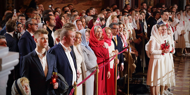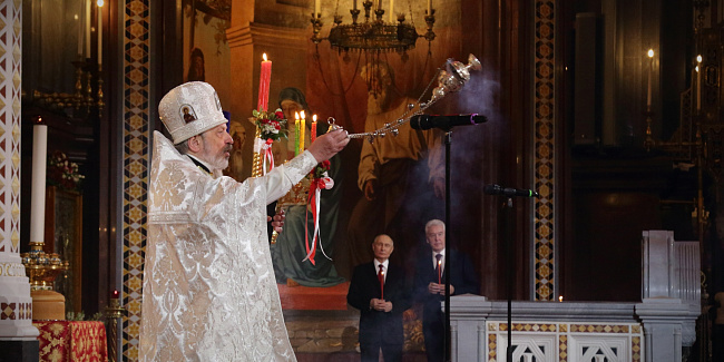 Пасхальное богослужение в Храме Христа Спасителя посетили Президент Российской Федерации В.В. Путин и мэр г. Москвы С.С. Собянин.
