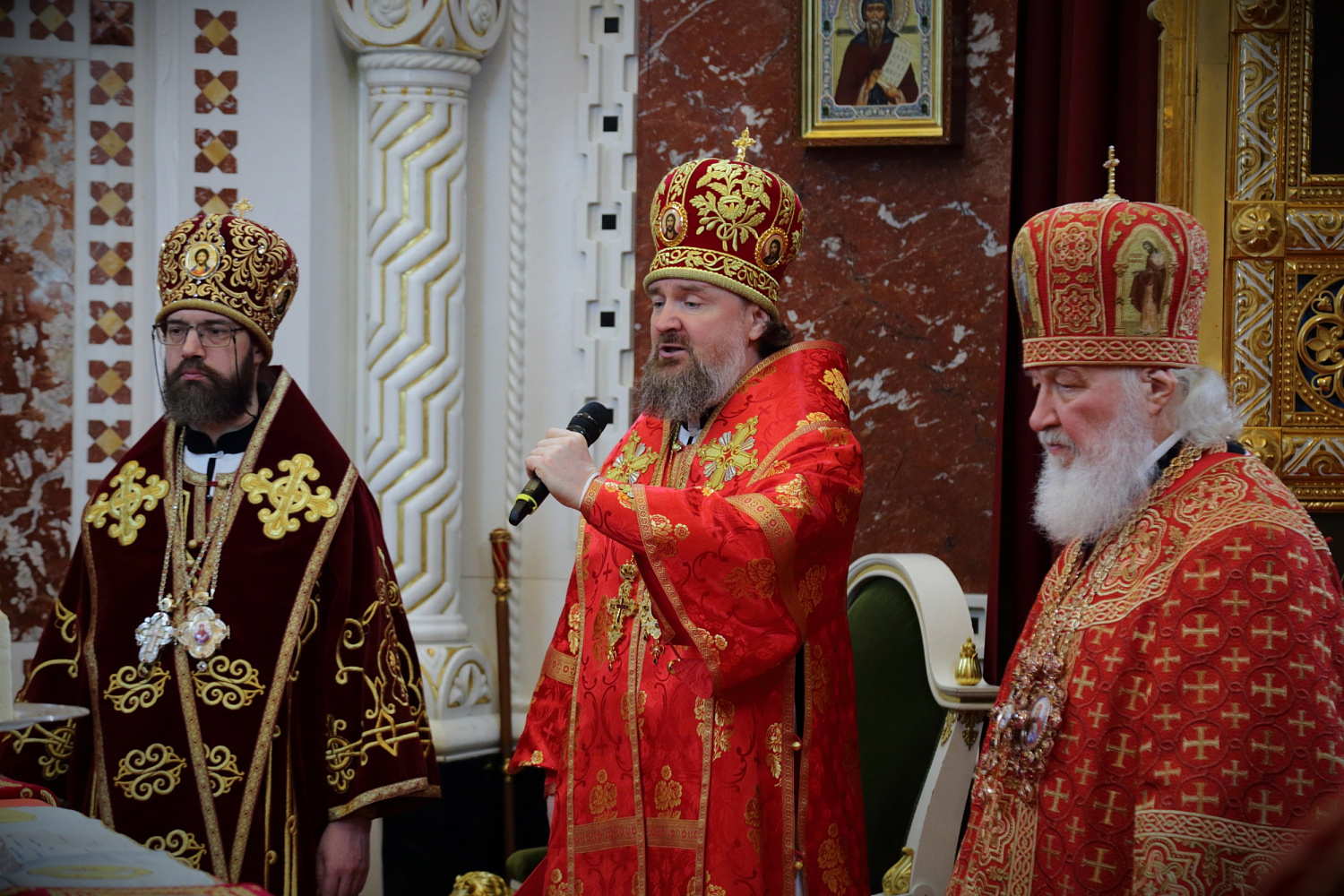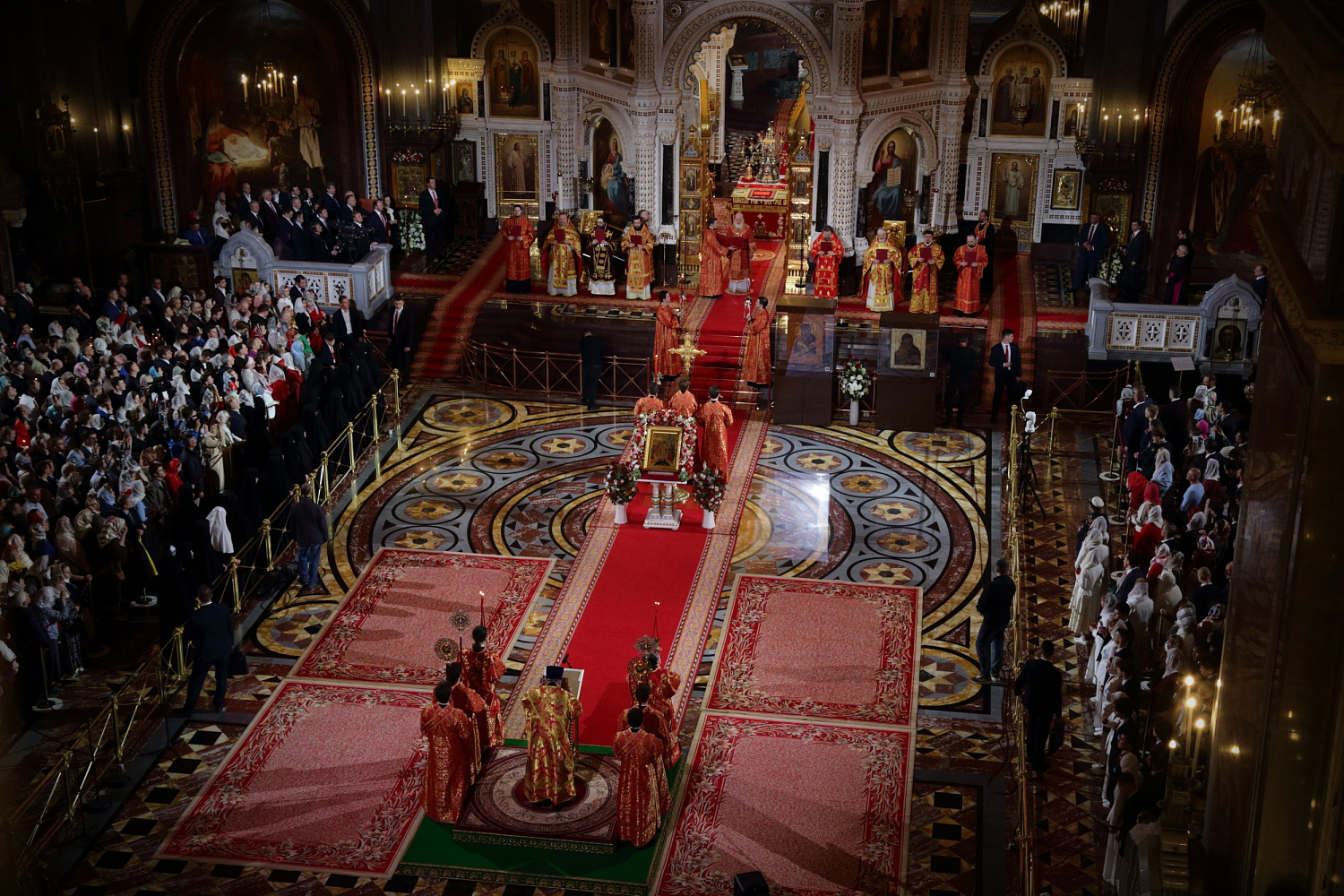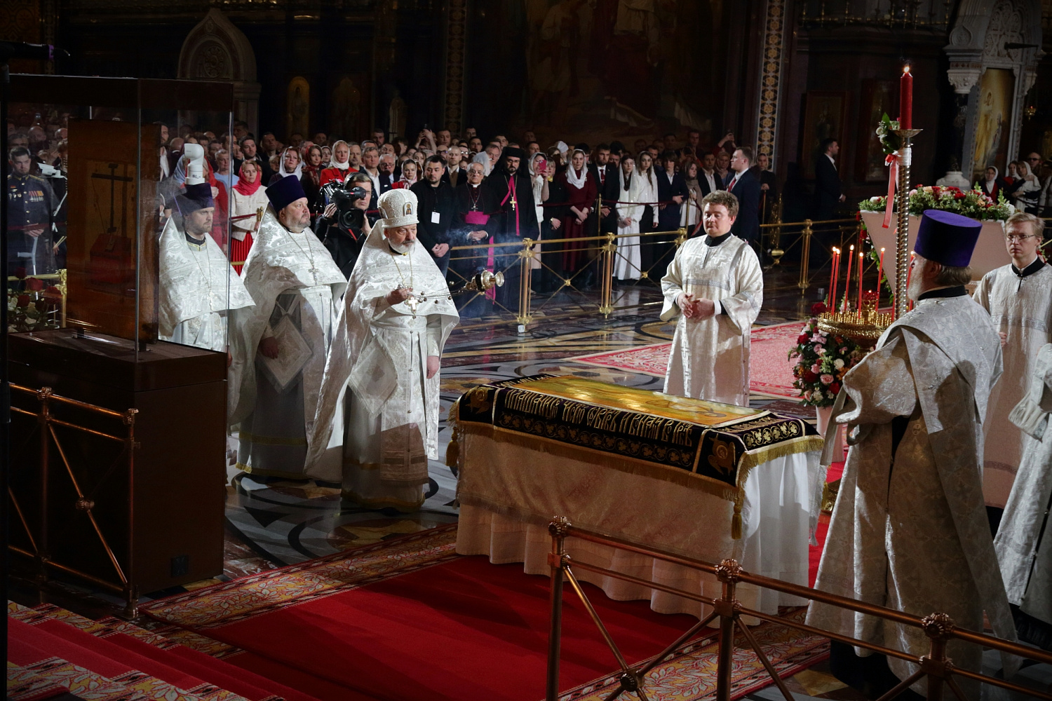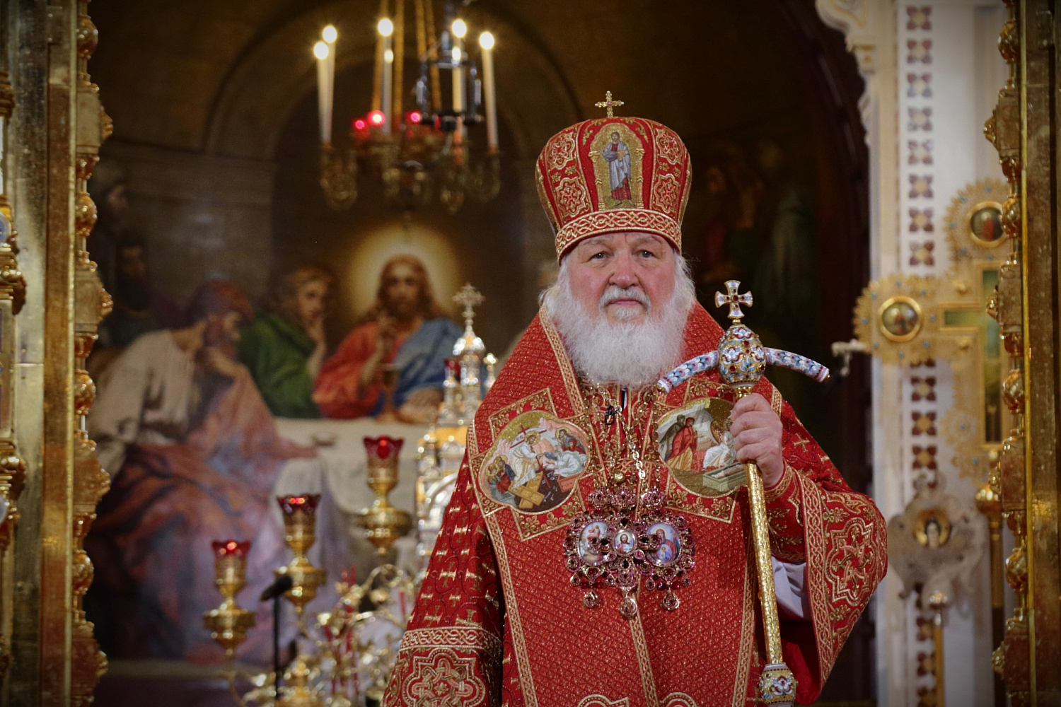 Затем Святейший Владыка рассказал о состоявшейся передаче Церкви чудотворных Владимирской и Донской икон Божией Матери: «В преддверии праздника Входа Господня в Иерусалим совершилось событие исторического значения. При содействии Президента Российской Федерации Владимира Владимировича Путина, присутствующего сегодня вместе с нами на Пасхальном богослужении, состоялась передача Русской Православной Церкви из Государственной Третьяковской галереи великих святынь — наиболее почитаемых на Руси чудотворных икон — Владимирской и Донской икон Божией Матери. Две самые почитаемые иконы возвращены Церкви и сегодня они находятся здесь, в кафедральном соборном Храме Христа Спасителя города Москвы».