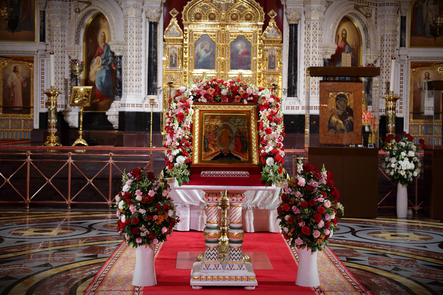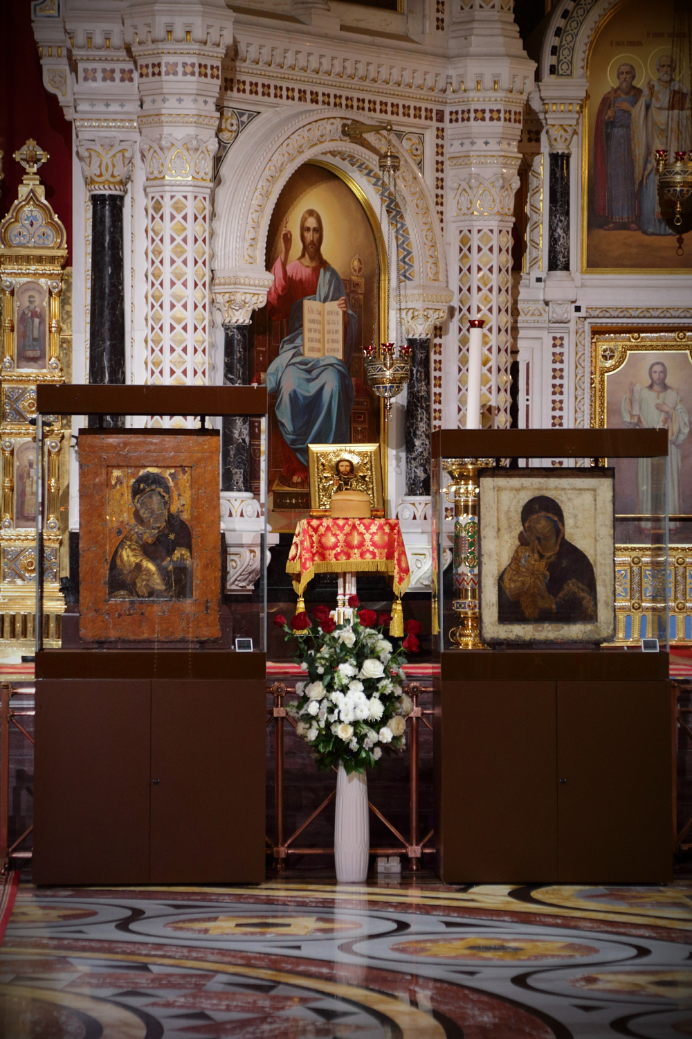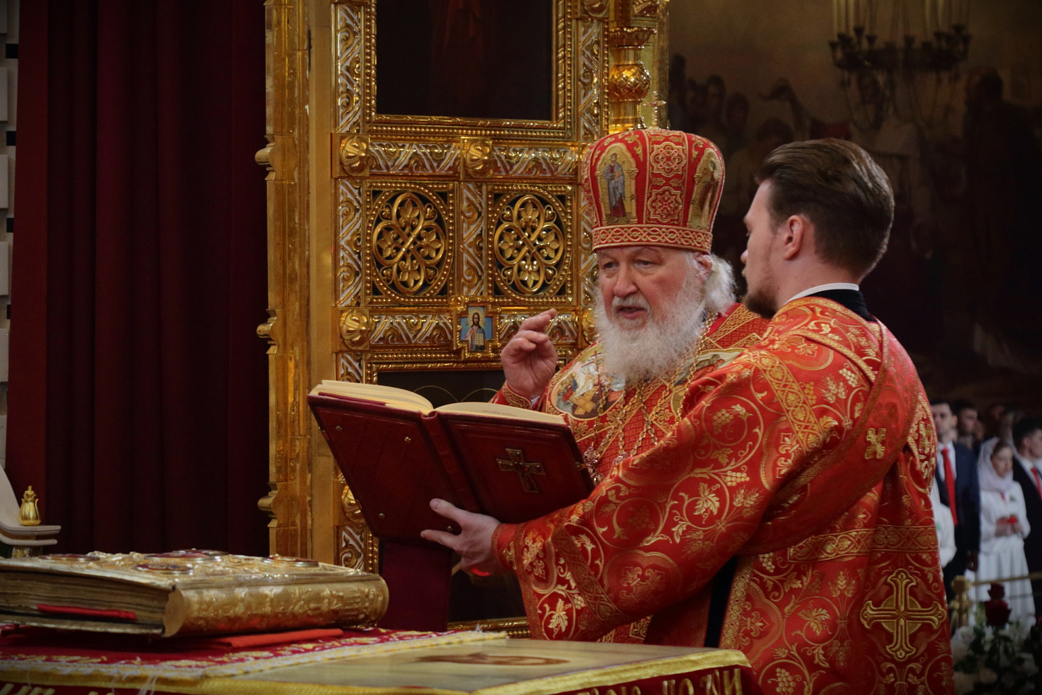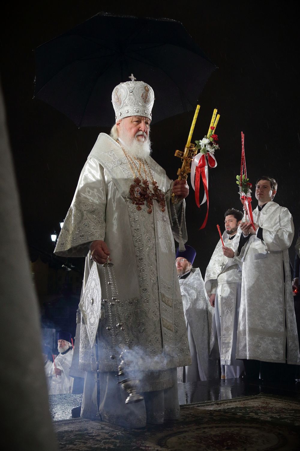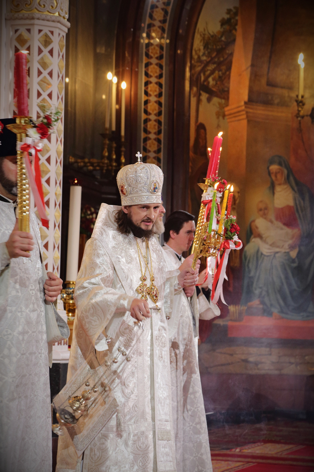 Затем Святейший Владыка рассказал о состоявшейся передаче Церкви чудотворных Владимирской и Донской икон Божией Матери: «В преддверии праздника Входа Господня в Иерусалим совершилось событие исторического значения. При содействии Президента Российской Федерации Владимира Владимировича Путина, присутствующего сегодня вместе с нами на Пасхальном богослужении, состоялась передача Русской Православной Церкви из Государственной Третьяковской галереи великих святынь — наиболее почитаемых на Руси чудотворных икон — Владимирской и Донской икон Божией Матери. Две самые почитаемые иконы возвращены Церкви и сегодня они находятся здесь, в кафедральном соборном Храме Христа Спасителя города Москвы».