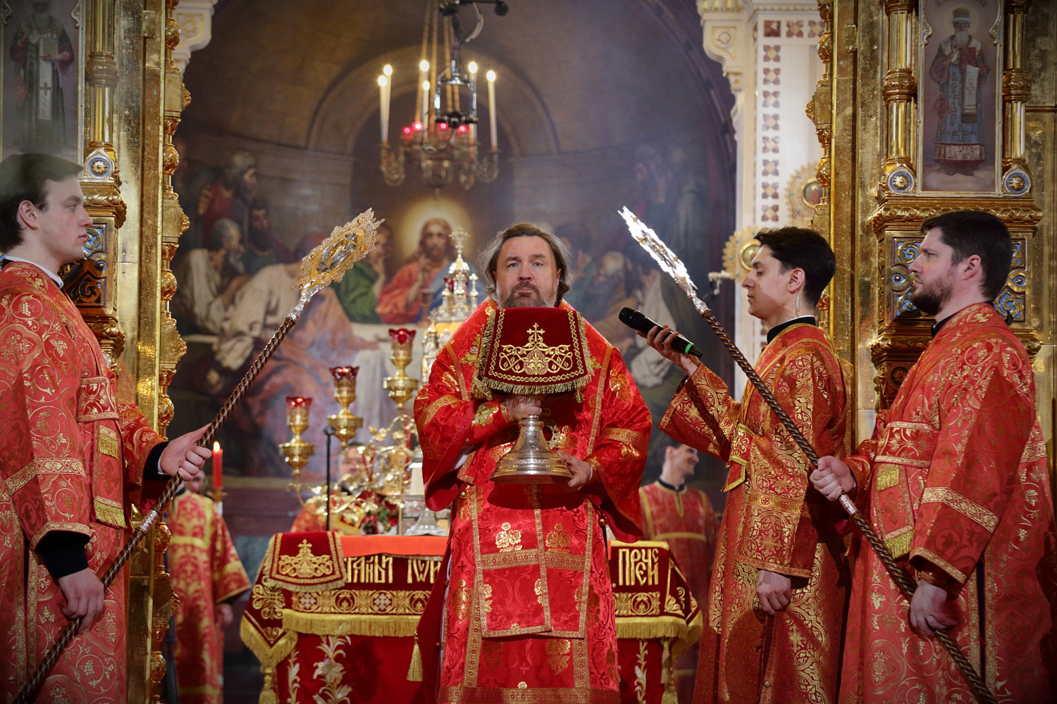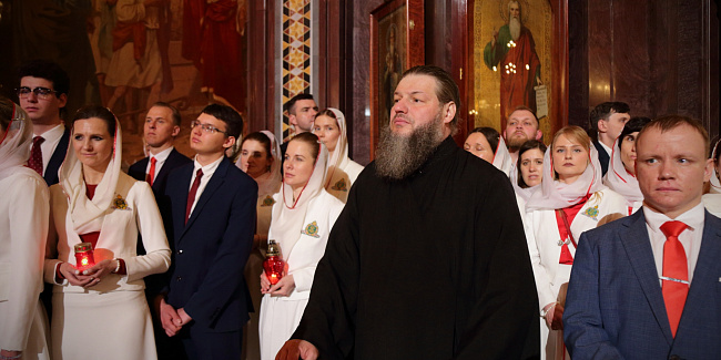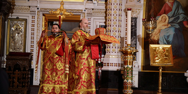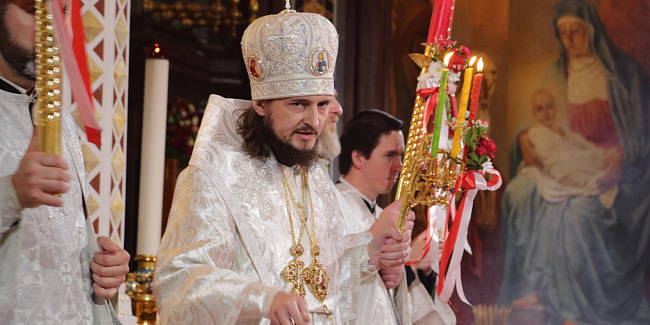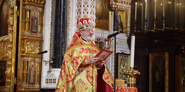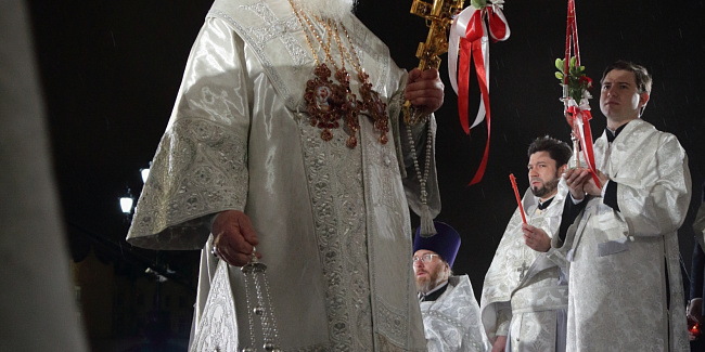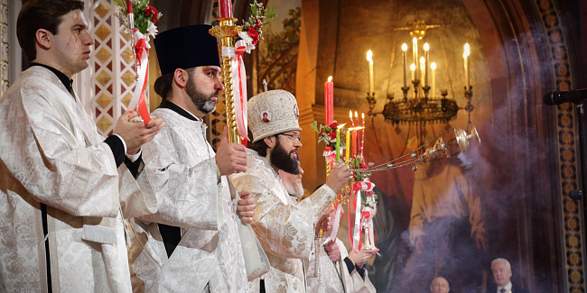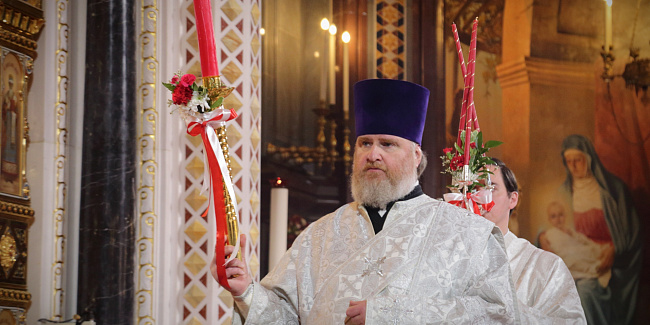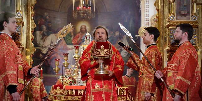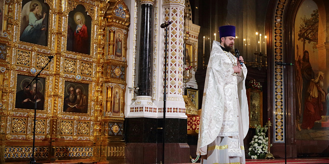 По запричастном стихе протоиерей Михаил Рязанцев огласил Пасхальное послание Святейшего Патриарха Кирилла архипастырям, пастырям, монашествующим и всем верным чадам Русской Православной Церкви.