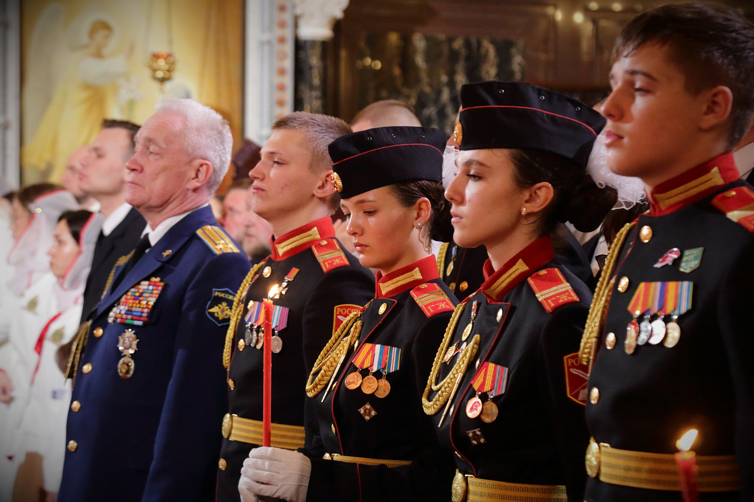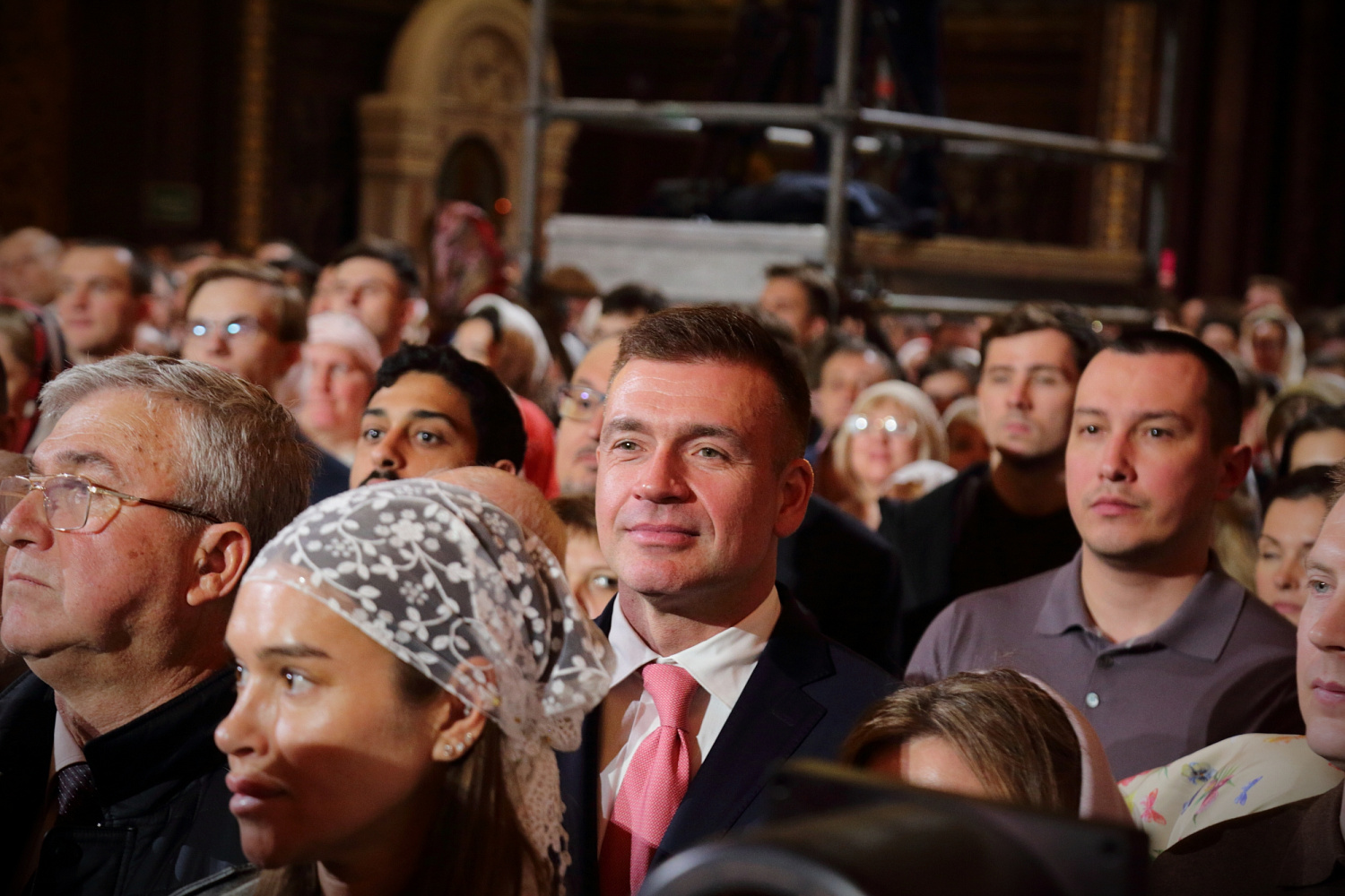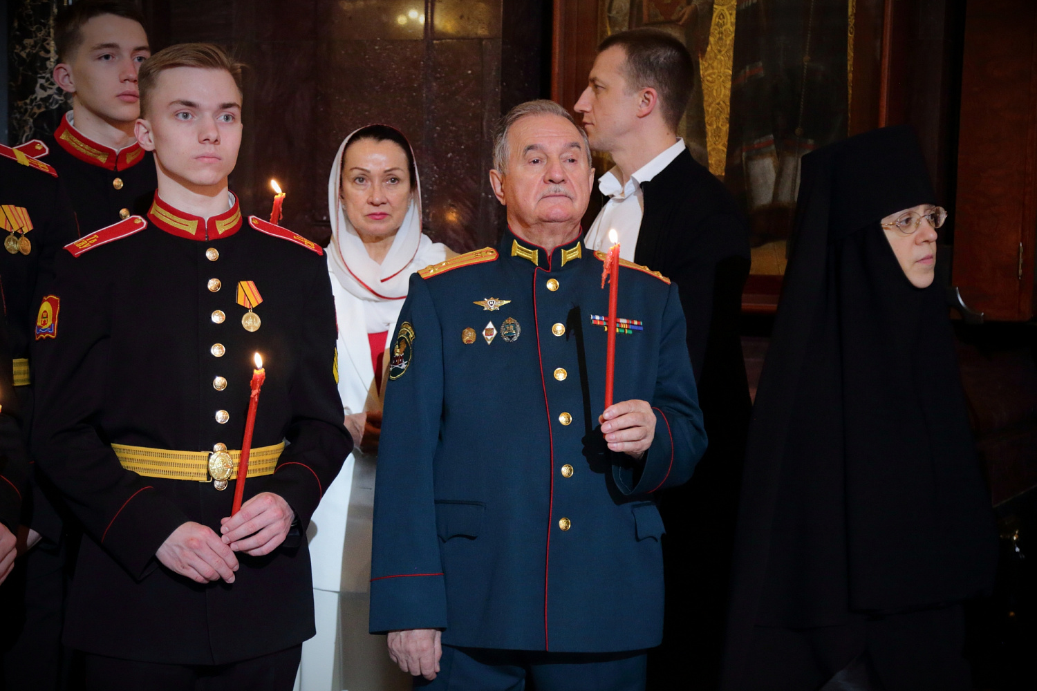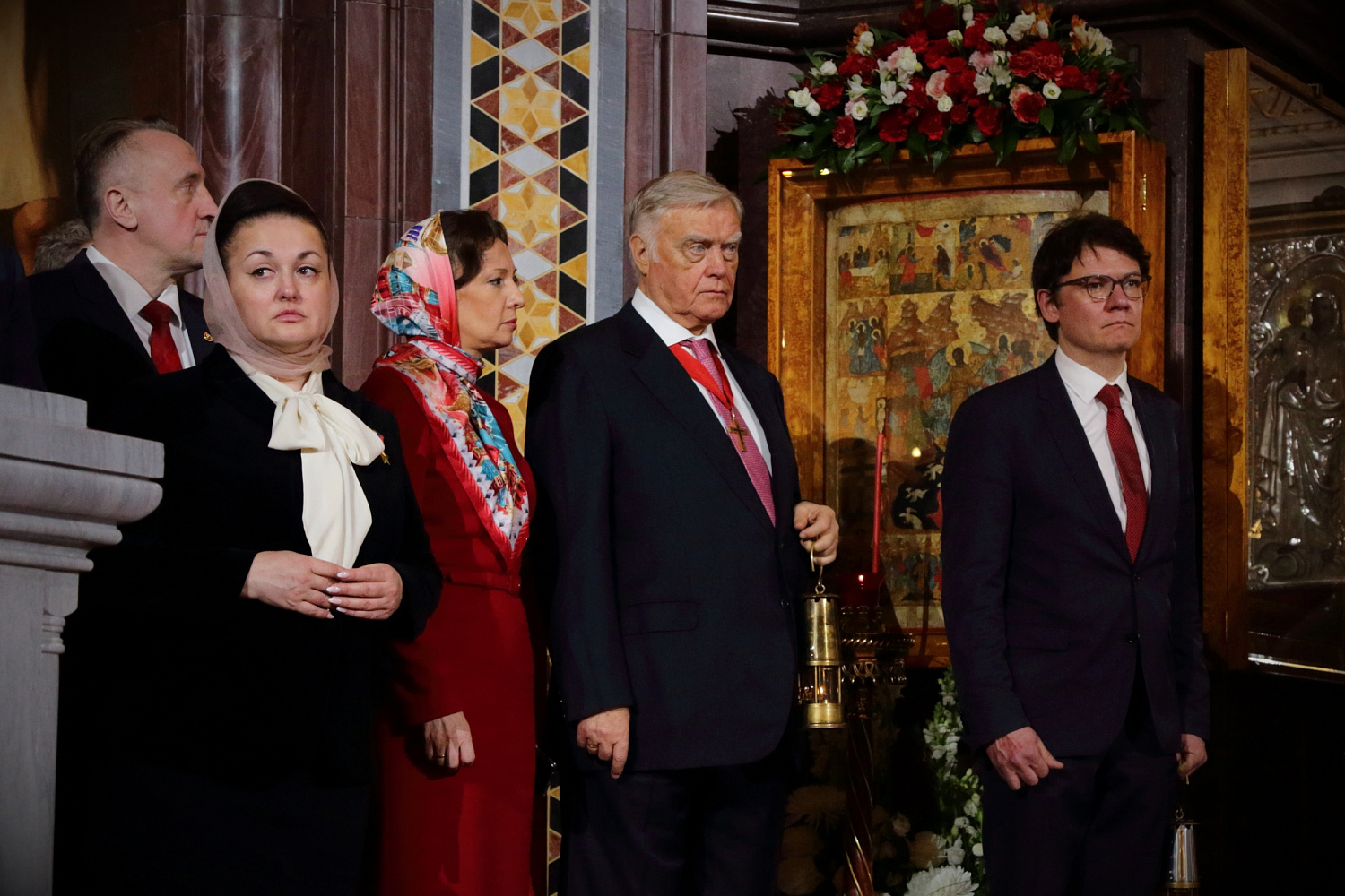 На праздничном богослужении также присутствовали: заместитель председателя Государственной Думы Федерального Собрания Российской Федерации А.Ю. Кузнецова; председатель Либерально-демократической партии России, руководитель фракции ЛДПР в Государственной Думе ФС РФ, председатель Комитета Государственной Думы ФС РФ по международным делам Л.Э. Слуцкий; полномочный представитель Президента РФ в Конституционном Суде РФ Д.Ф. Мезенцев; председатель Попечительского совета Фонда Андрея Первозванного В.И. Якунин; Герой России летчик-космонавт Е.О. Серова; аудитор Счетной палаты РФ И.Н. Каграманян; председатель Московской городской Думы А.В. Шапошников; глава Одинцовского городского округа Московской области А.Р. Иванов; первый заместитель председателя правления ПАО «Сбербанк» А.А. Ведяхин; первый заместитель директора ОАО «РЖД» В.В. Михайлов; первый вице-президент — финансовый директор, член Совета директоров ПАО «ГМК "Норильский никель"» С.Г. Малышев; президент Российской ассоциации производителей минеральных удобрений А.А. Гурьев; вице-президент Российского союза химиков А.Г. Гурьев; первый заместитель директора Департамента корпоративных коммуникаций ОАО «РЖД», председатель совета Фонда по сохранению и развитию Соловецкого архипелага А.В. Гуц; представители государственных и общественных организаций, участники программы «Время героев», деятели культуры.