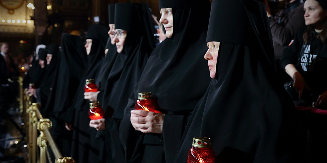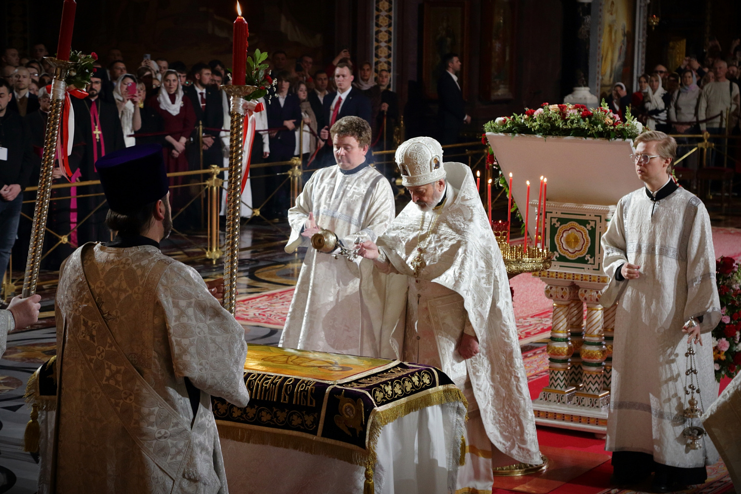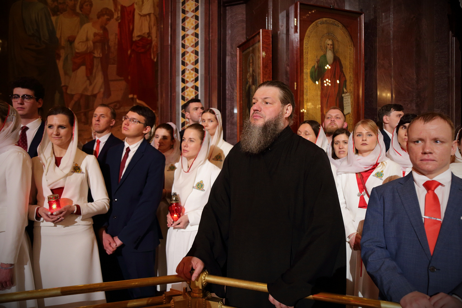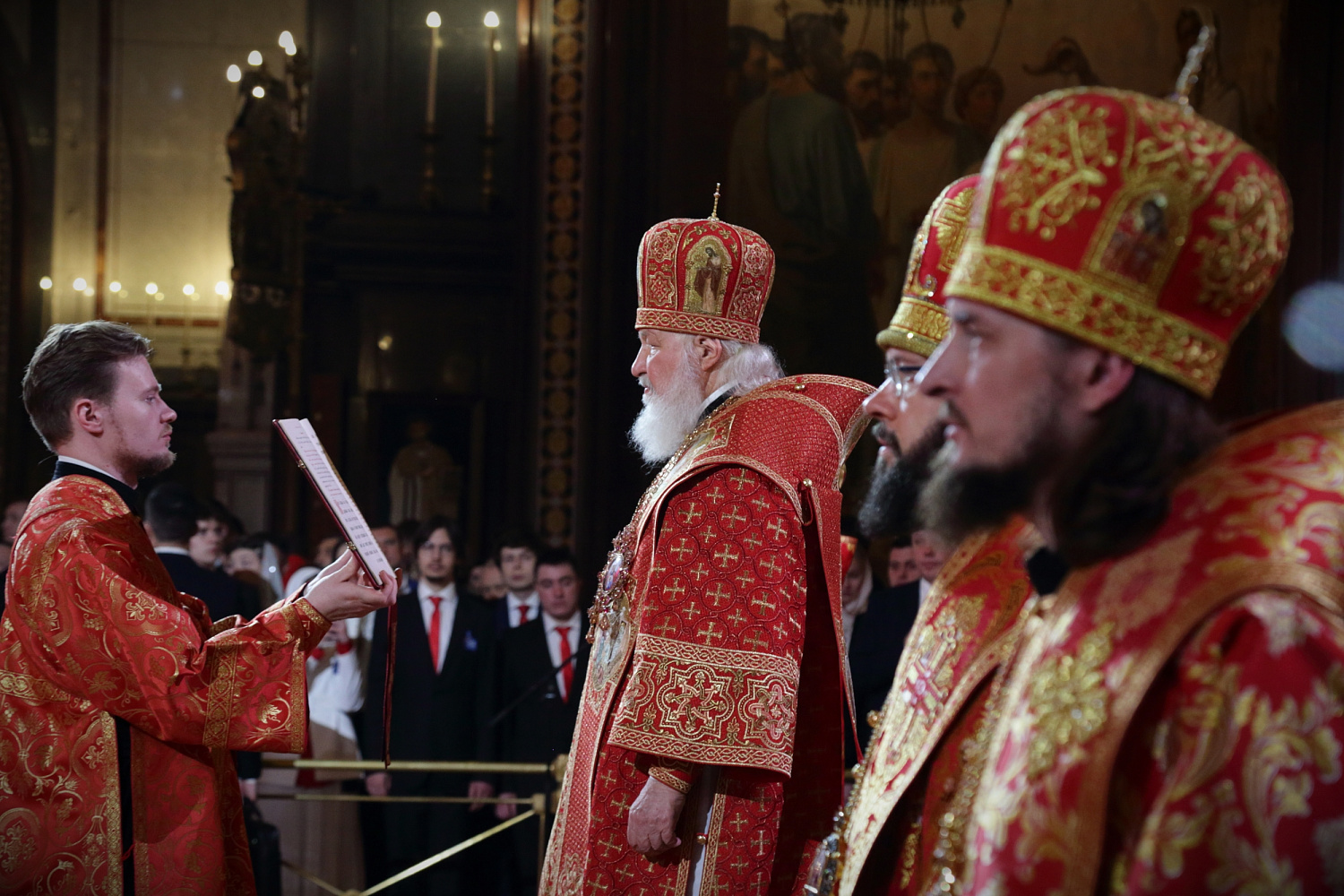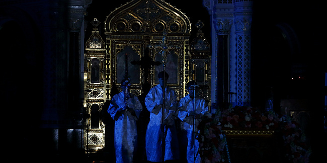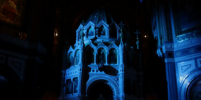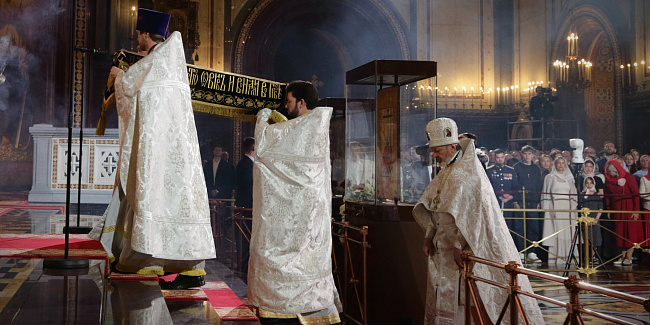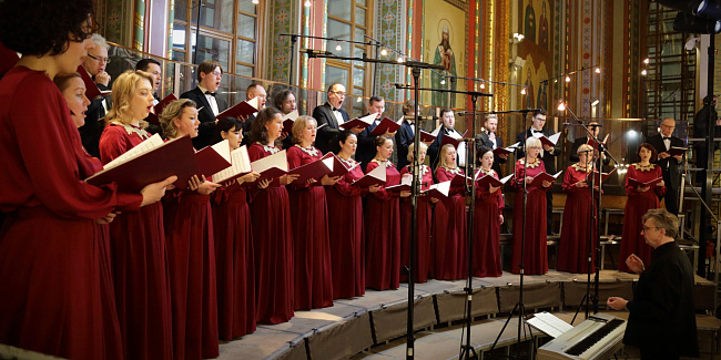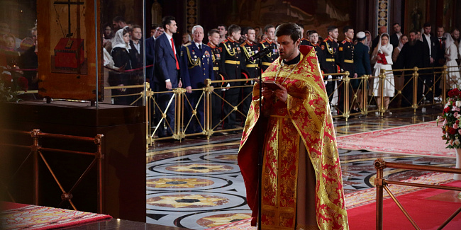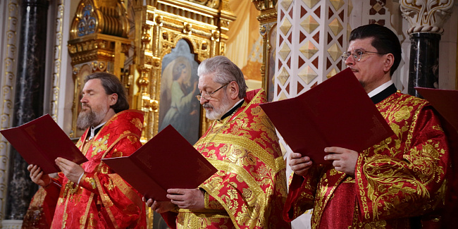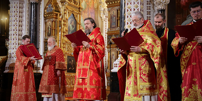Богослужебные песнопения исполнил Патриарший хор Храма Христа Спасителя (регент — Илья Толкачев).