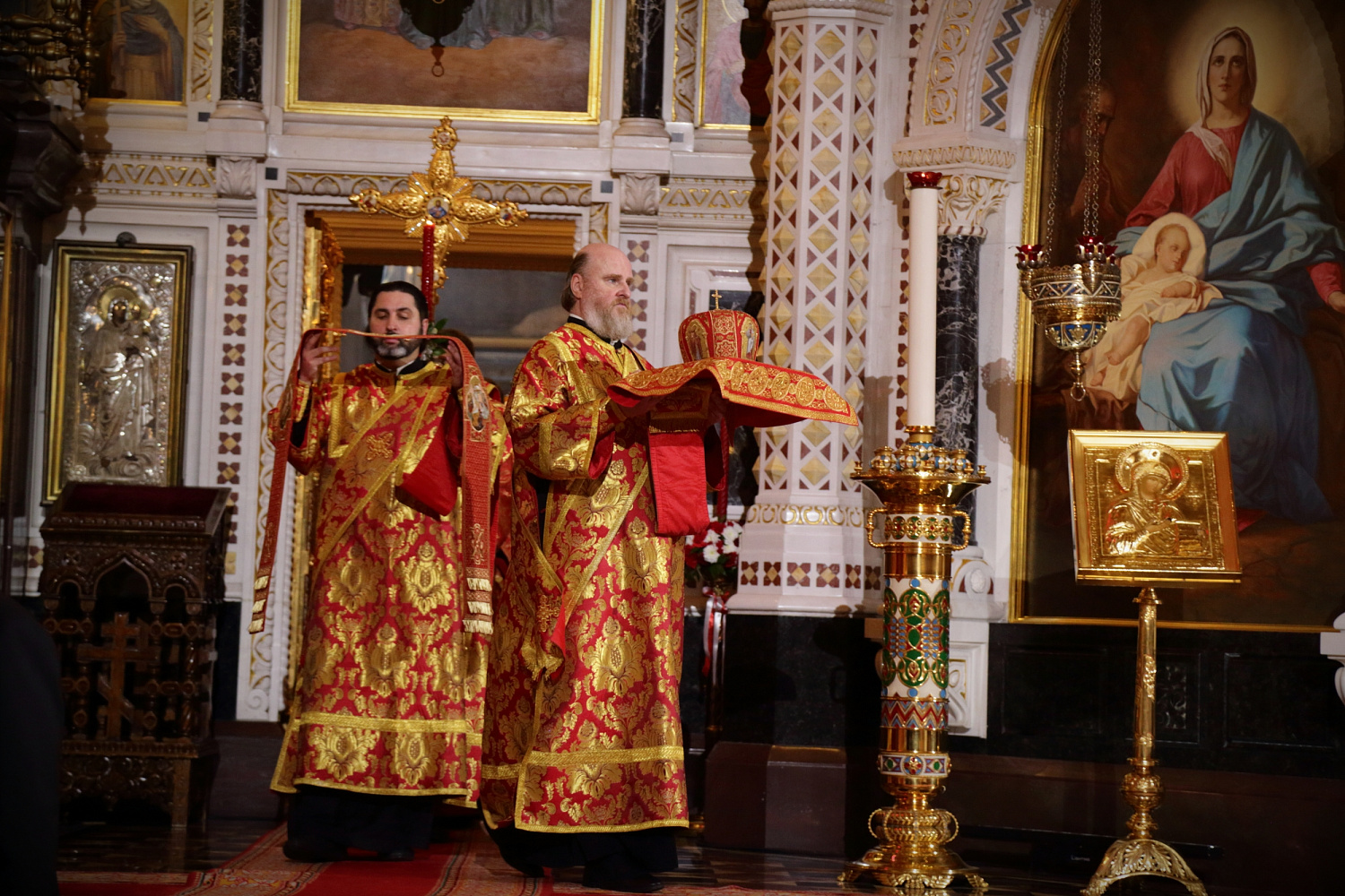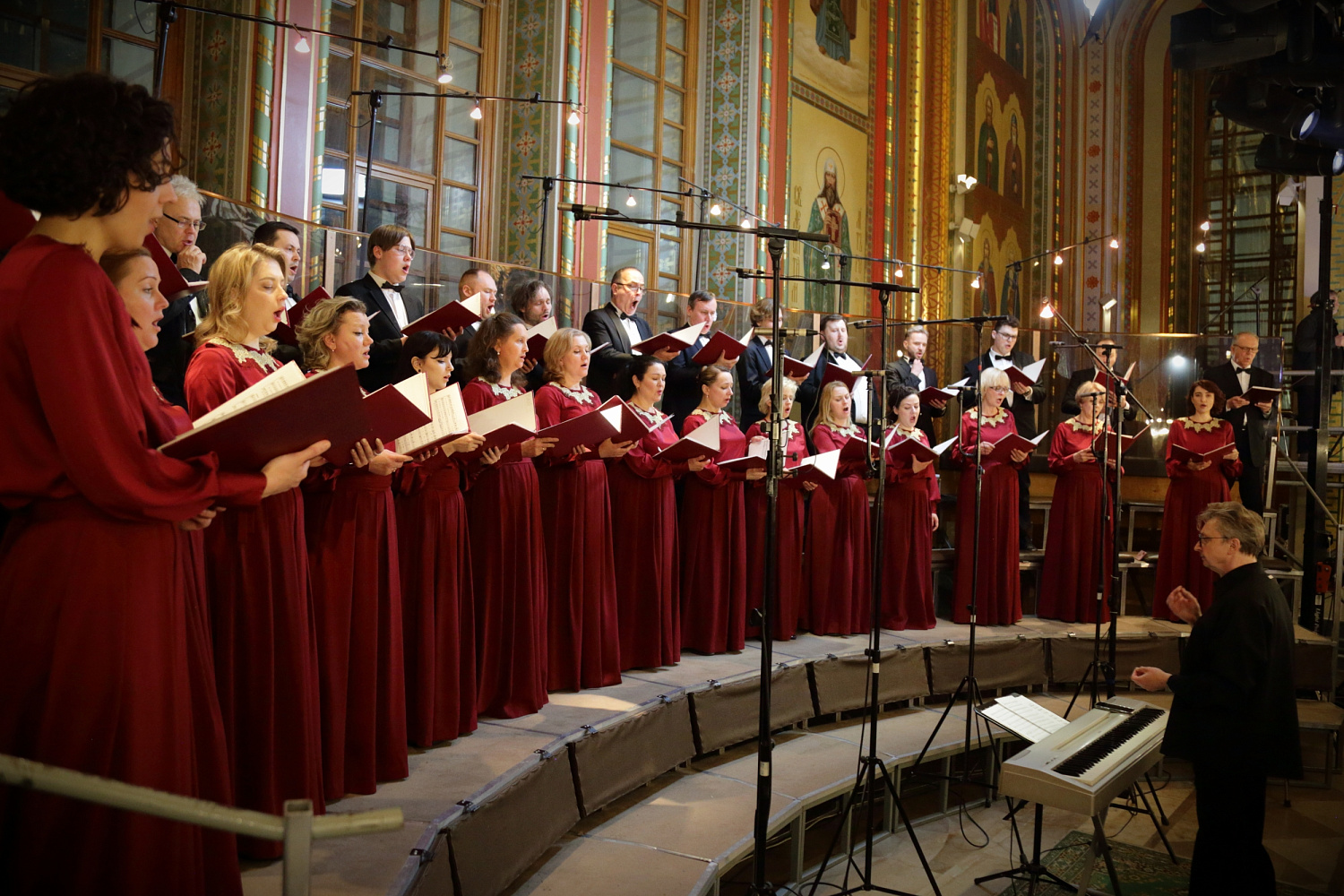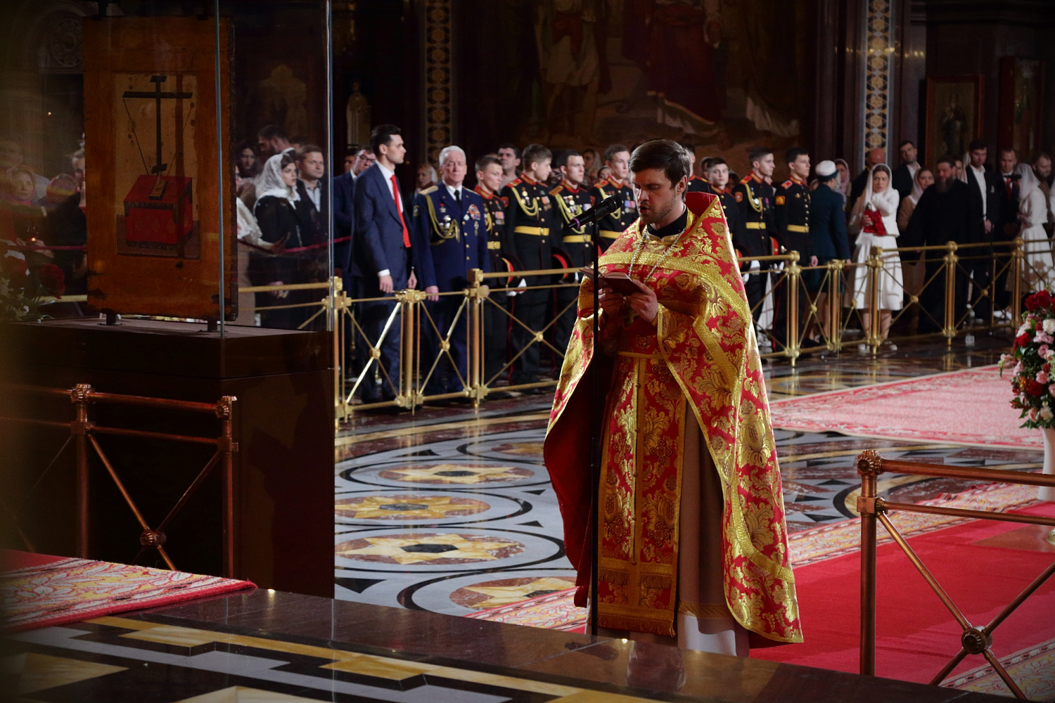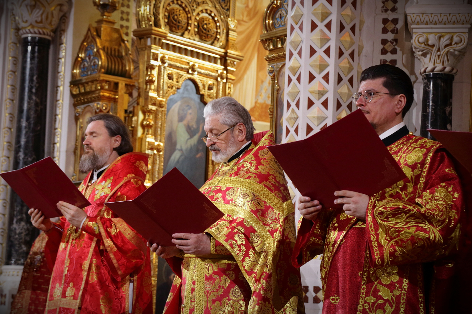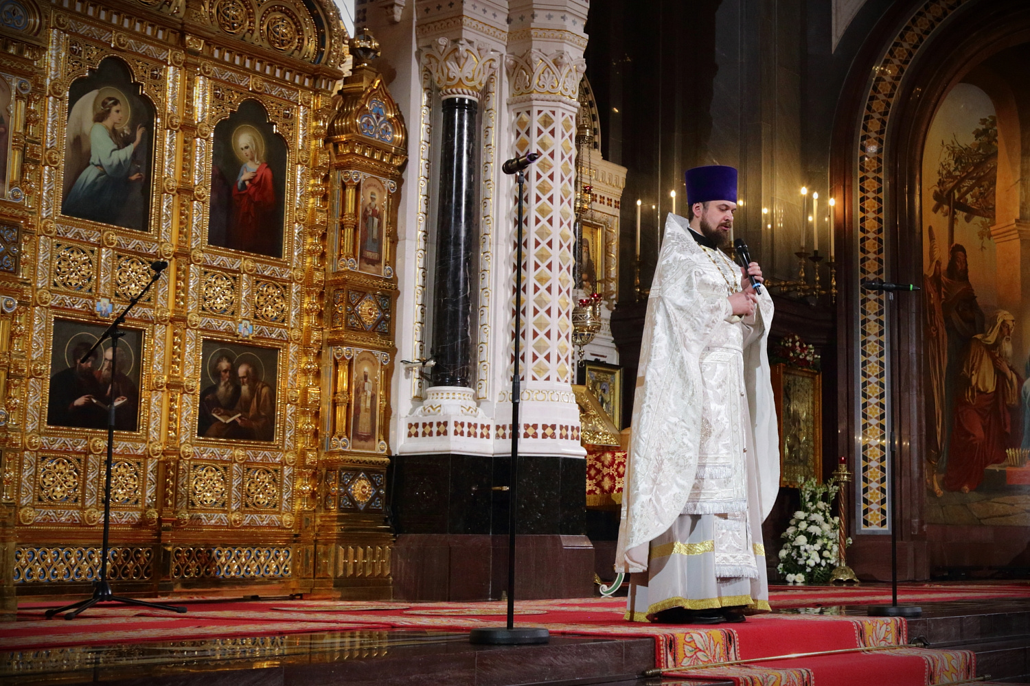 Богослужебные песнопения исполнил Патриарший хор Храма Христа Спасителя (регент — Илья Толкачев).