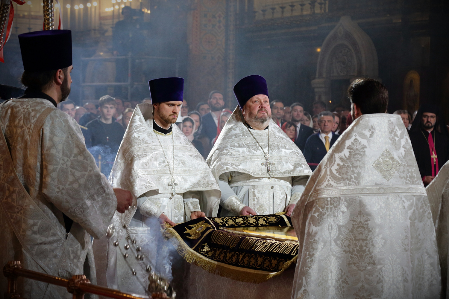 На богослужении присутствовали также представители Римско-Католической Церкви: апостольский нунций в Российской Федерации архиепископ Джованни Д’Аньелло.