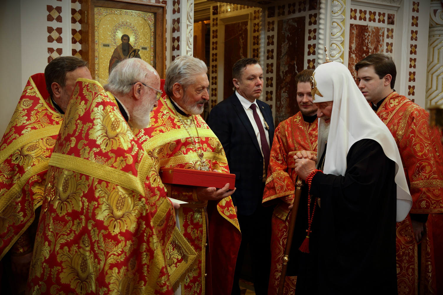 Конечно, пребывание икон в музее сохранило их от уничтожения, но не сохранило их от поругания. Потому что святыни, которые были предназначены для нахождения в храме, перед которыми должны были молиться люди, как бы потеряли это свое значение, которое превосходит всякое другое значение, в том числе и их художественную ценность. Поэтому возвращение святынь благодаря Вашей инициативе и по Вашему указанию является событием поистине историческим. С Вашим именем многое будет связано в истории нашей страны, но эти события войдут в летопись не только Государства Российского, но и Русской Православной Церкви.