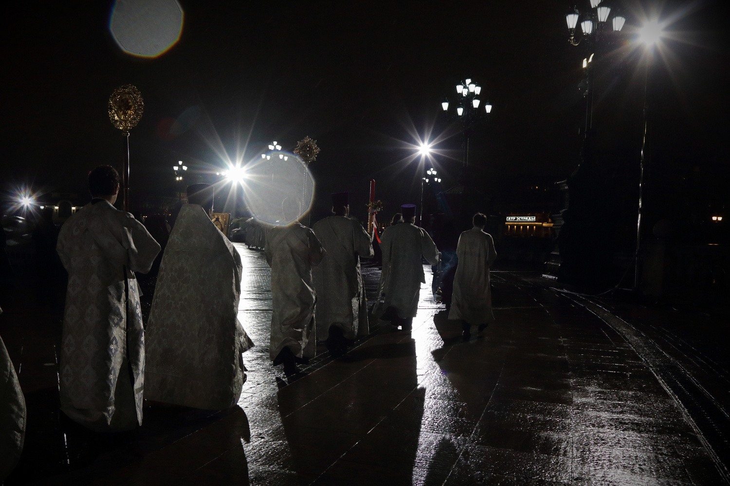 По традиции в Пасхальную ночь в Храм Христа Спасителя из Храма Воскресения Христова (Гроба Господня) в Иерусалиме был принесен Благодатный огонь, сошедший в этот день на Гроб Господень. Благодатный огонь был доставлен в Москву делегацией во главе с председателем Попечительского совета Фонда Андрея Первозванного В.И. Якуниным и председателем Синодального отдела по монастырям и монашеству митрополитом Каширским Феогностом.