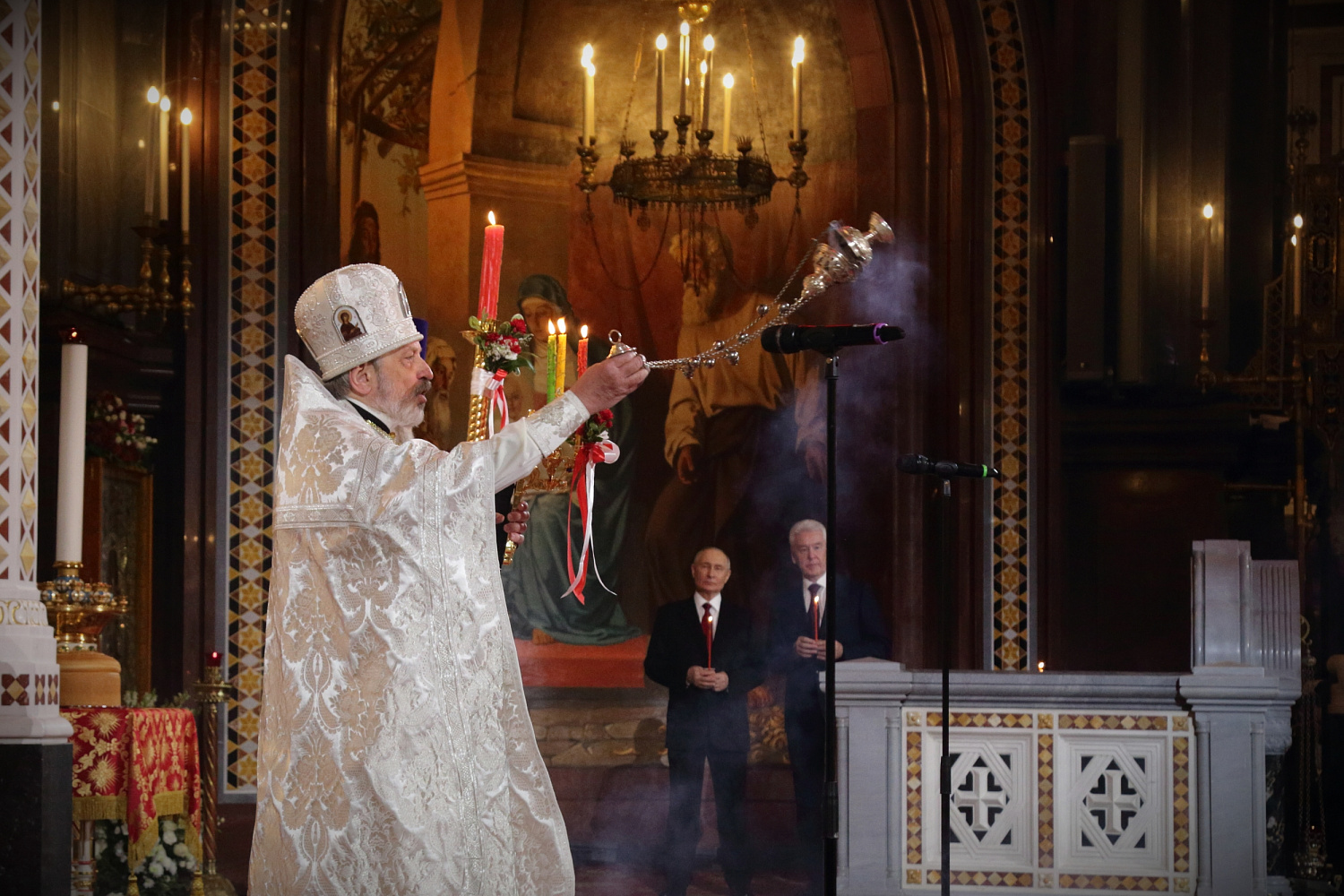 Далее в алтаре состоялось общение Предстоятеля Русской Церкви с Президентом РФ В.В. Путиным и мэром г. Москвы С.С. Собяниным.