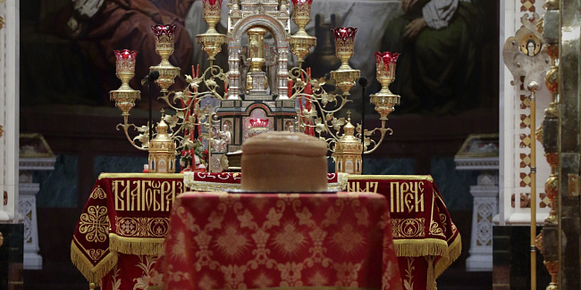 После заамвонной молитвы Предстоятель освятил артос.