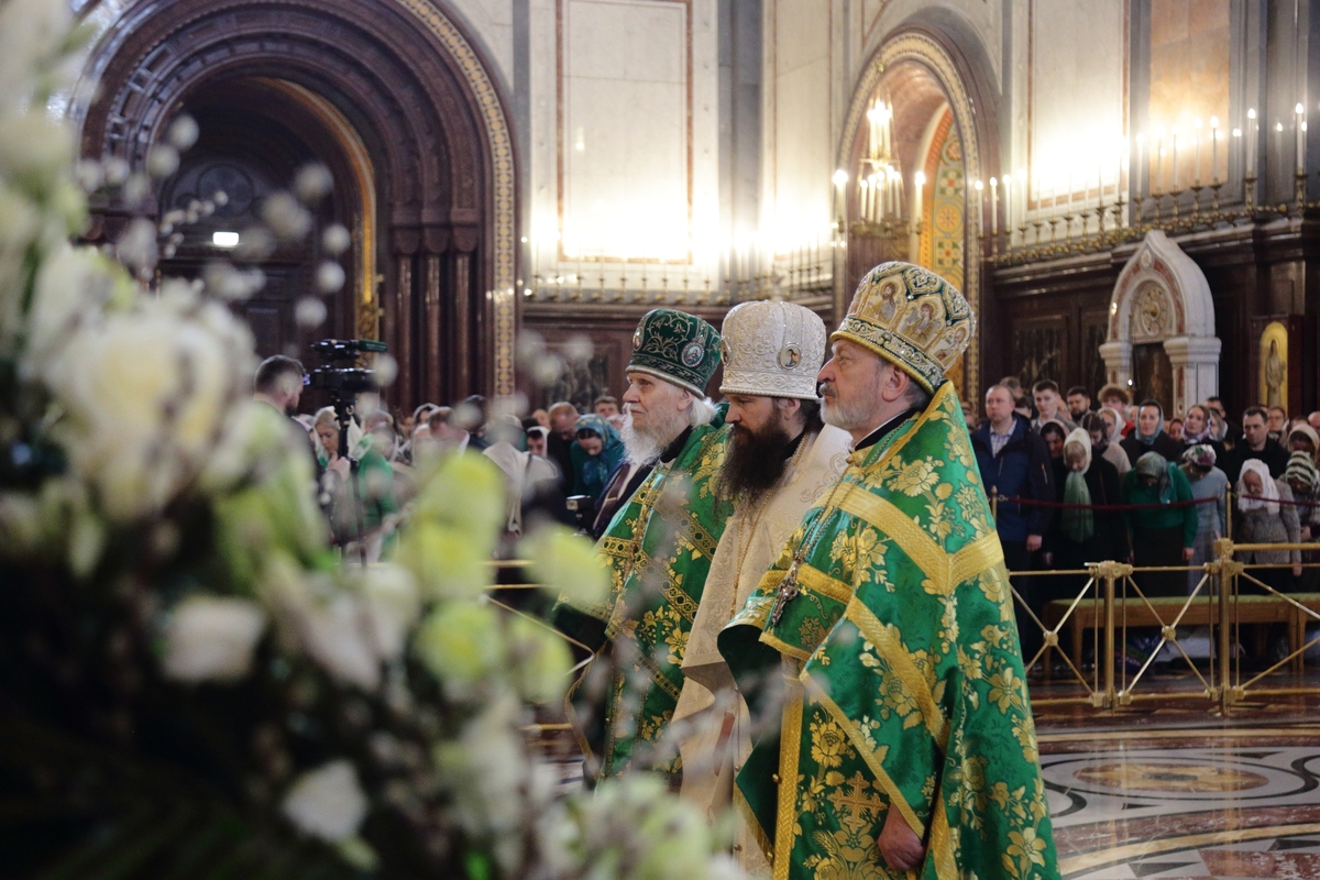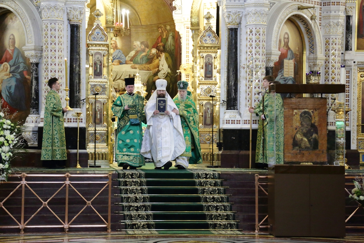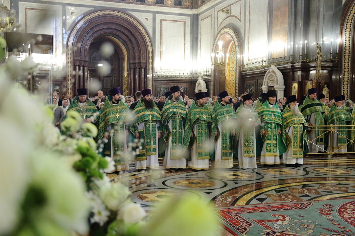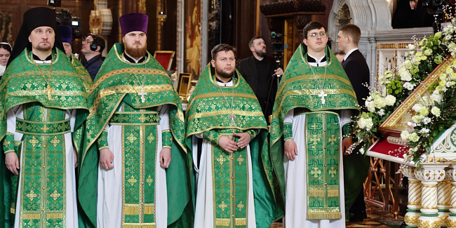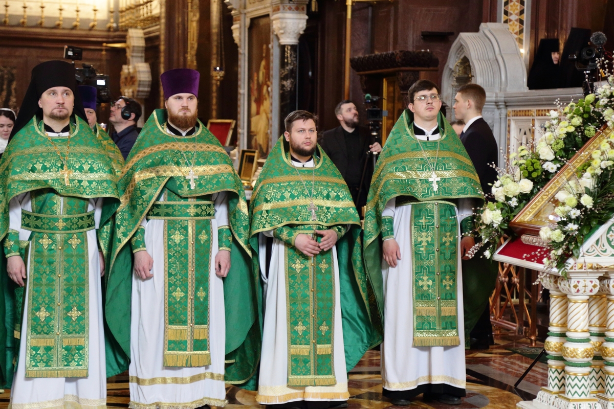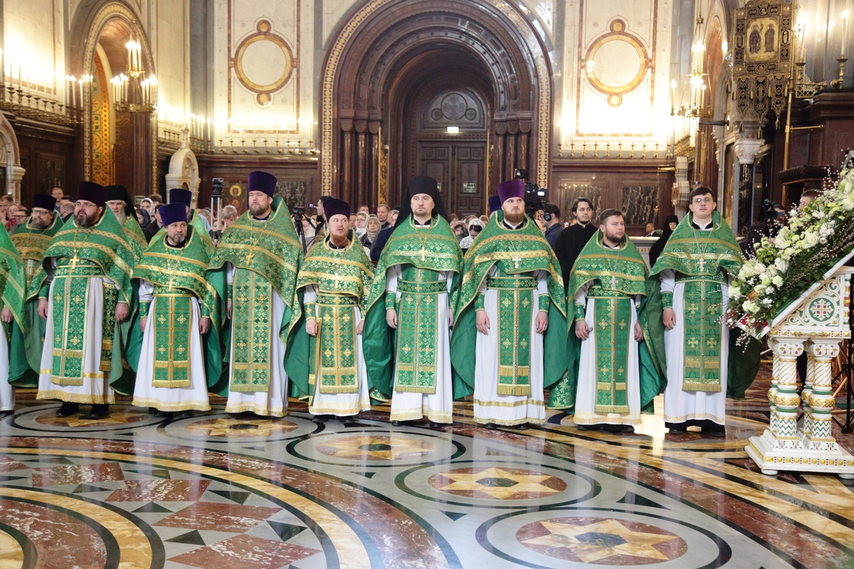 Богослужебные песнопения исполнил Патриарший хор Храма Христа Спасителя (регент — Илья Толкачев).