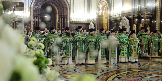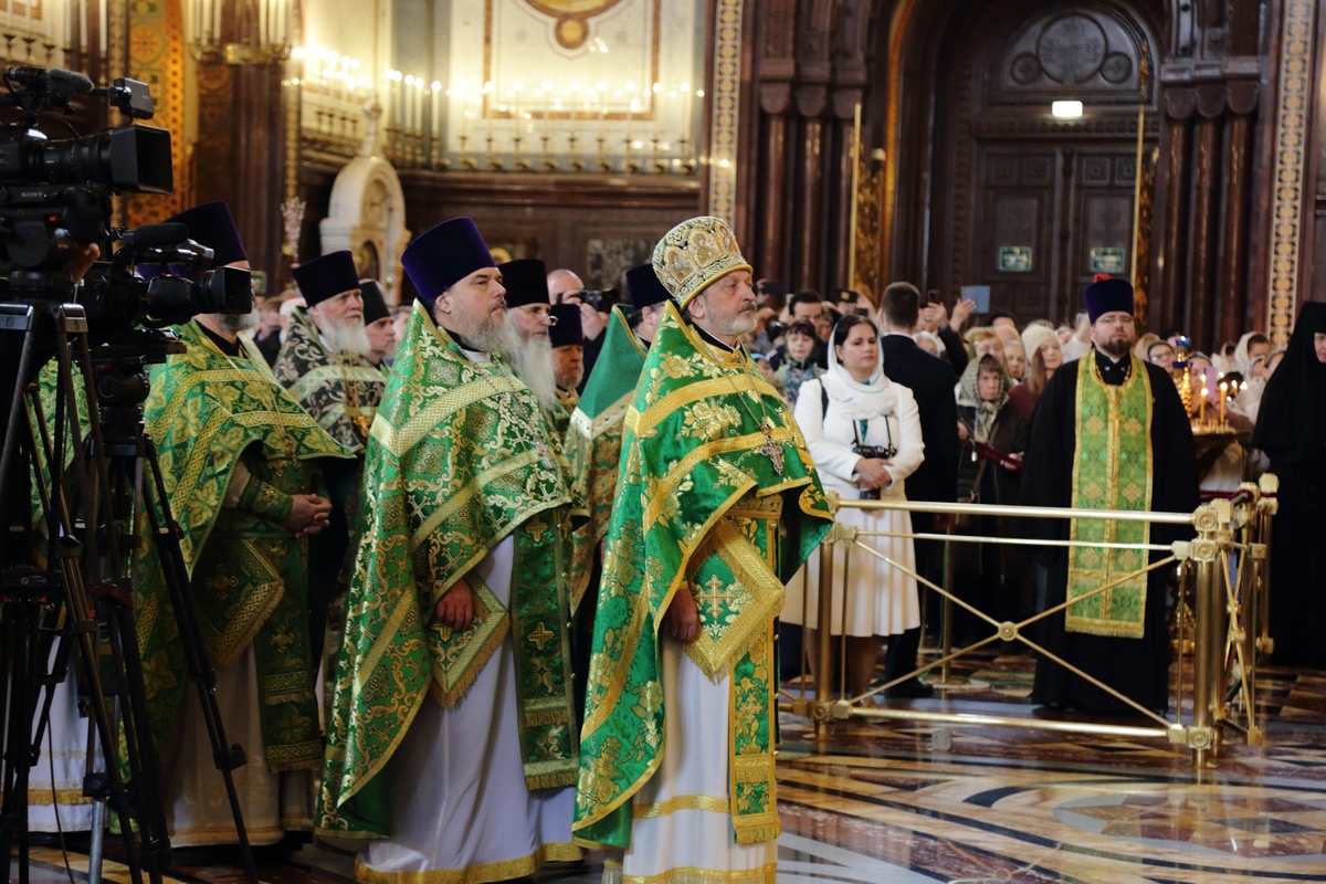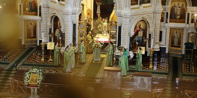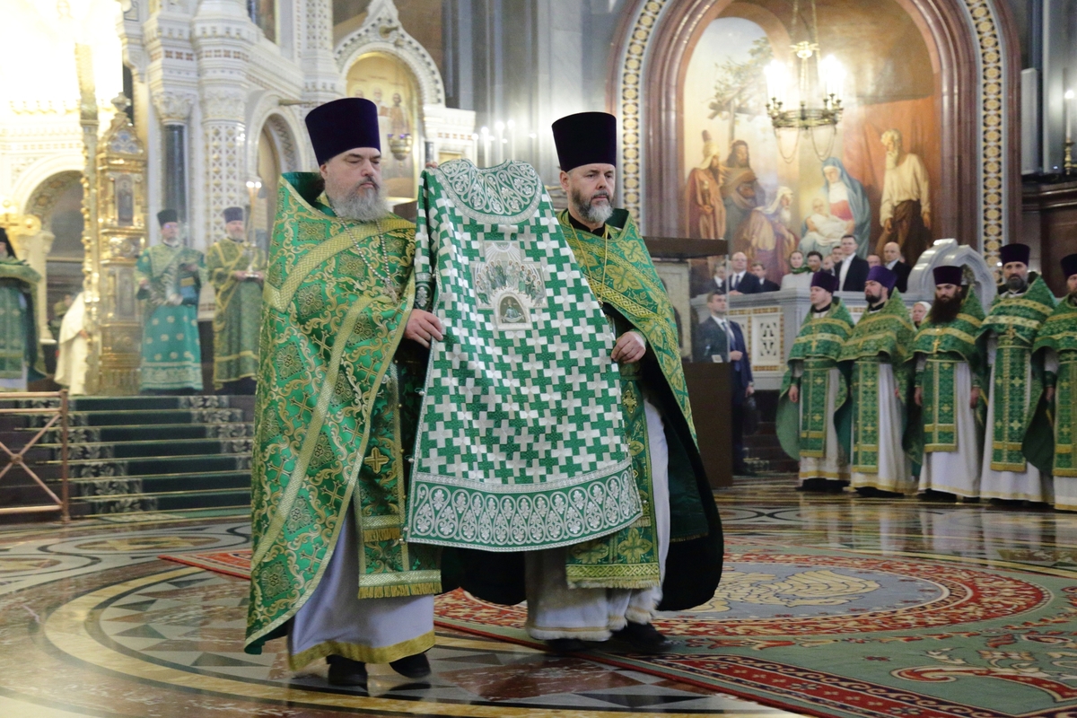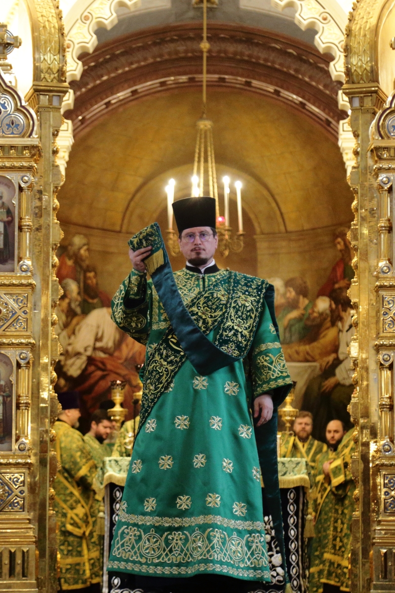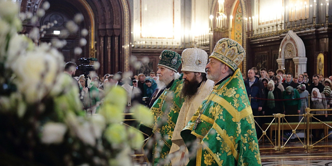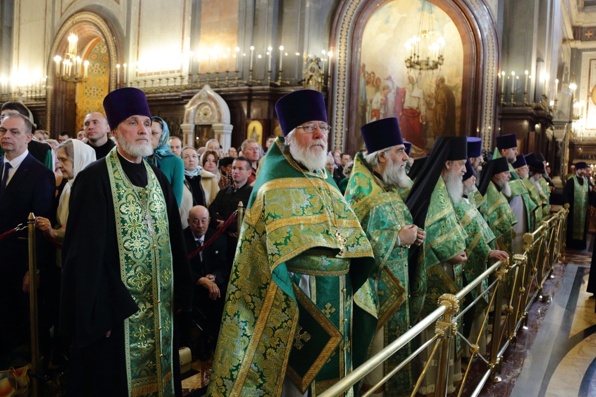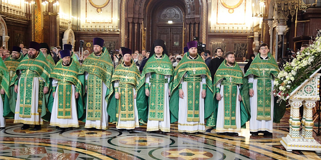 Богослужебные песнопения исполнил Патриарший хор Храма Христа Спасителя (регент — Илья Толкачев).