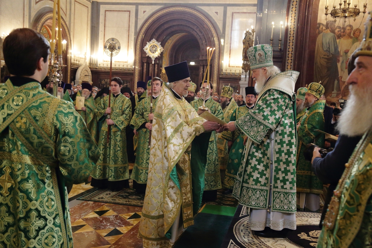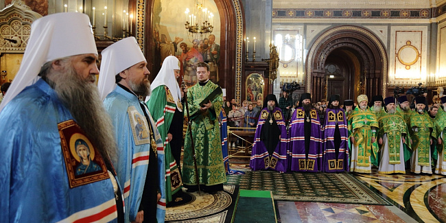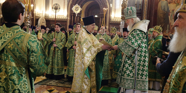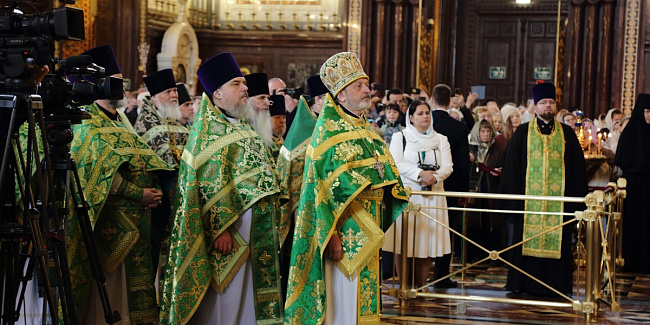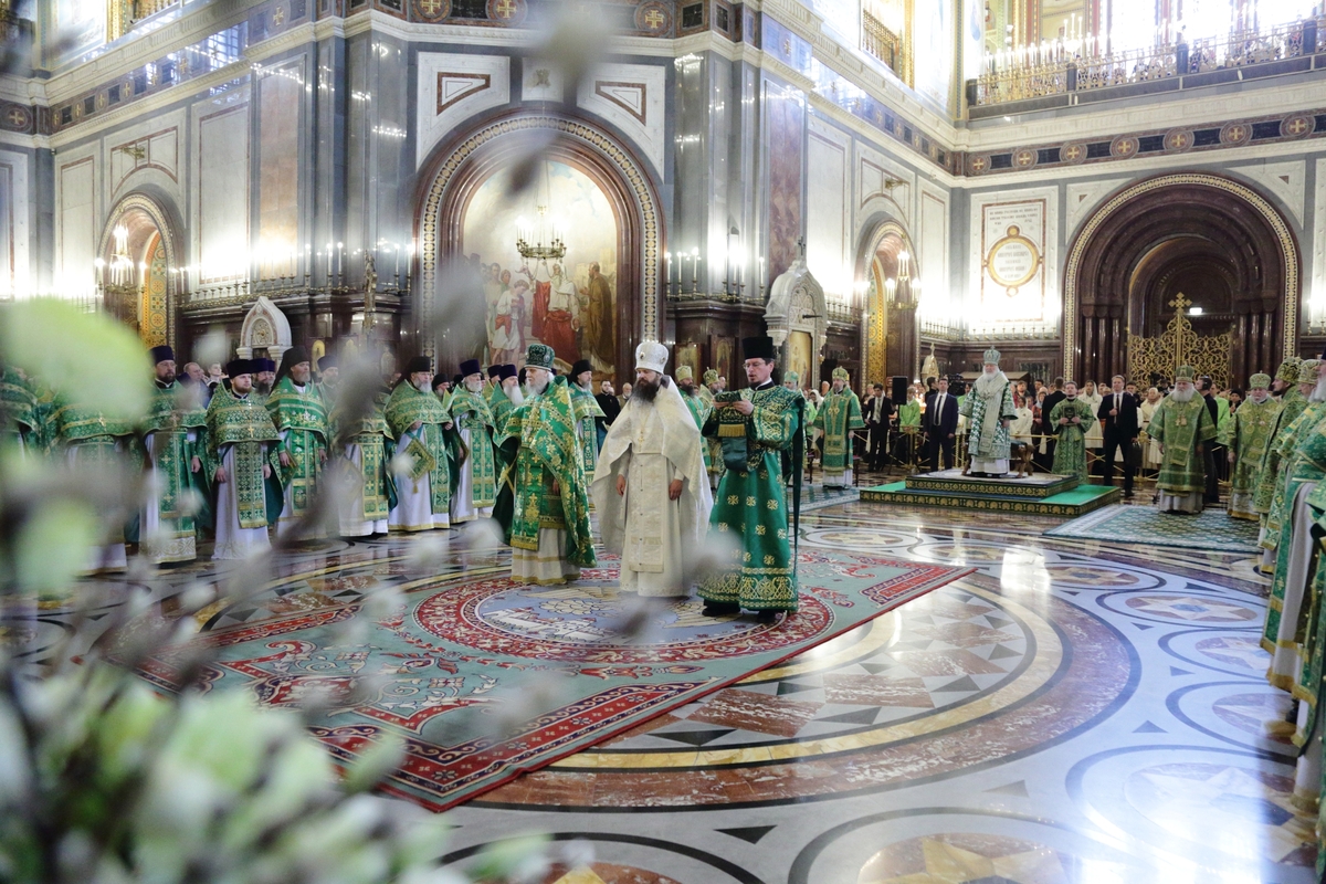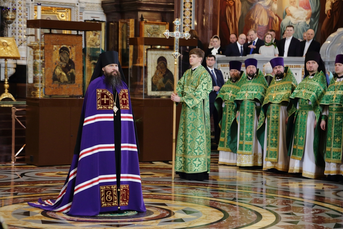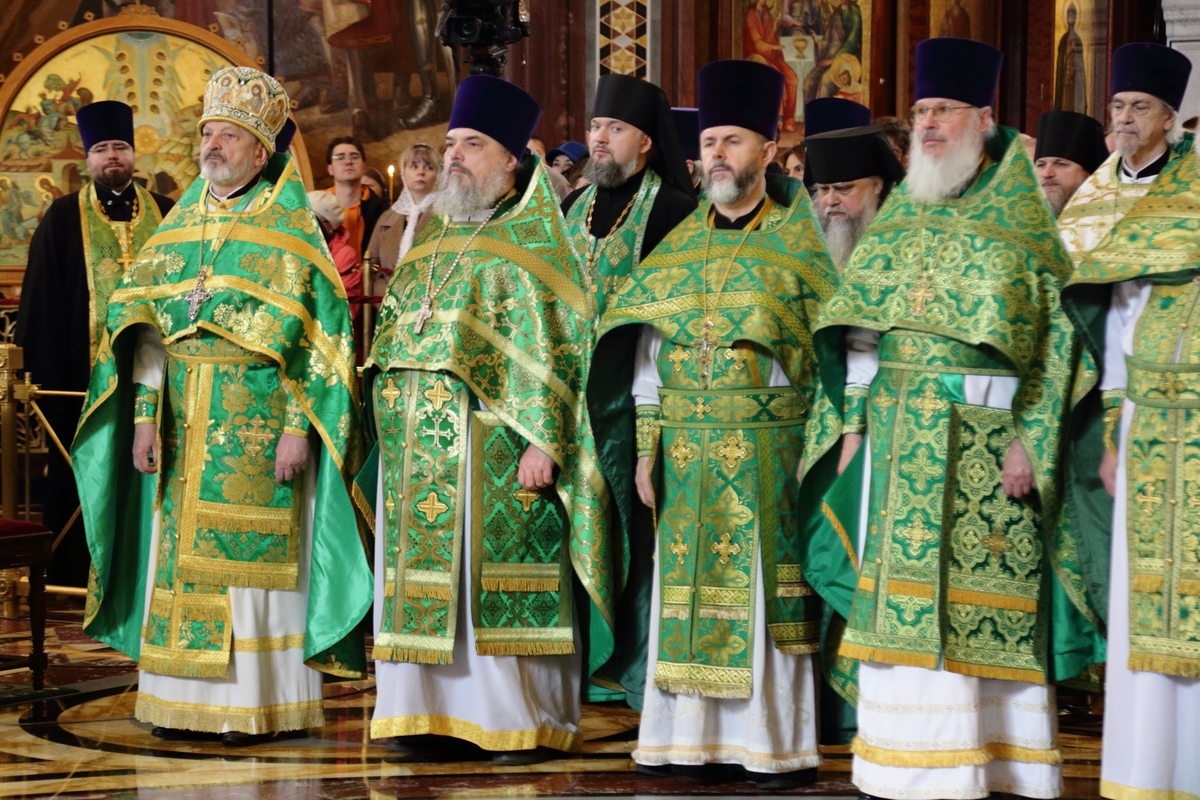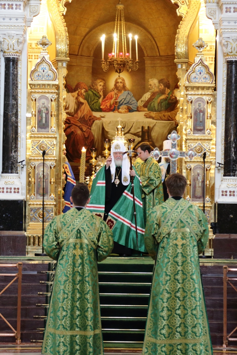 Богослужебные песнопения исполнил Патриарший хор Храма Христа Спасителя (регент — Илья Толкачев).