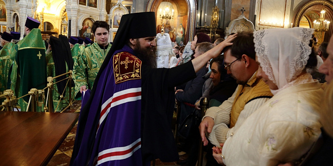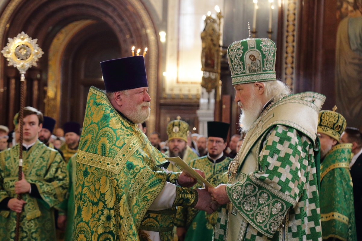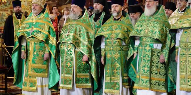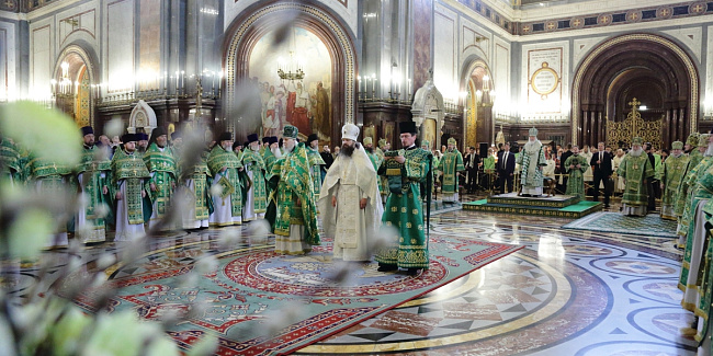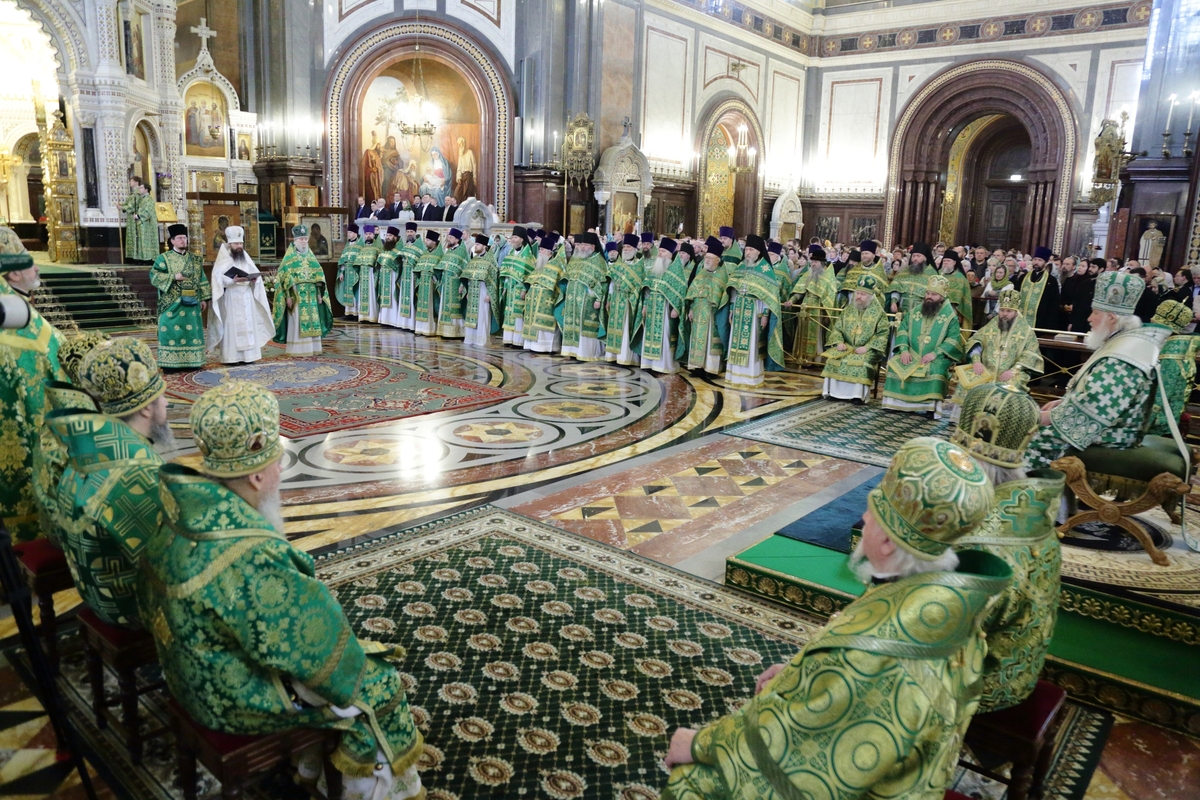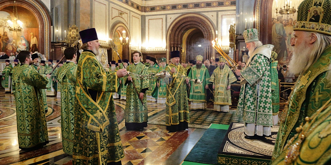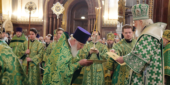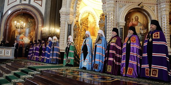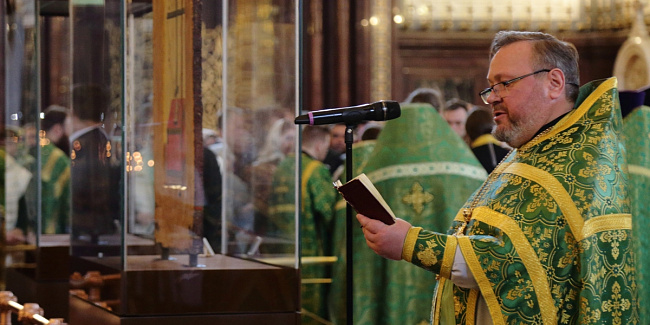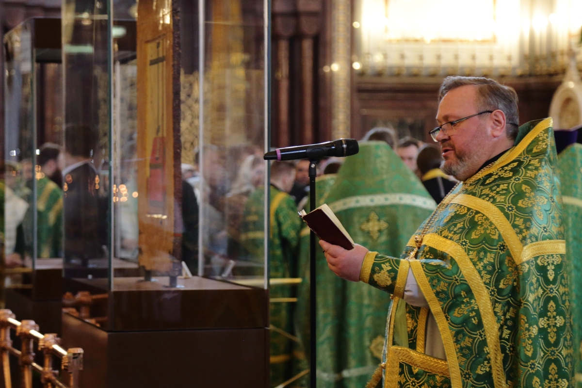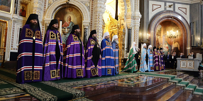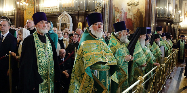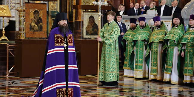 Богослужебные песнопения исполнил Патриарший хор Храма Христа Спасителя (регент — Илья Толкачев).